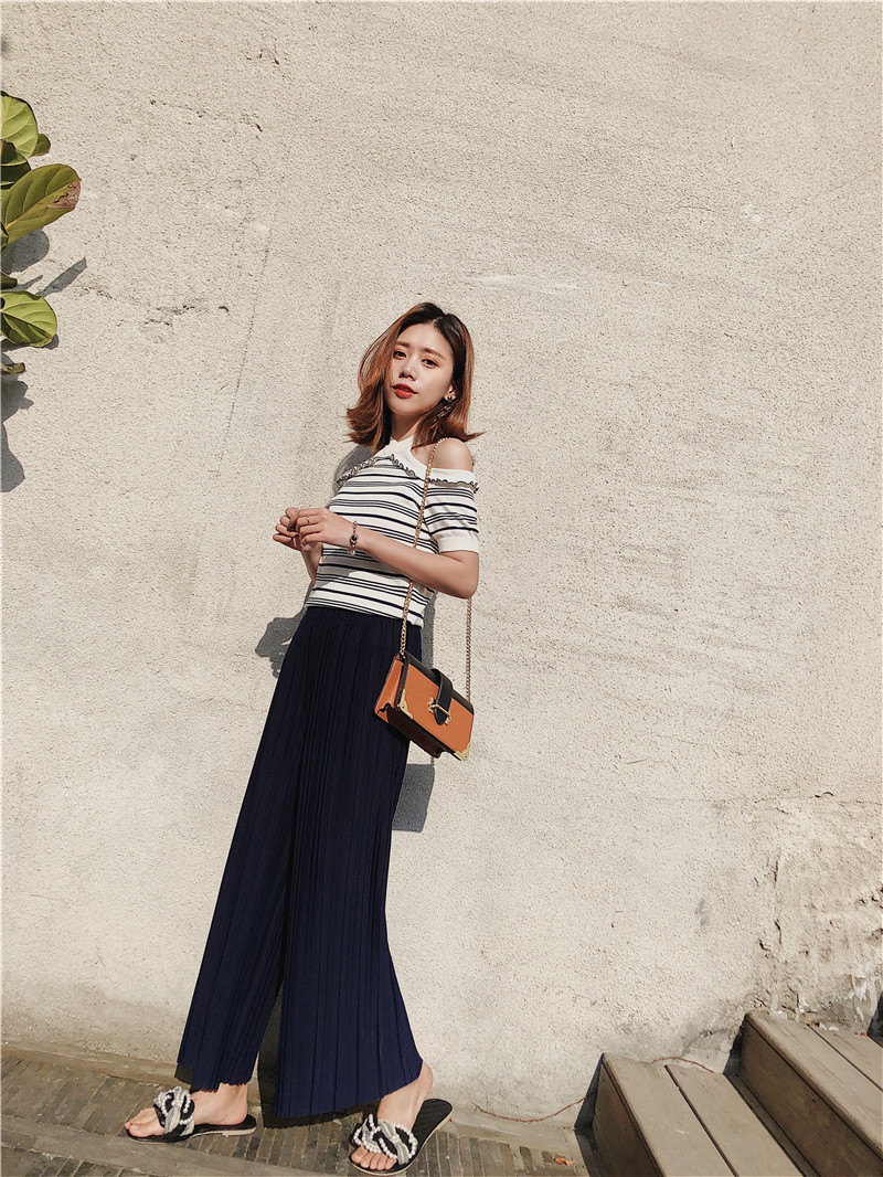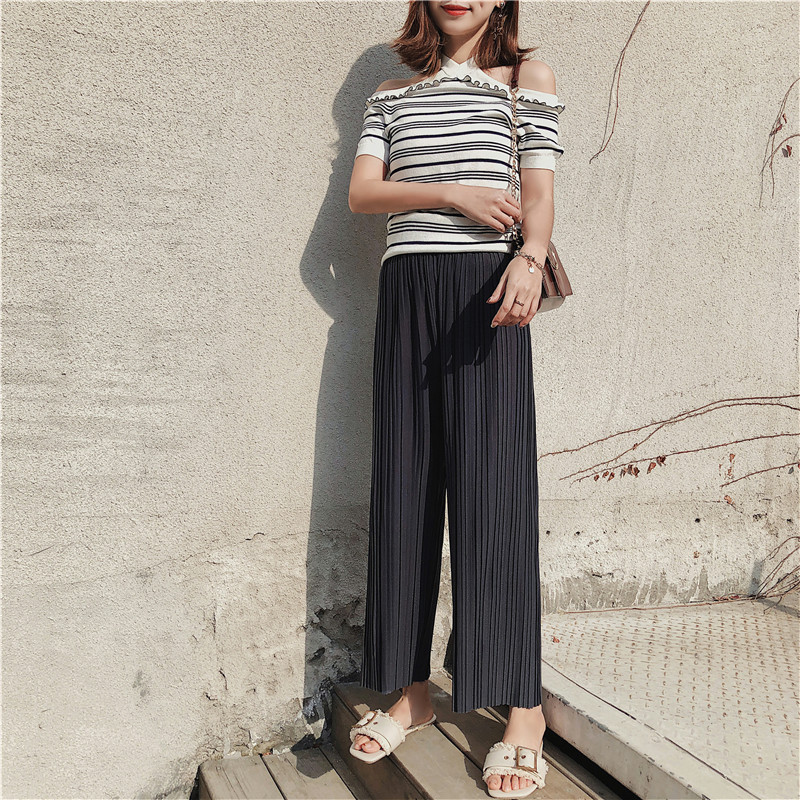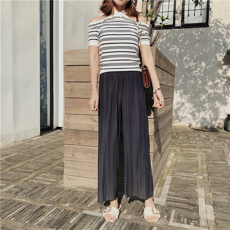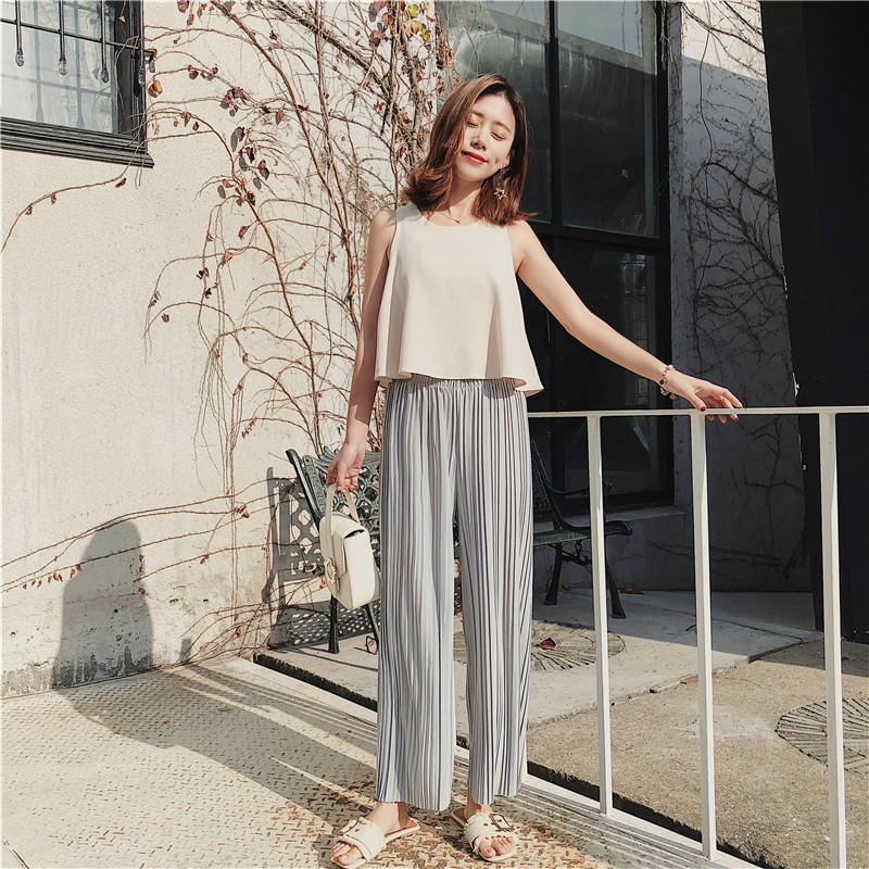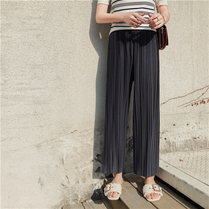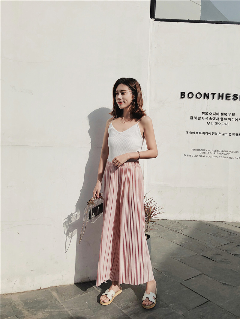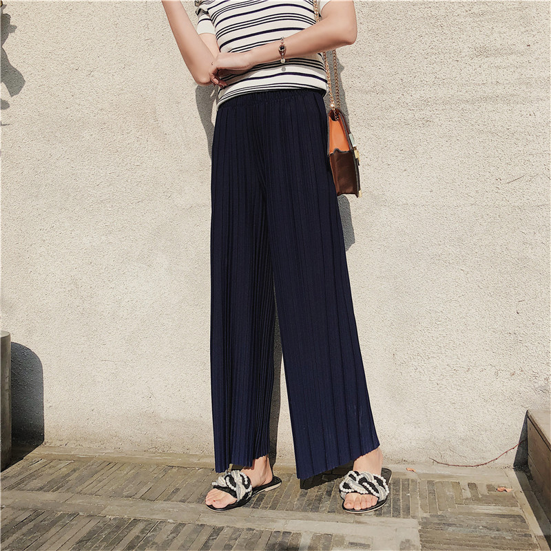 【ボトムス】ハイウエスト 春夏 プリーツ シフォン パンツ