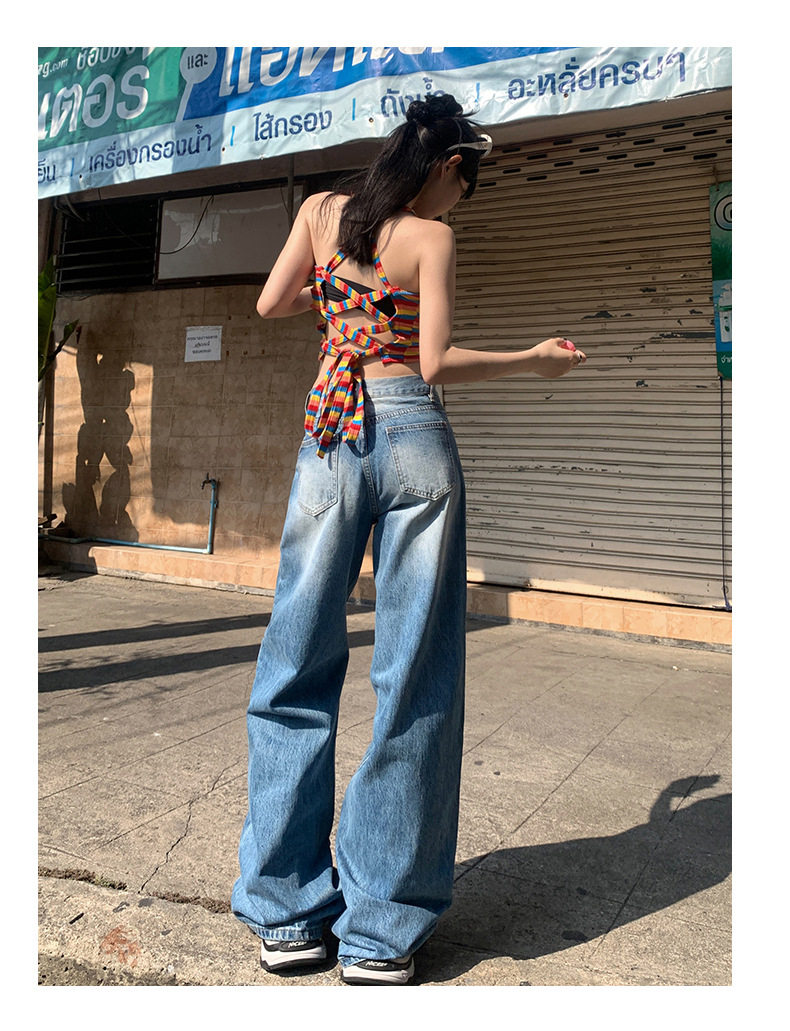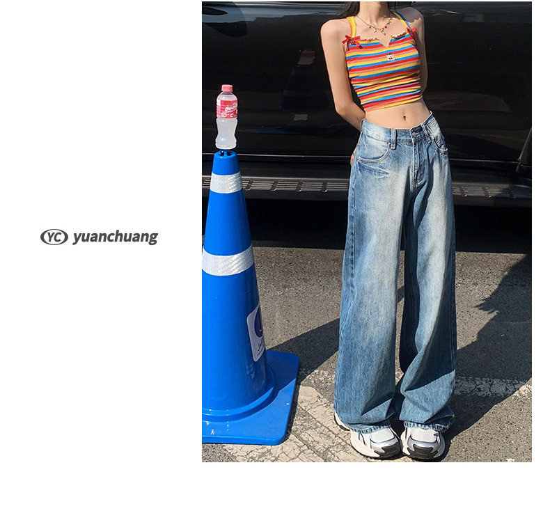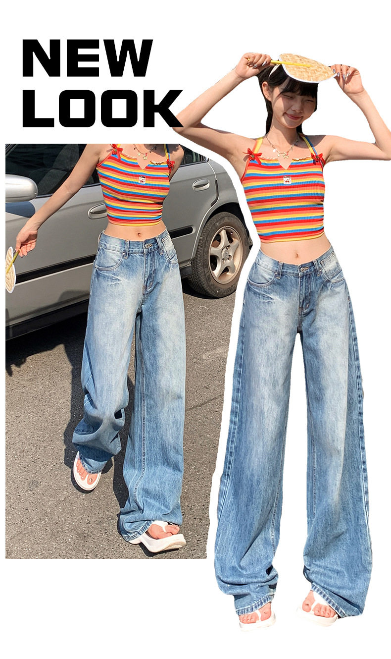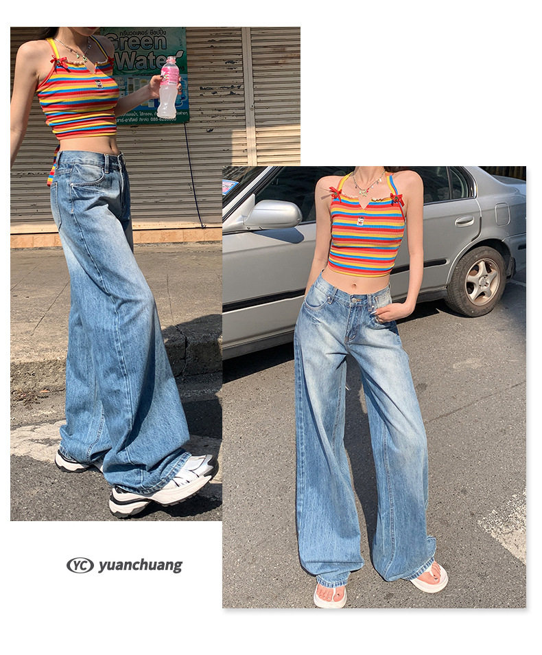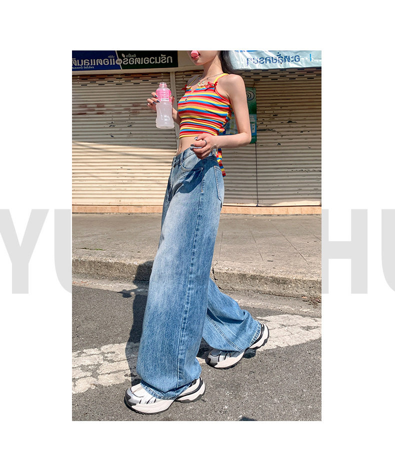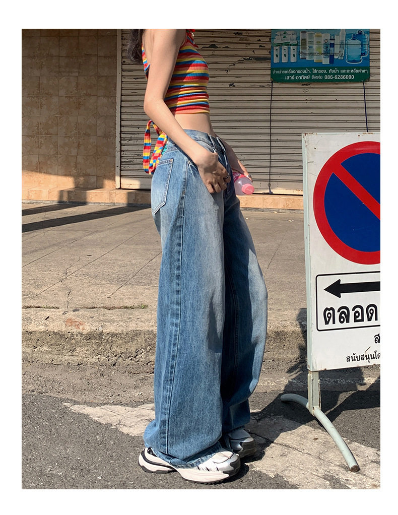 【ボトムス】ゆるりラックス ハイウエスト デニム 春夏秋冬 レトロ パンツ