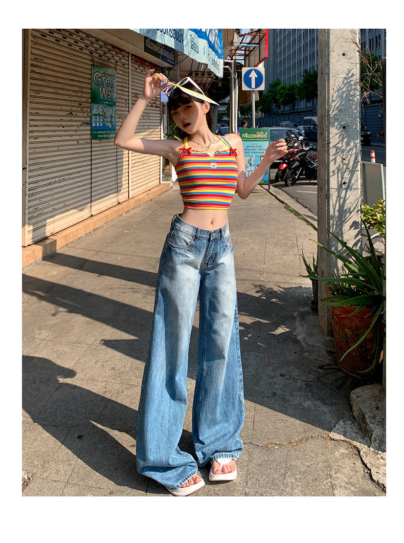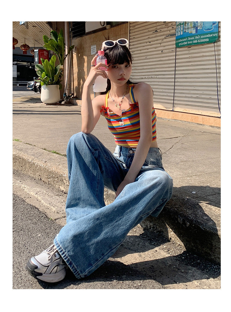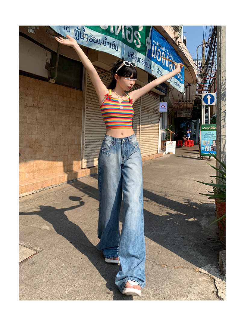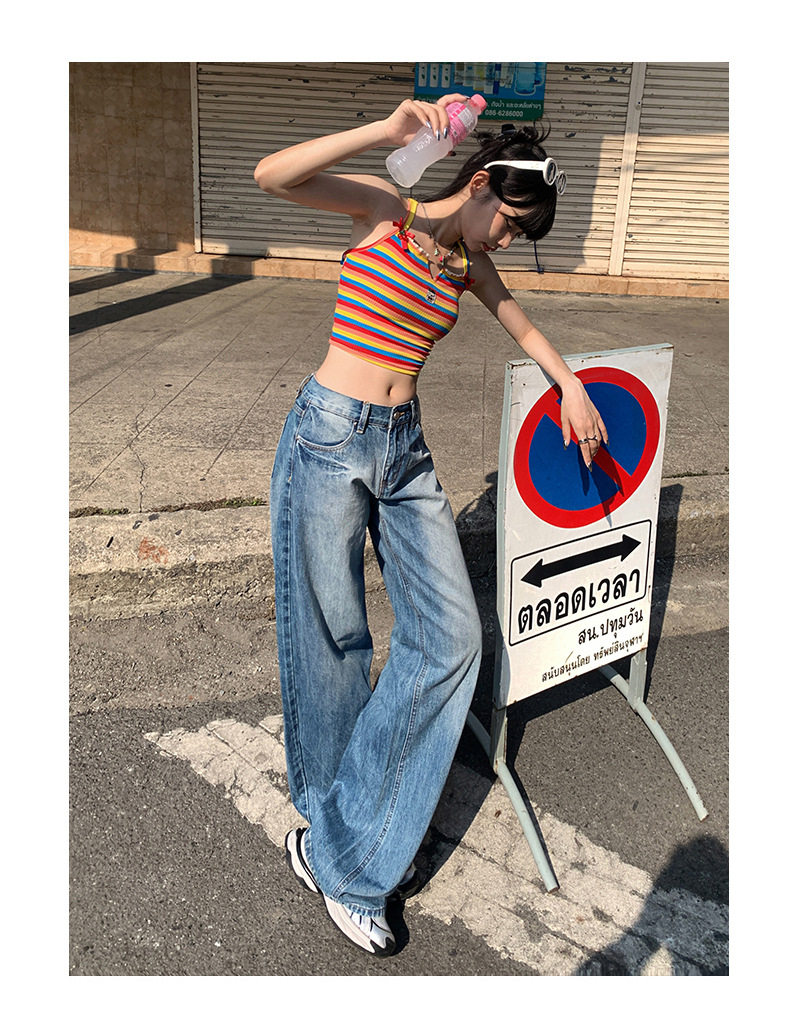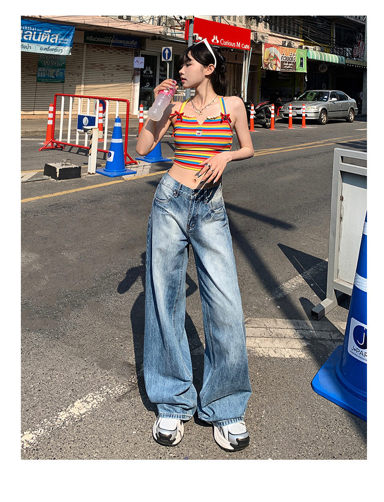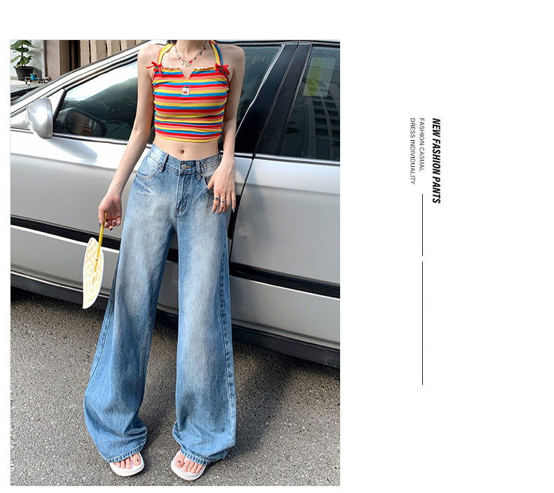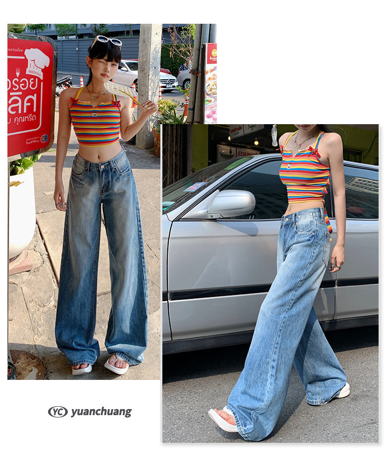 【ボトムス】ゆるりラックス ハイウエスト デニム 春夏秋冬 レトロ パンツ