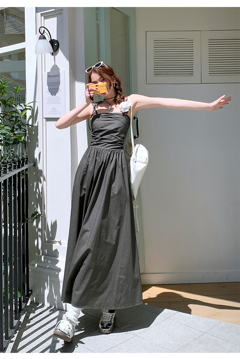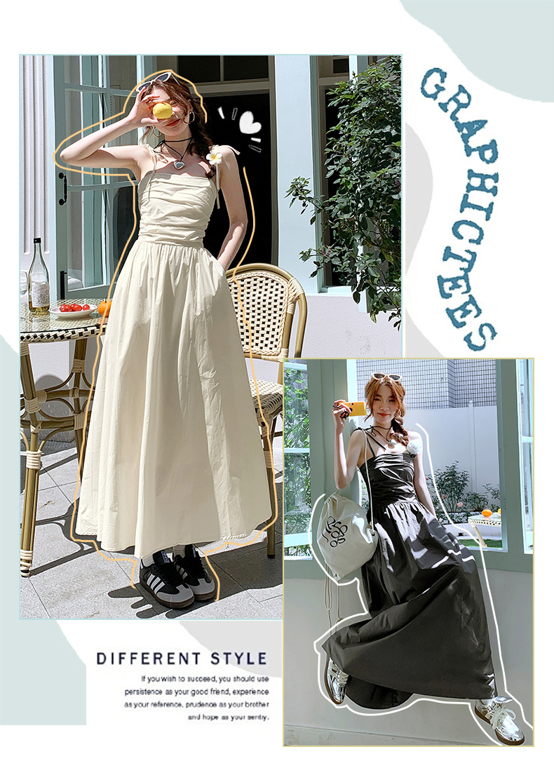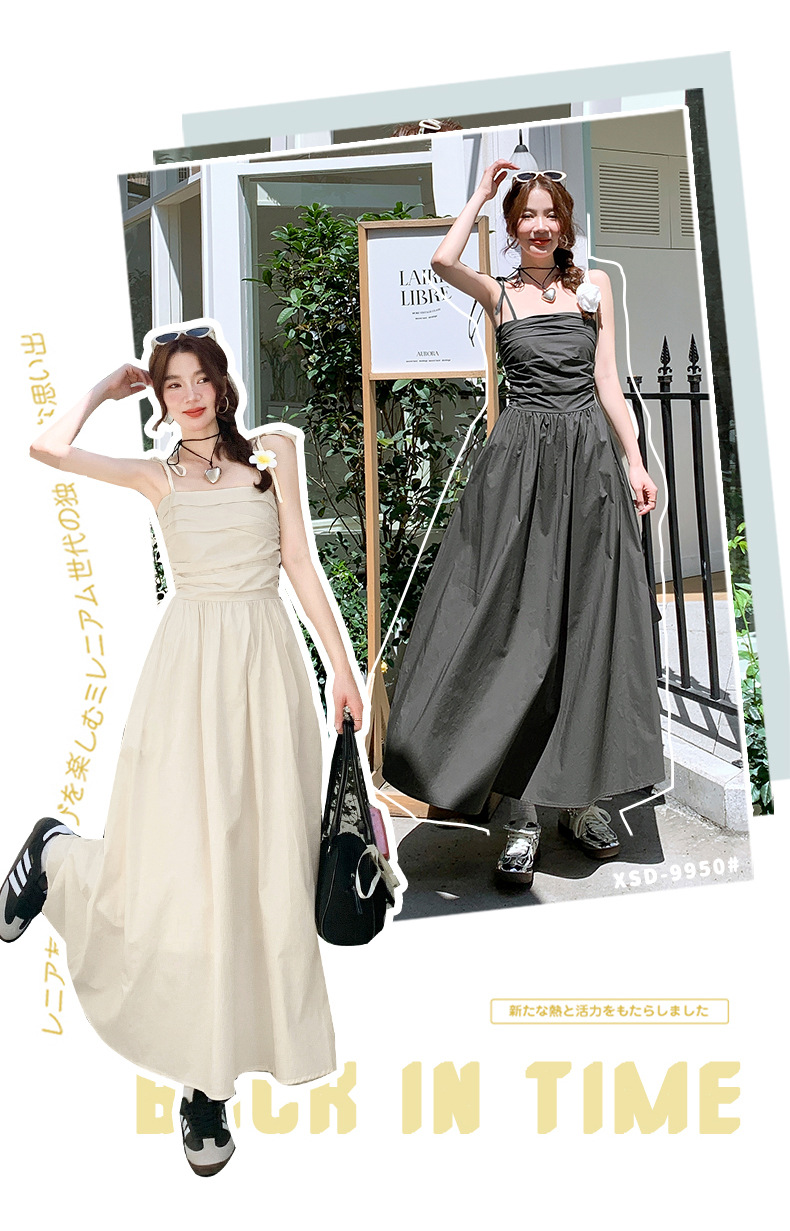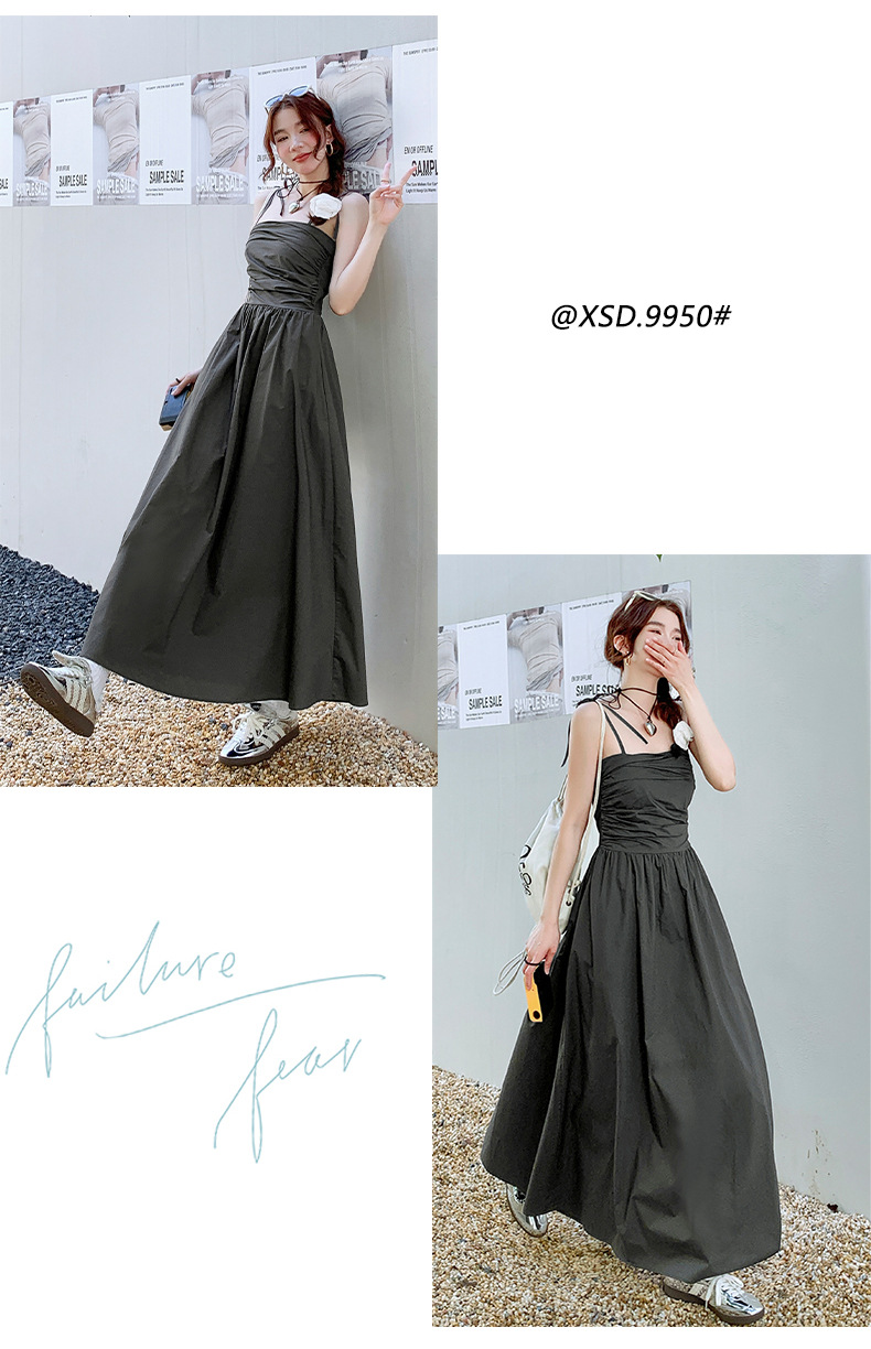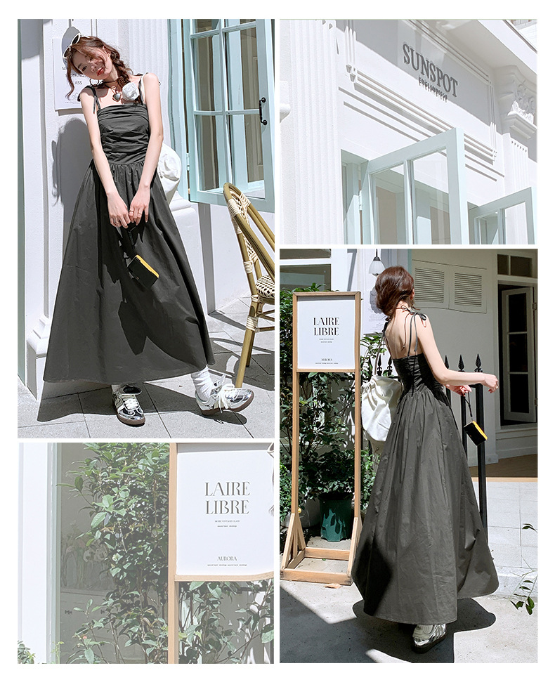 【ワンピース】夏おしゃれ エレガント サスペンダー ノースリーブワンピース