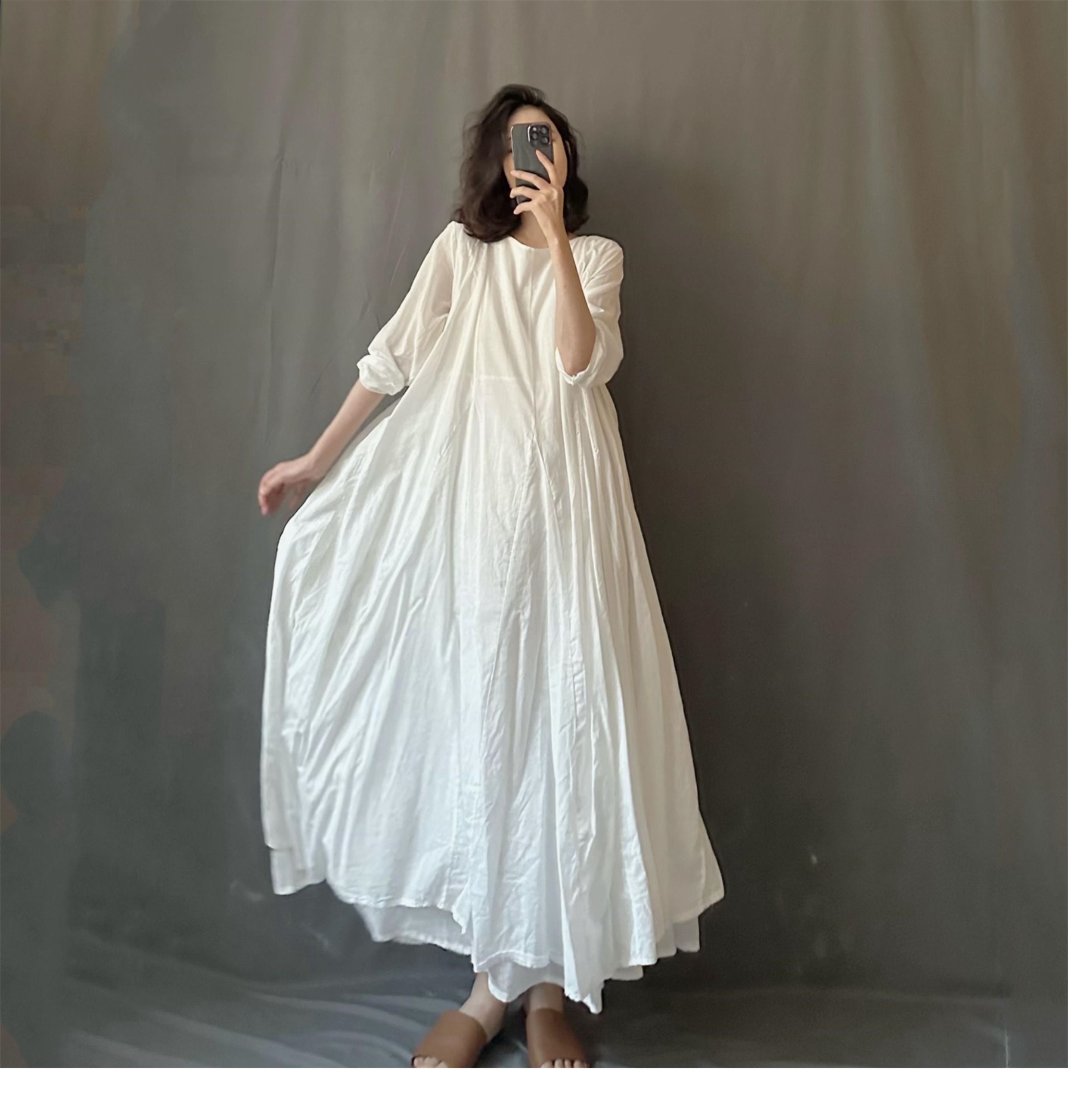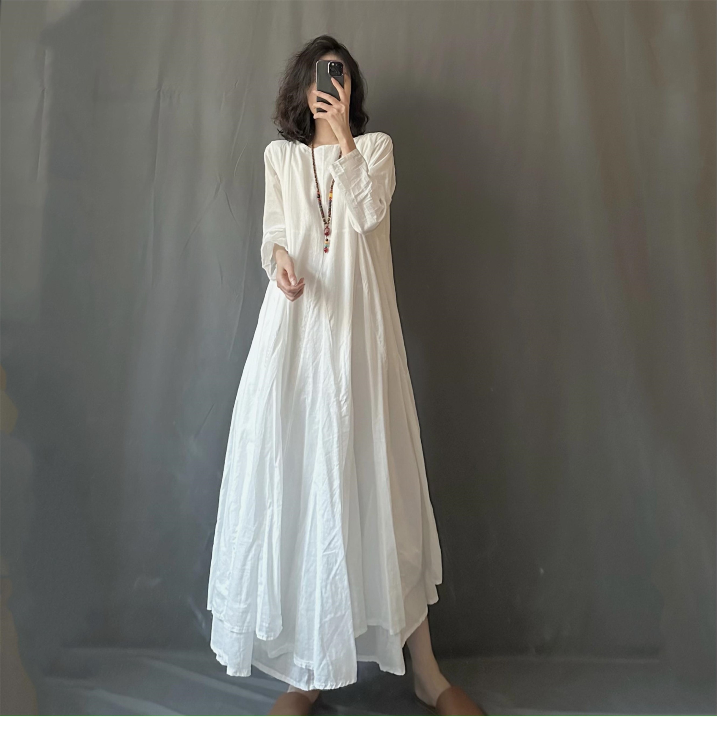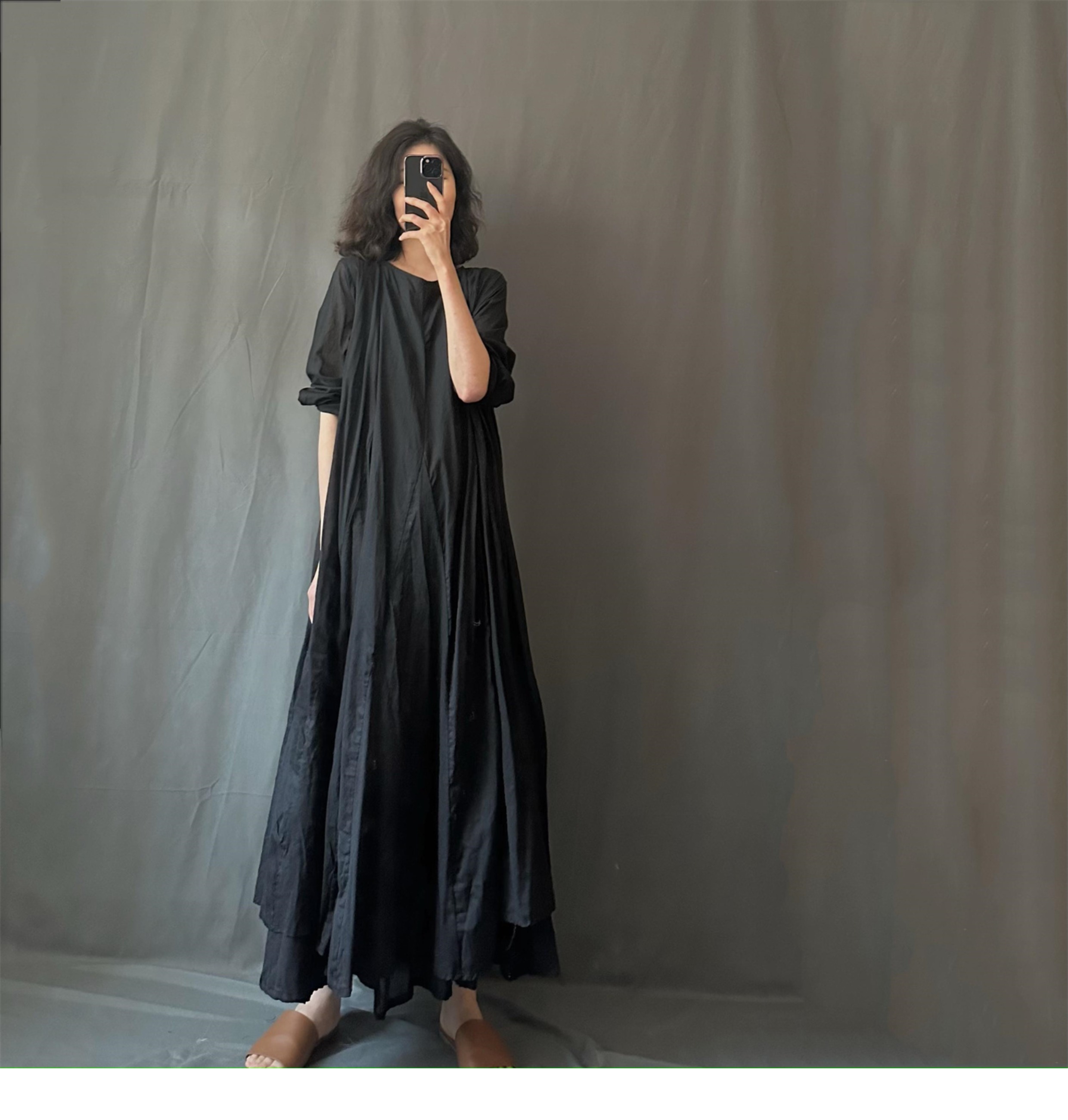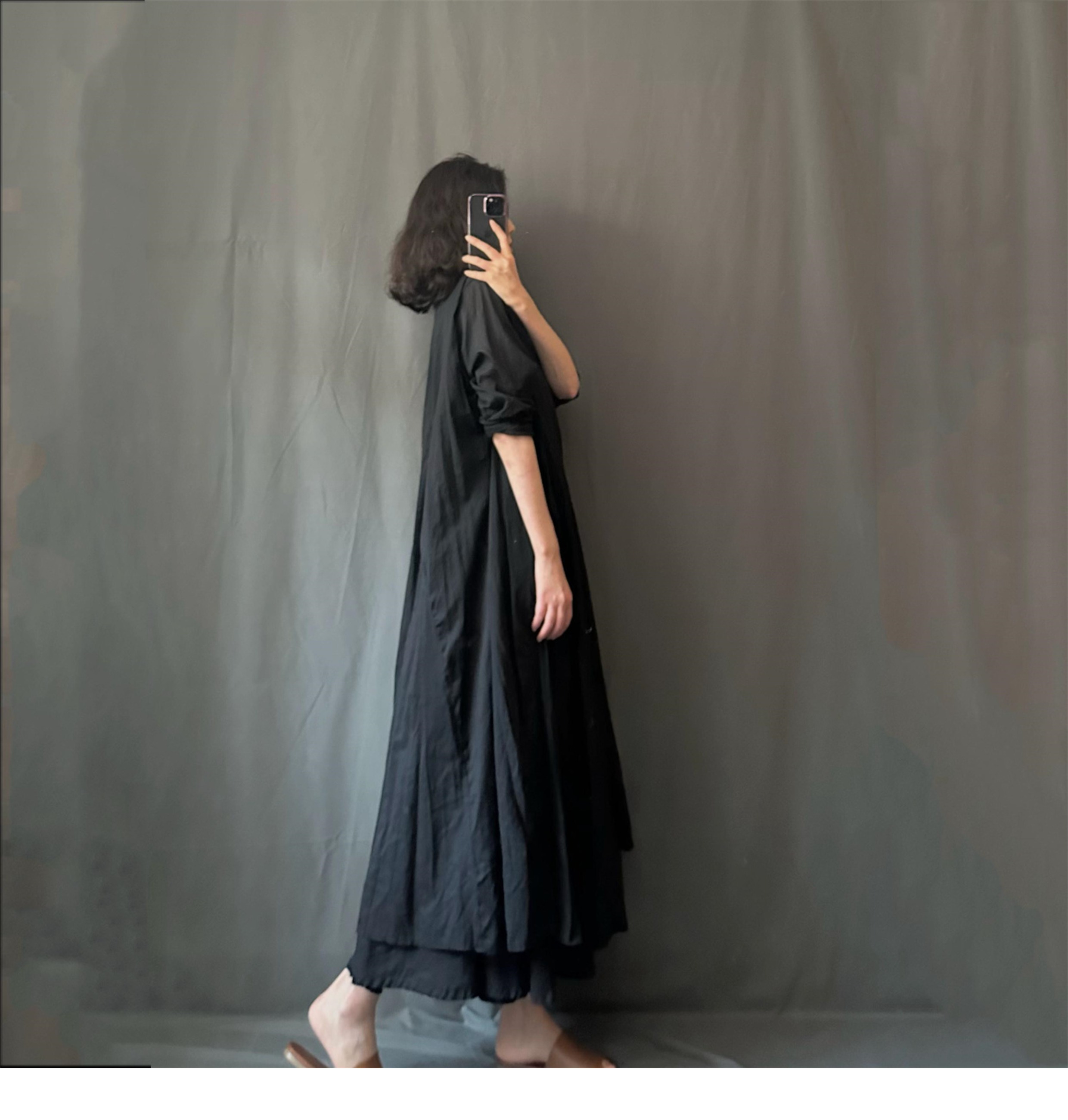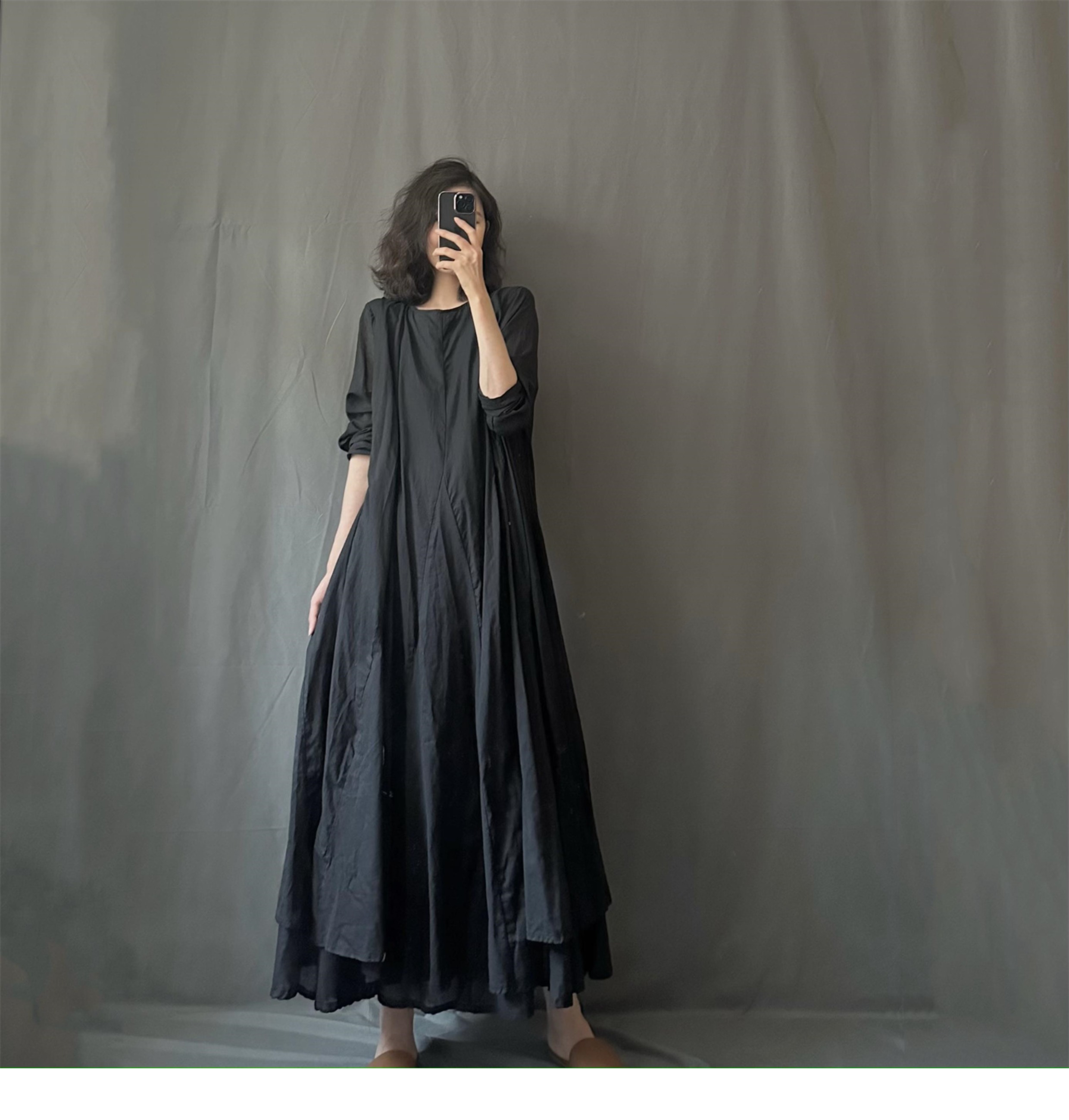 【商品名】【ワンピース】夏 透け感 体型カバー ゆったり ロング 通気性 長袖ワンピース