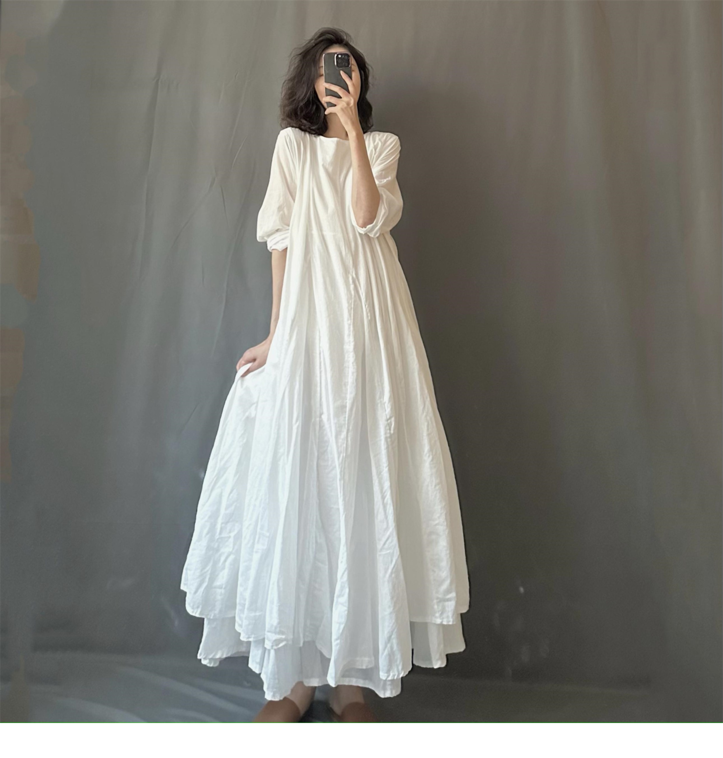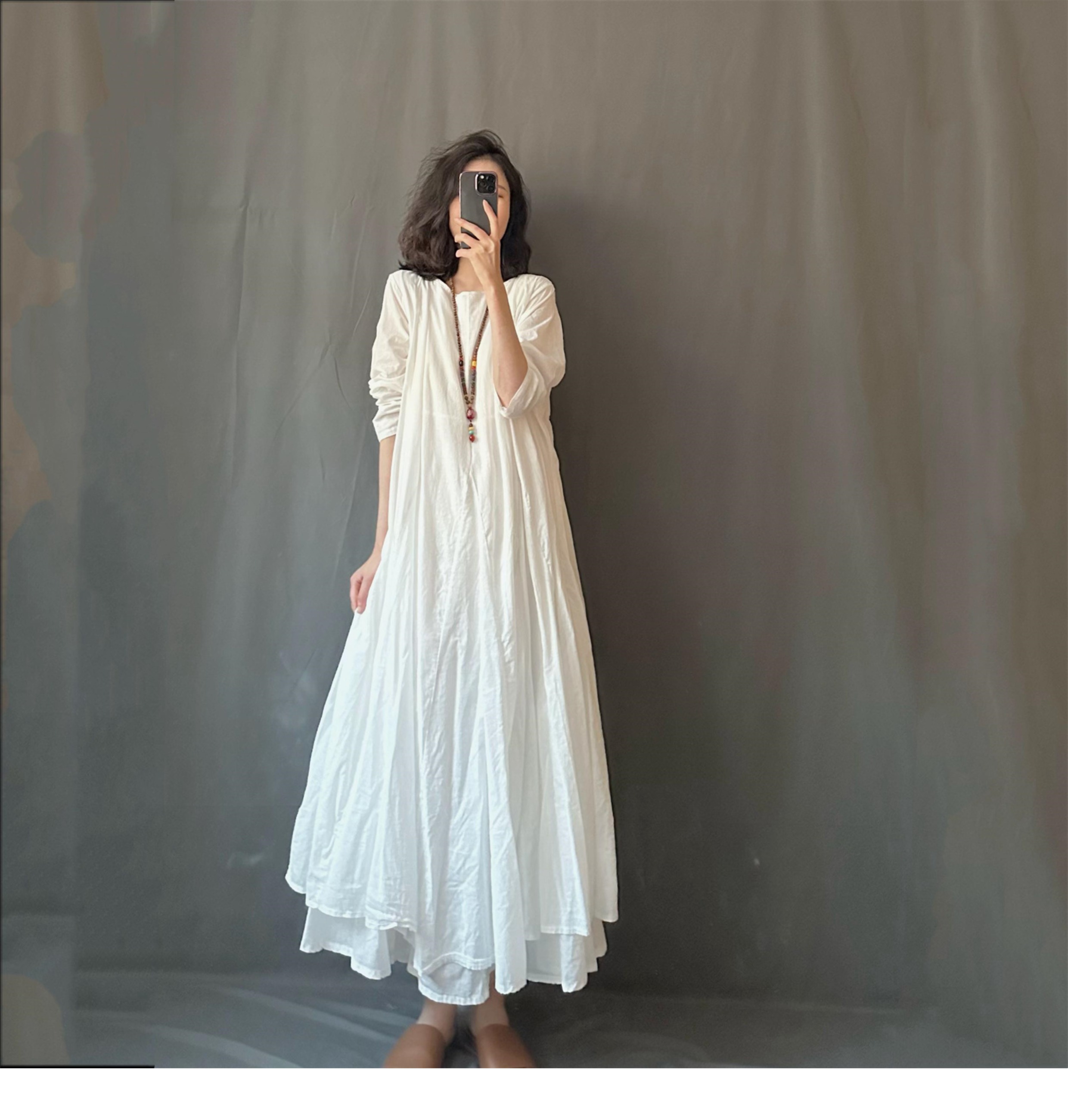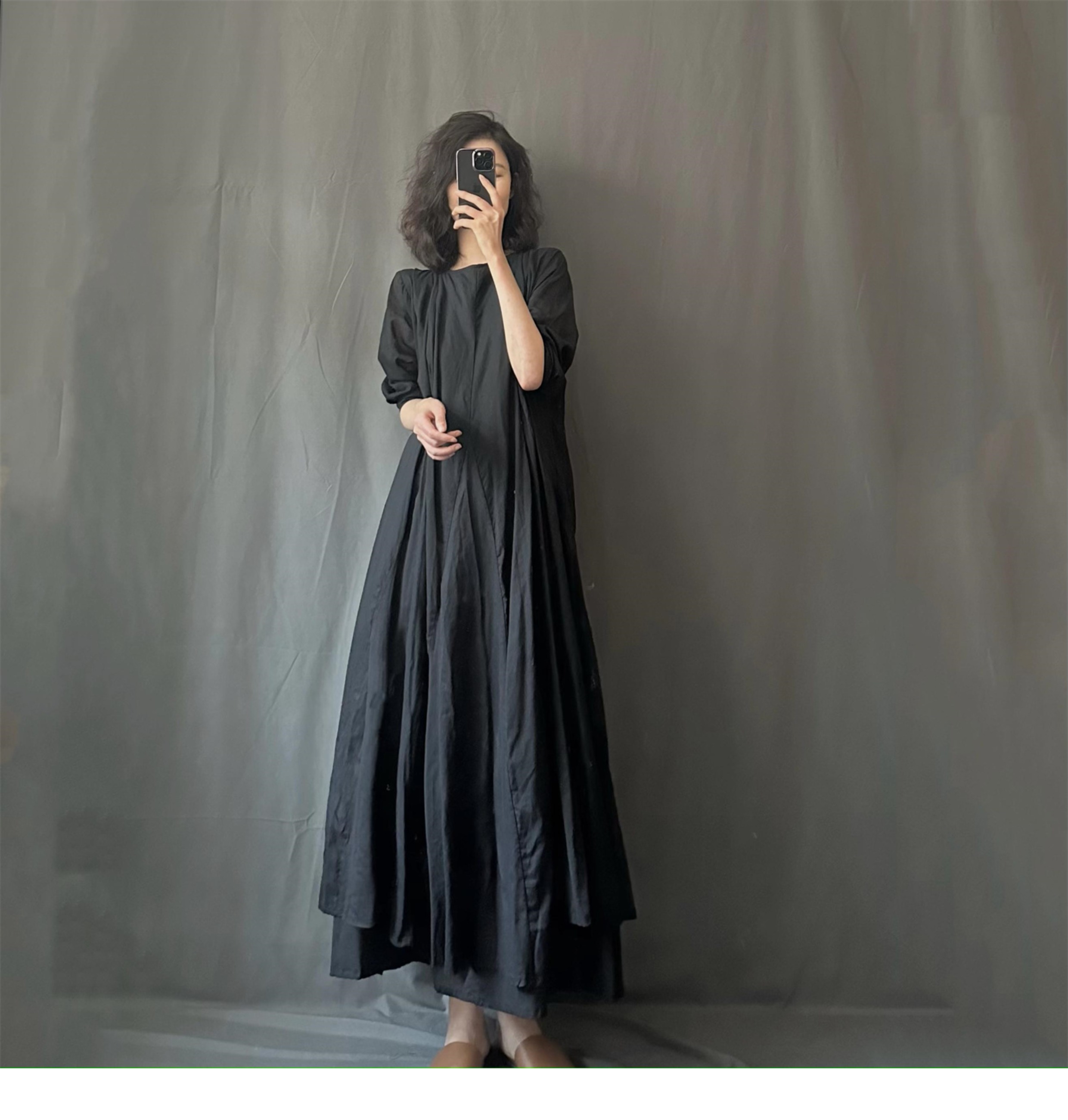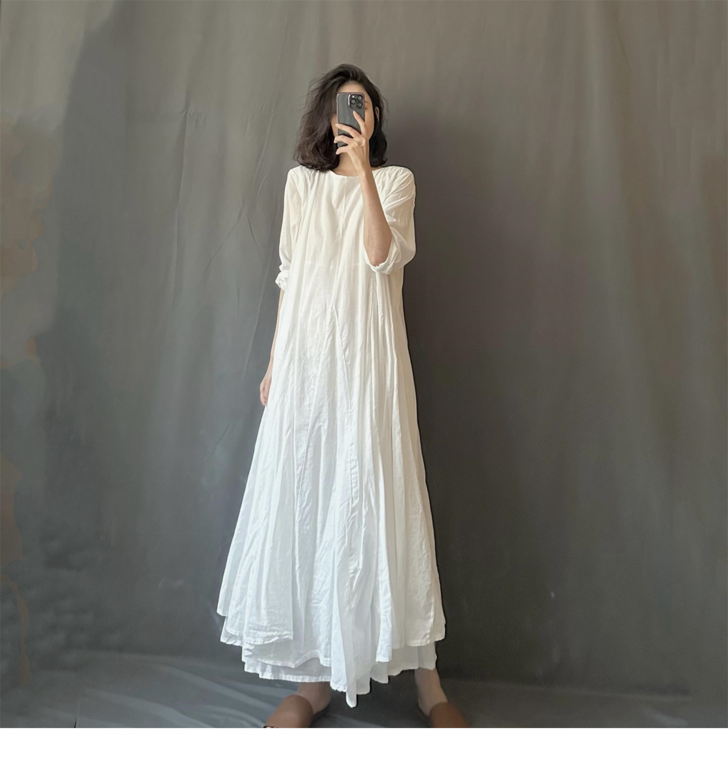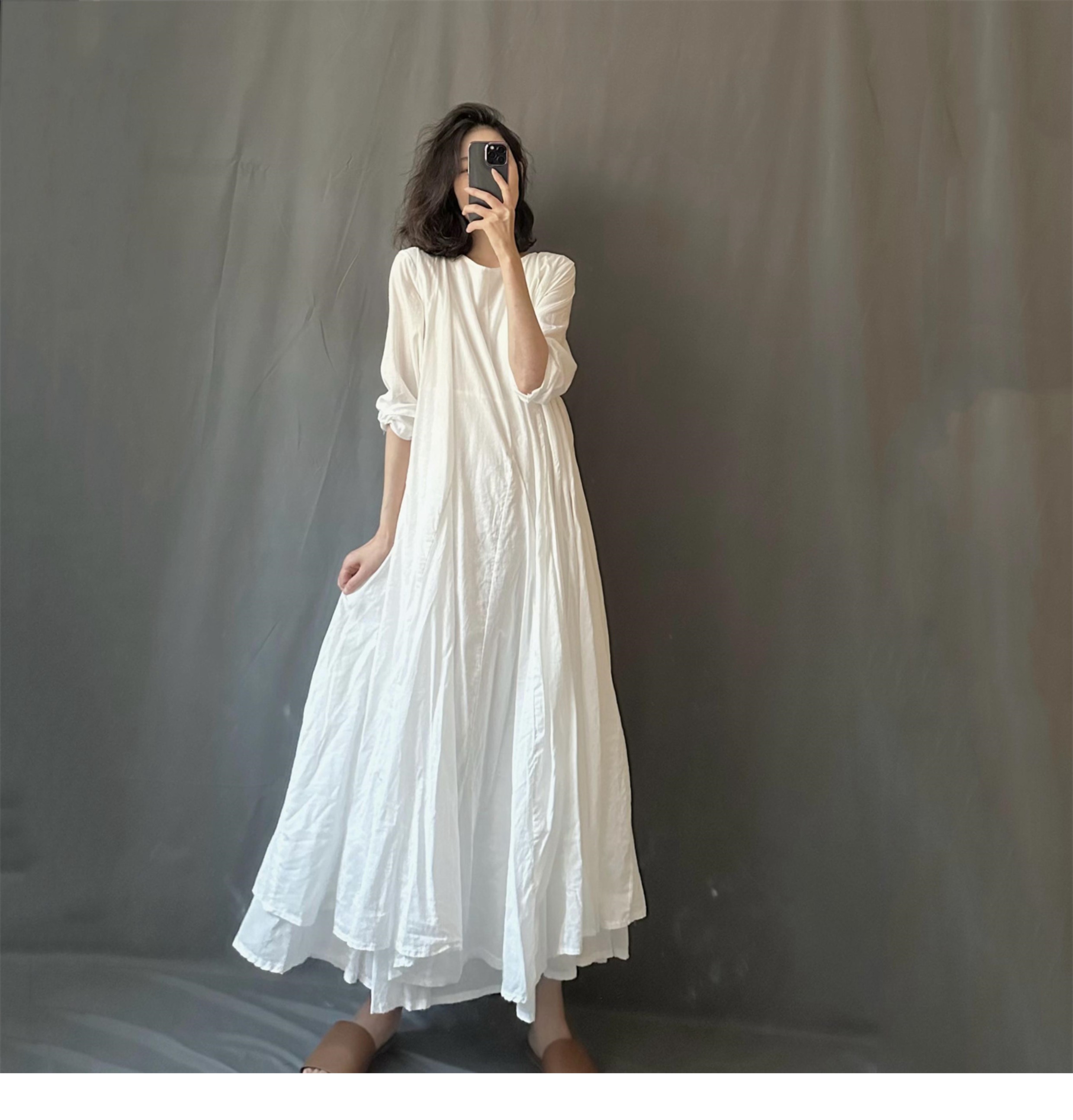 【商品名】【ワンピース】夏 透け感 体型カバー ゆったり ロング 通気性 長袖ワンピース