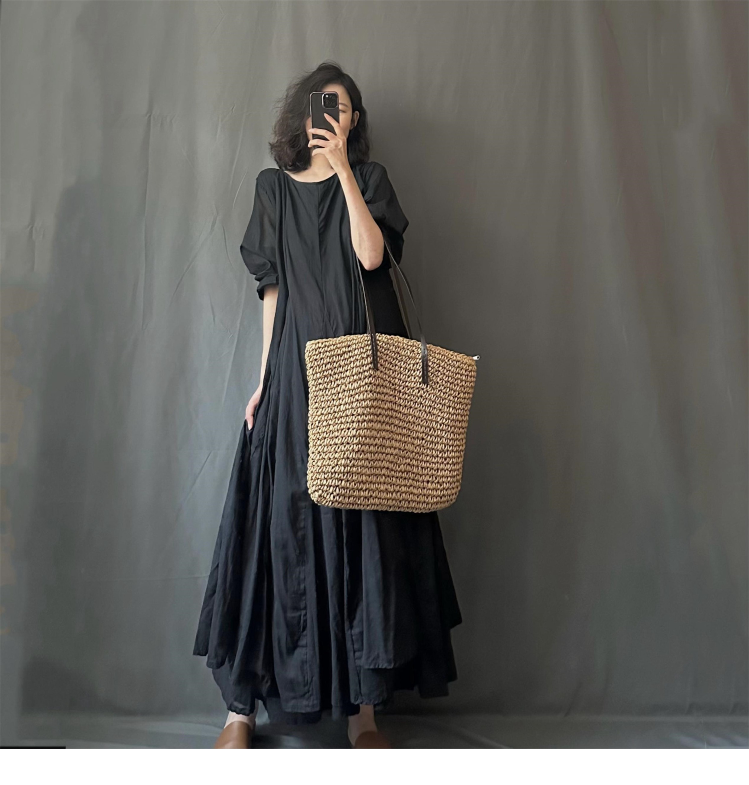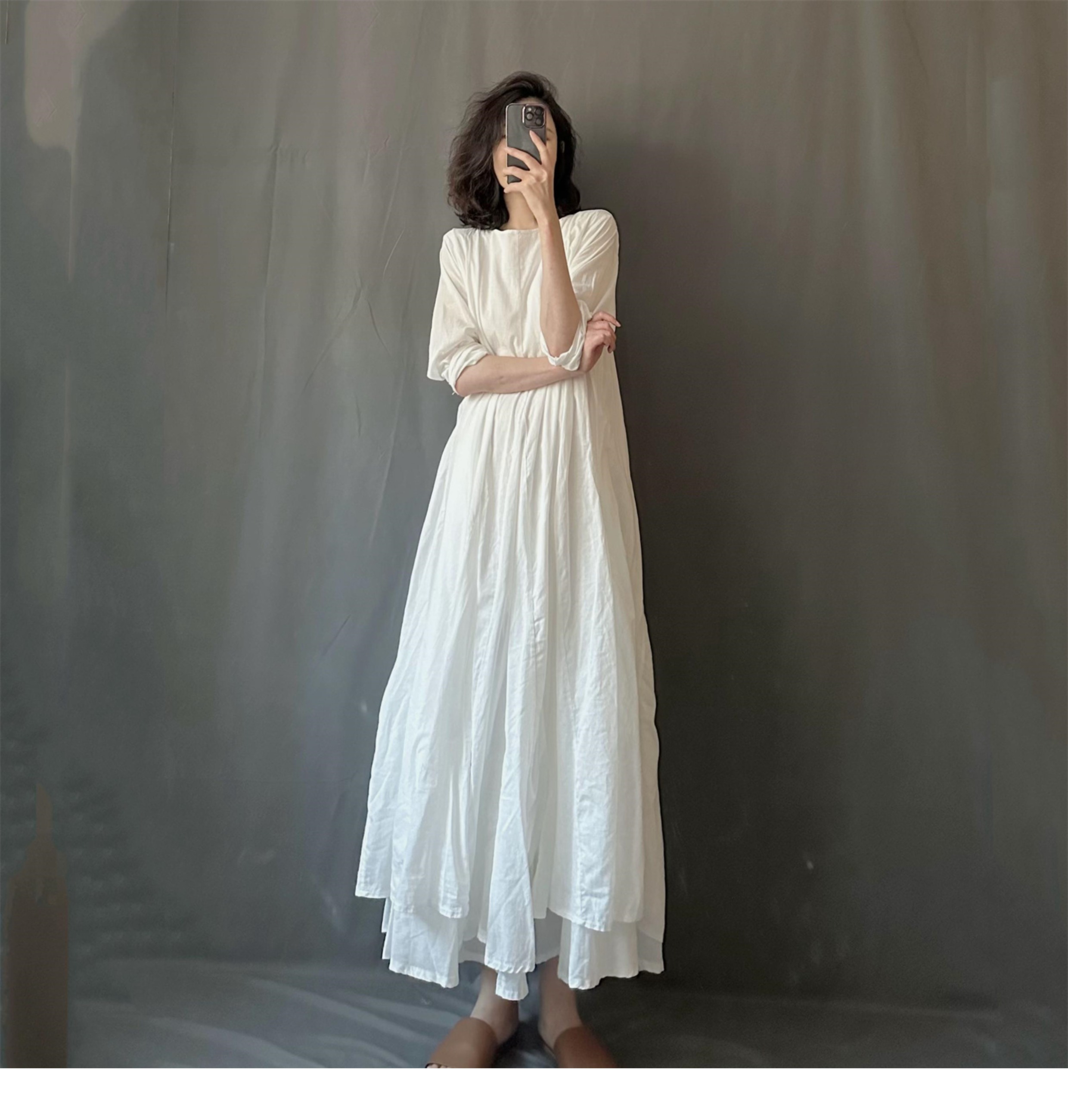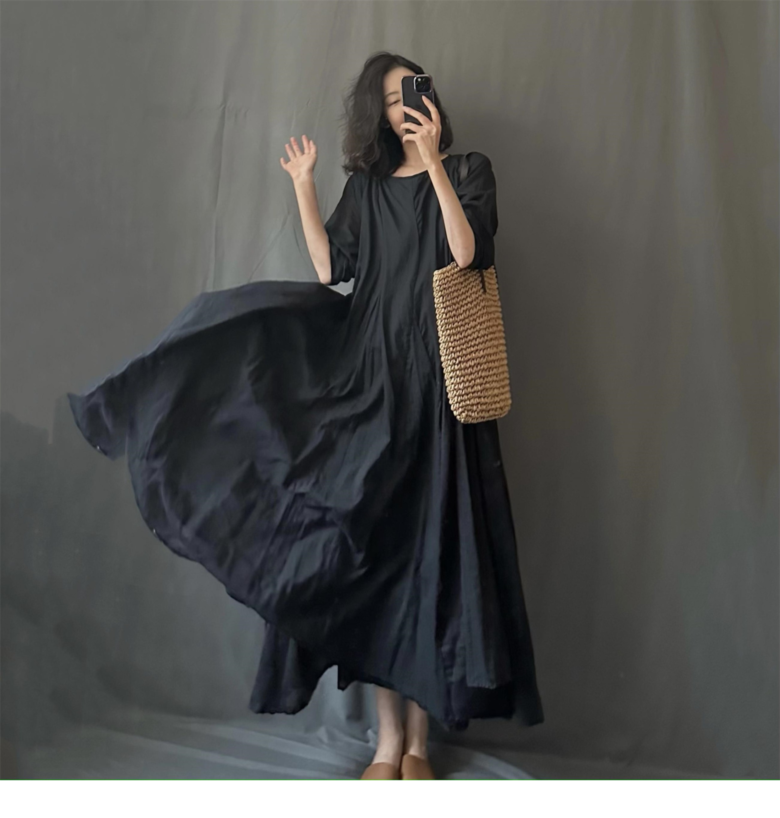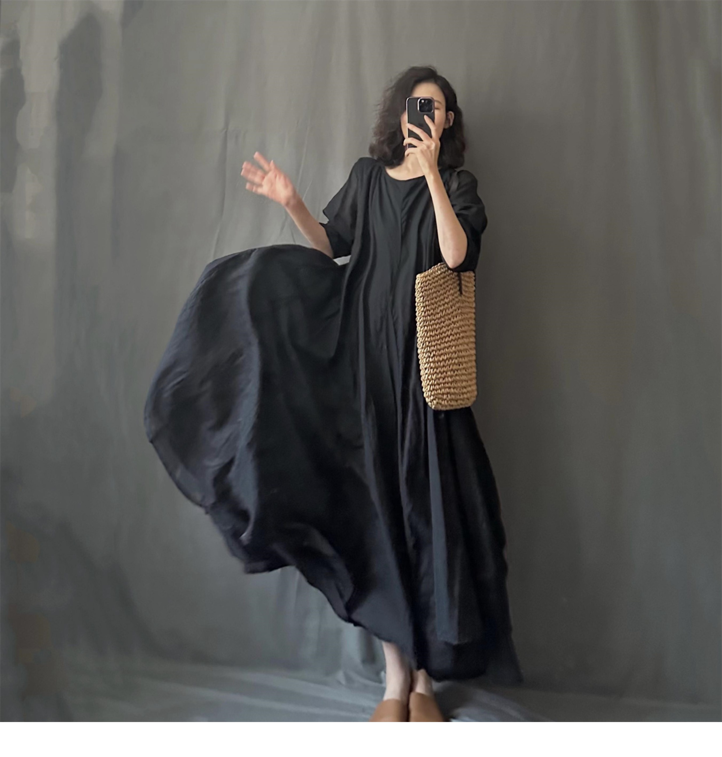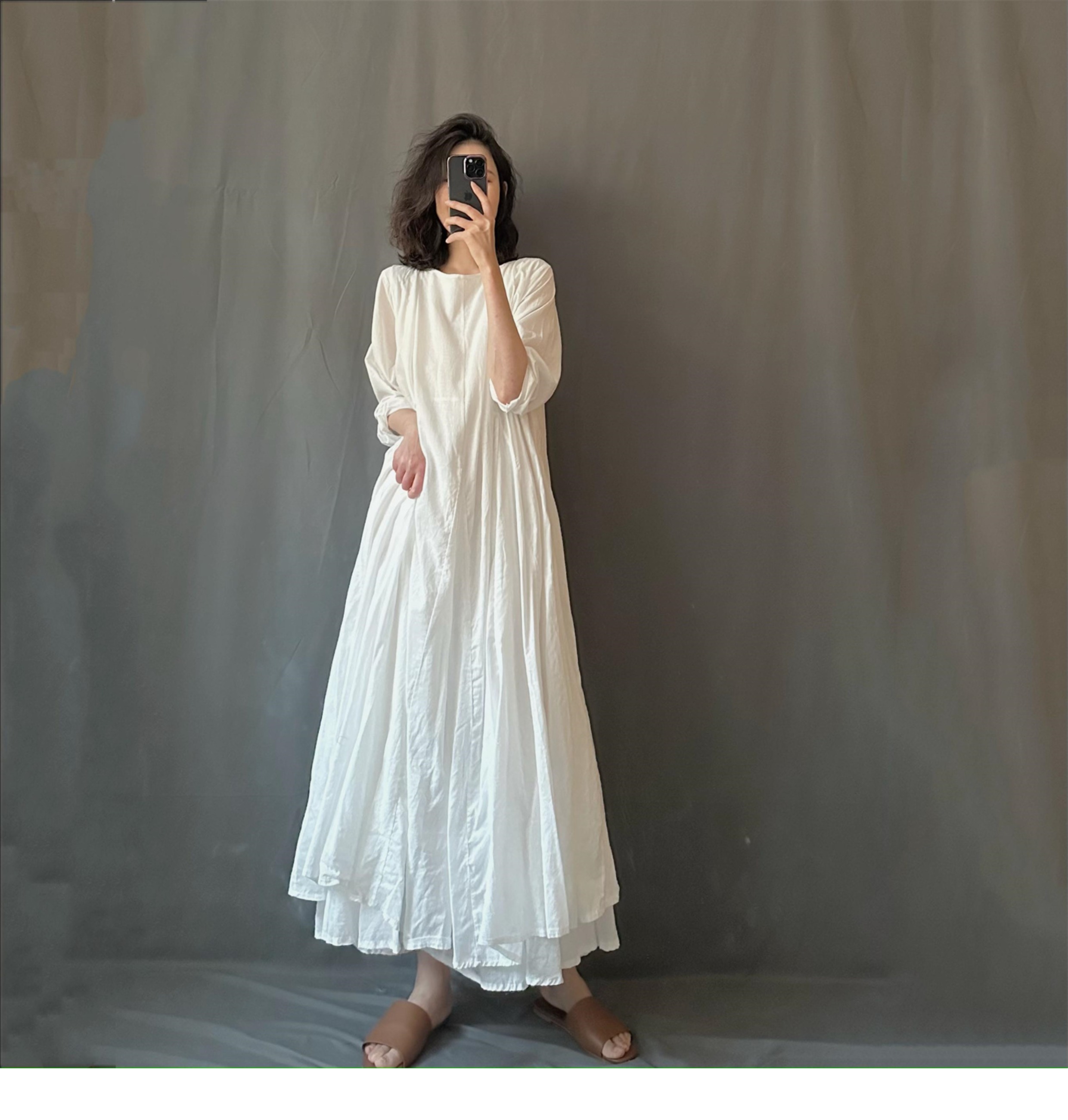 【商品名】【ワンピース】夏 透け感 体型カバー ゆったり ロング 通気性 長袖ワンピース