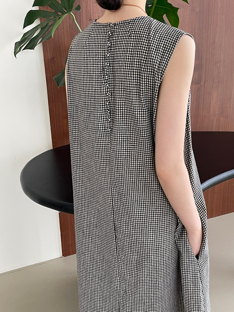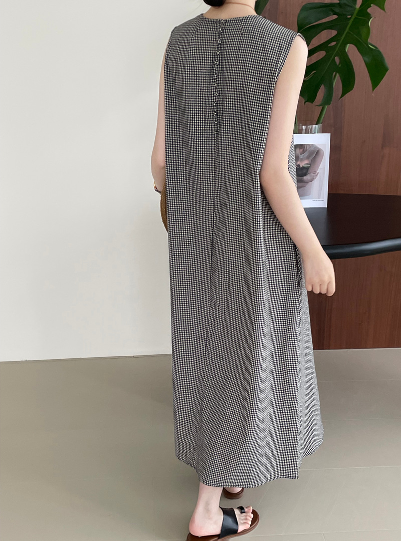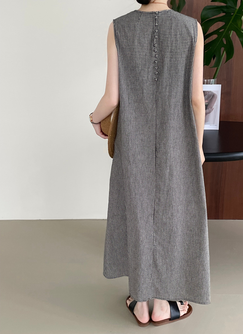 【商品名】【ワンピース】レトロ あつさり 綿麻生地 ノースリーブワンピース