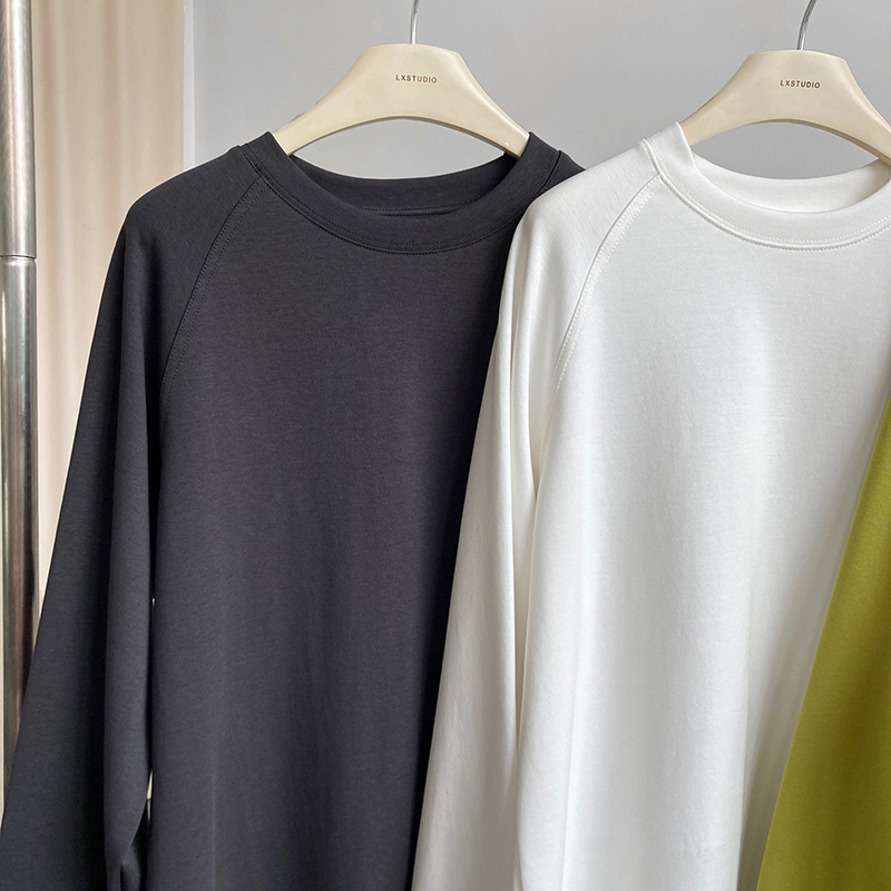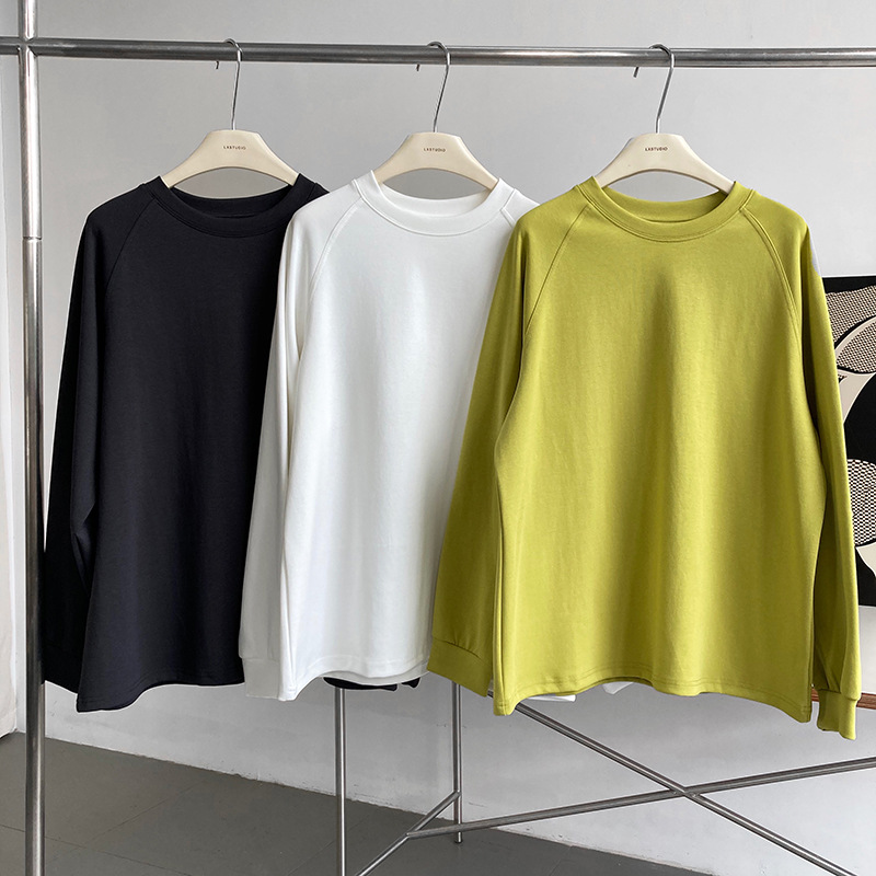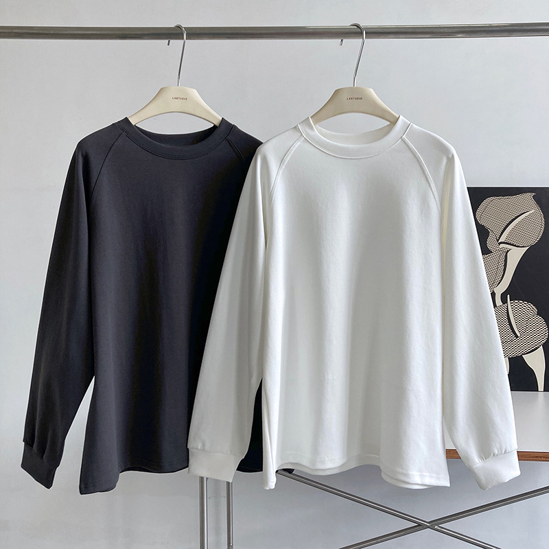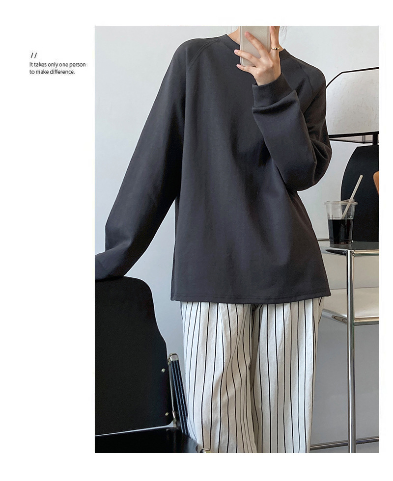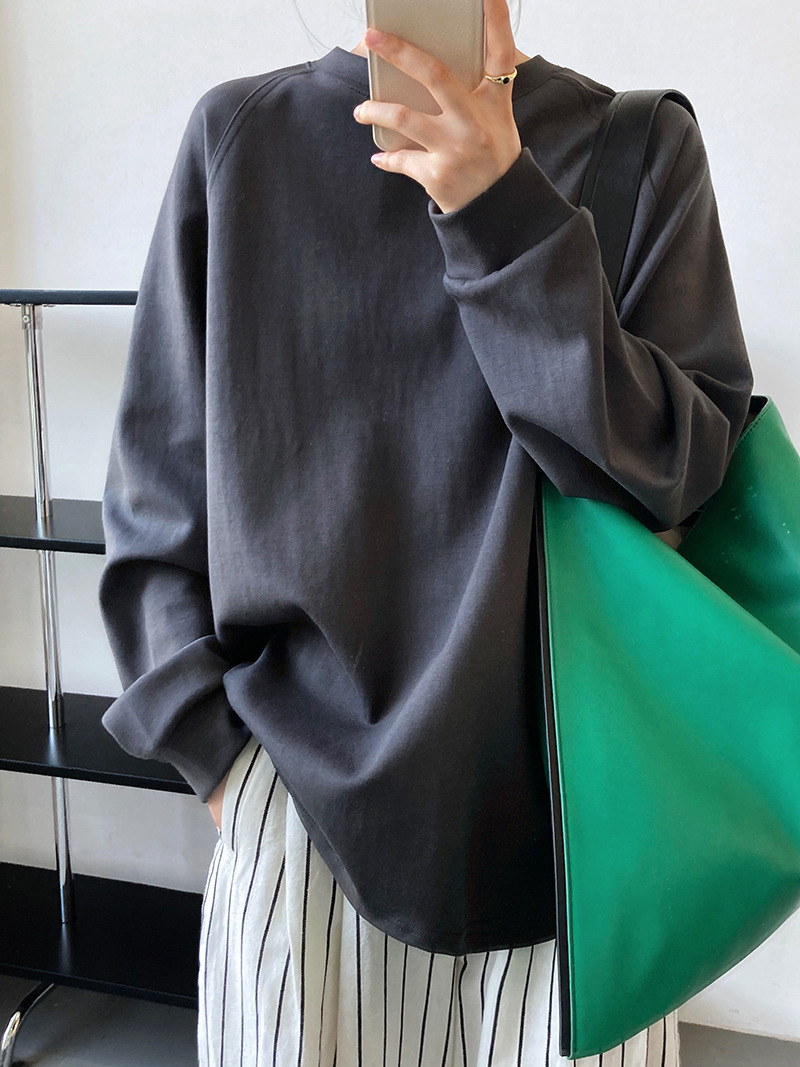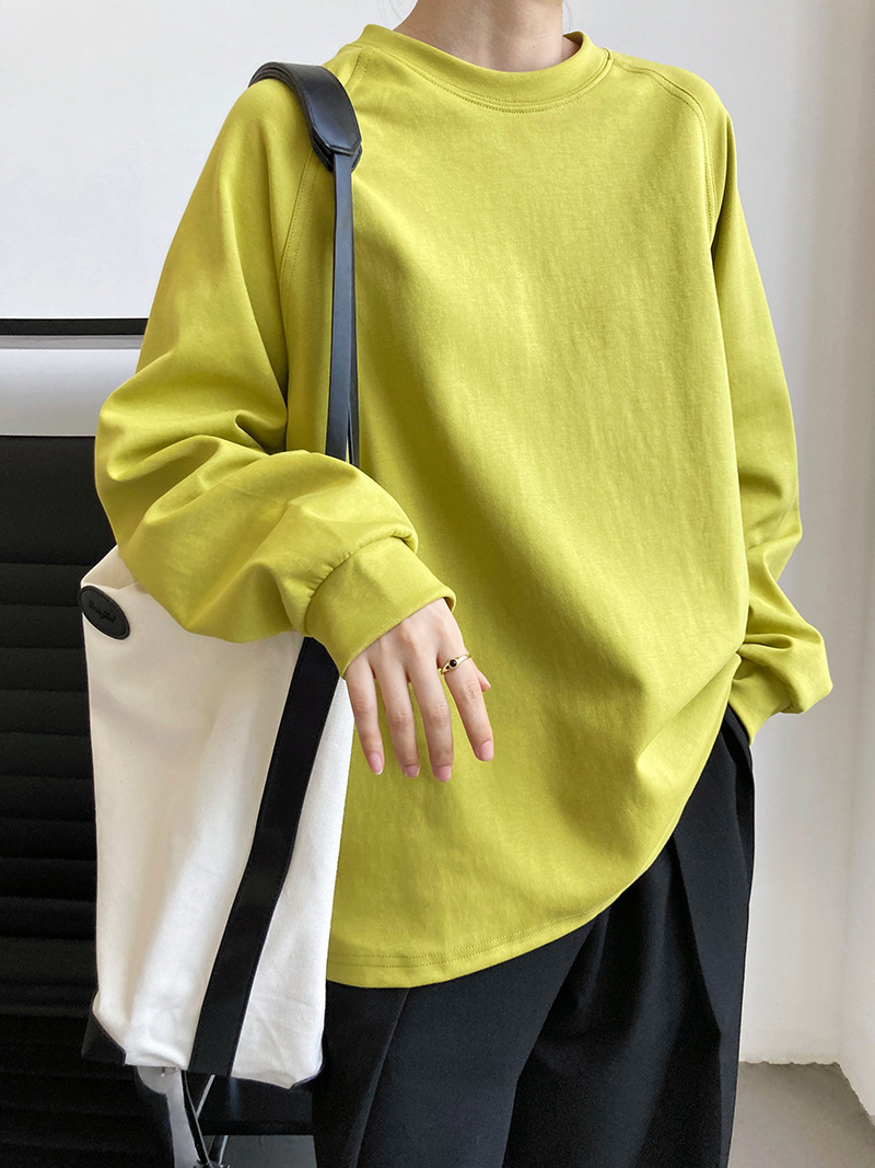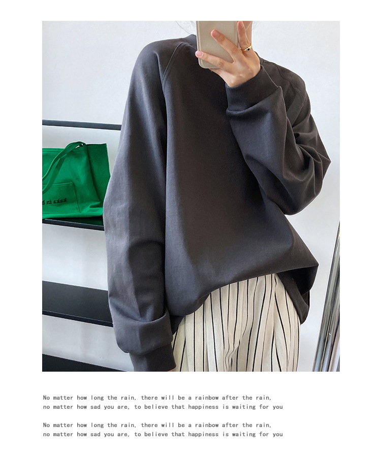 【トップス】春秋 無地 ラウンドネック ルーズ 薄手パーカー 長袖 Tシャツ【SNシリーズ】
