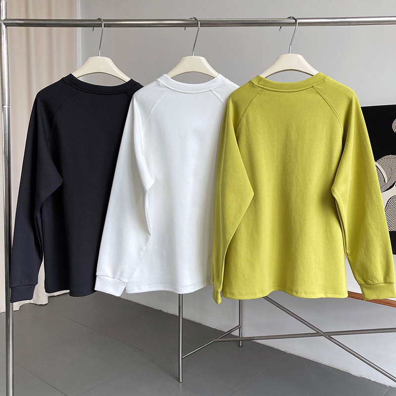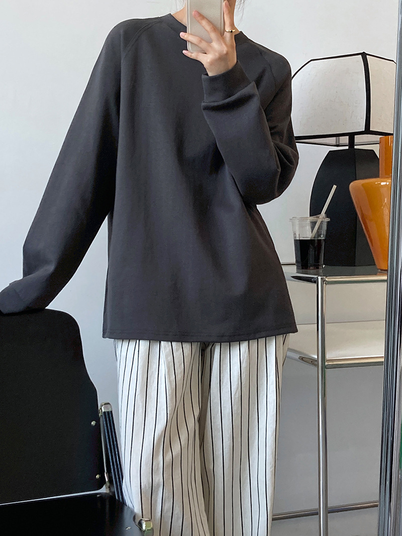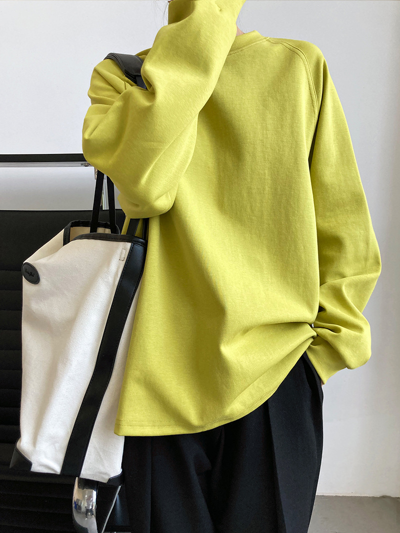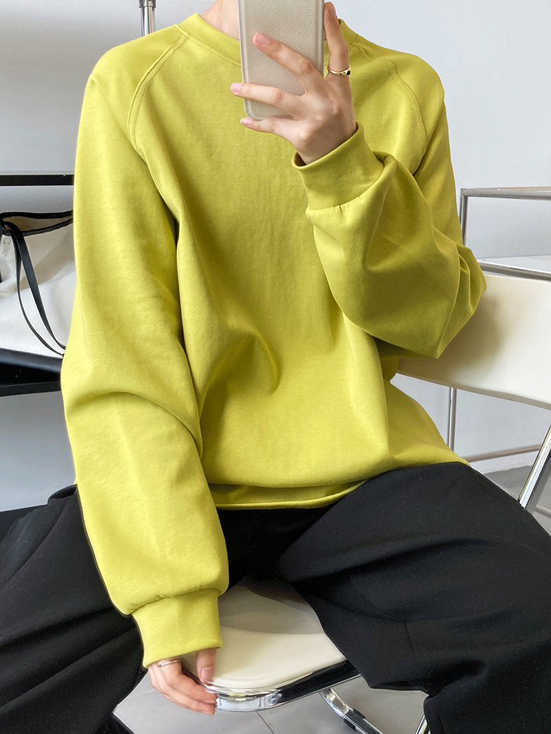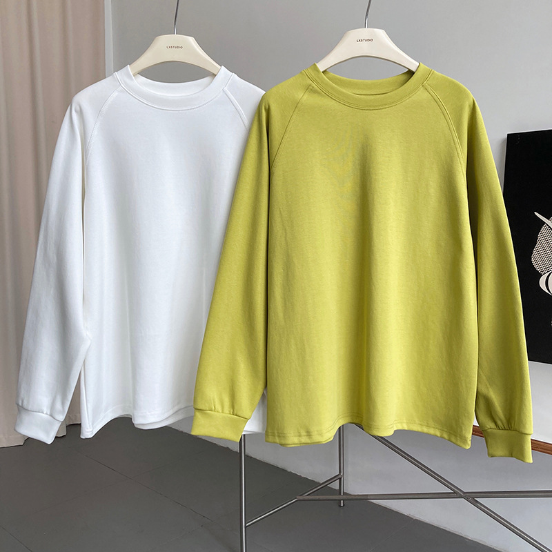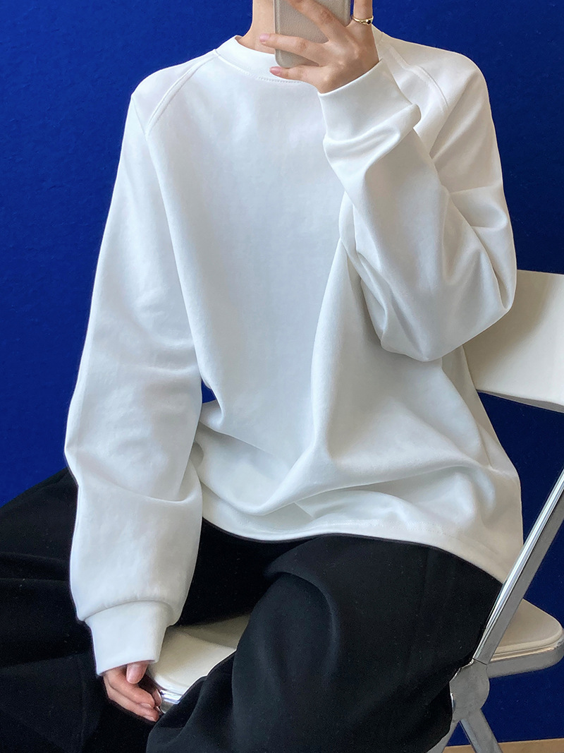 【トップス】春秋 無地 ラウンドネック ルーズ 薄手パーカー 長袖 Tシャツ【SNシリーズ】