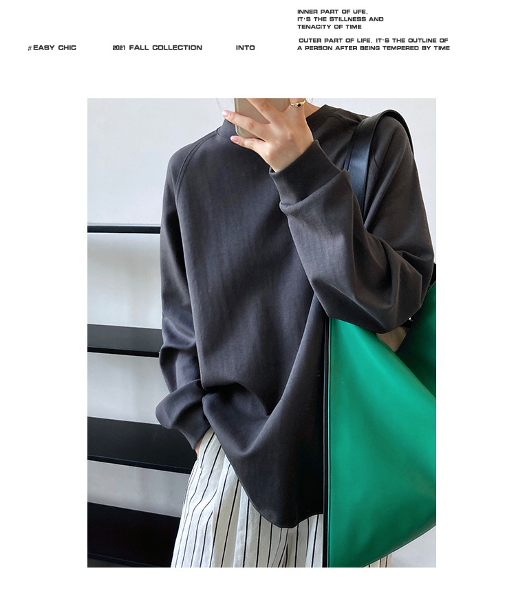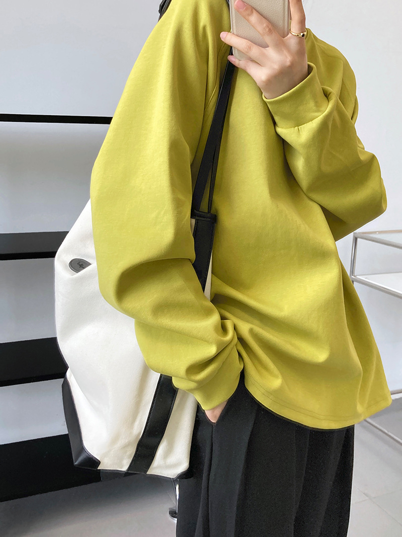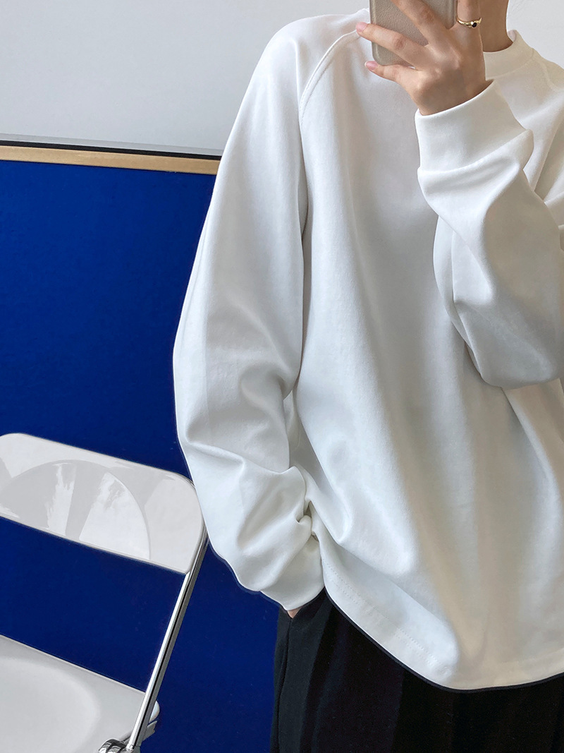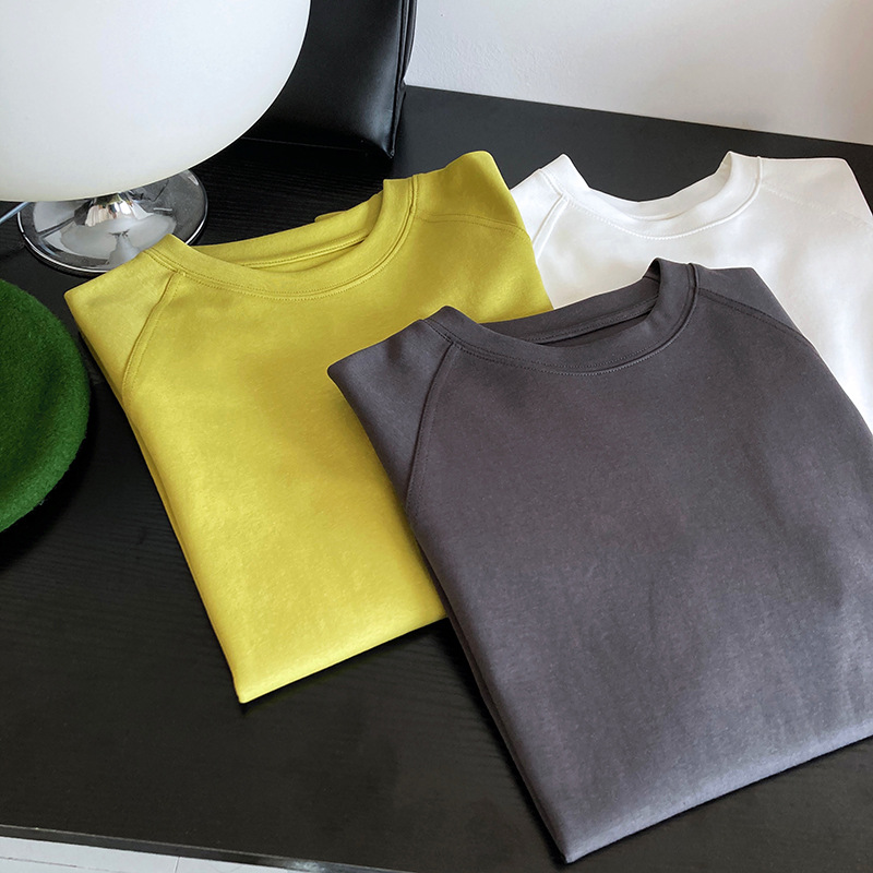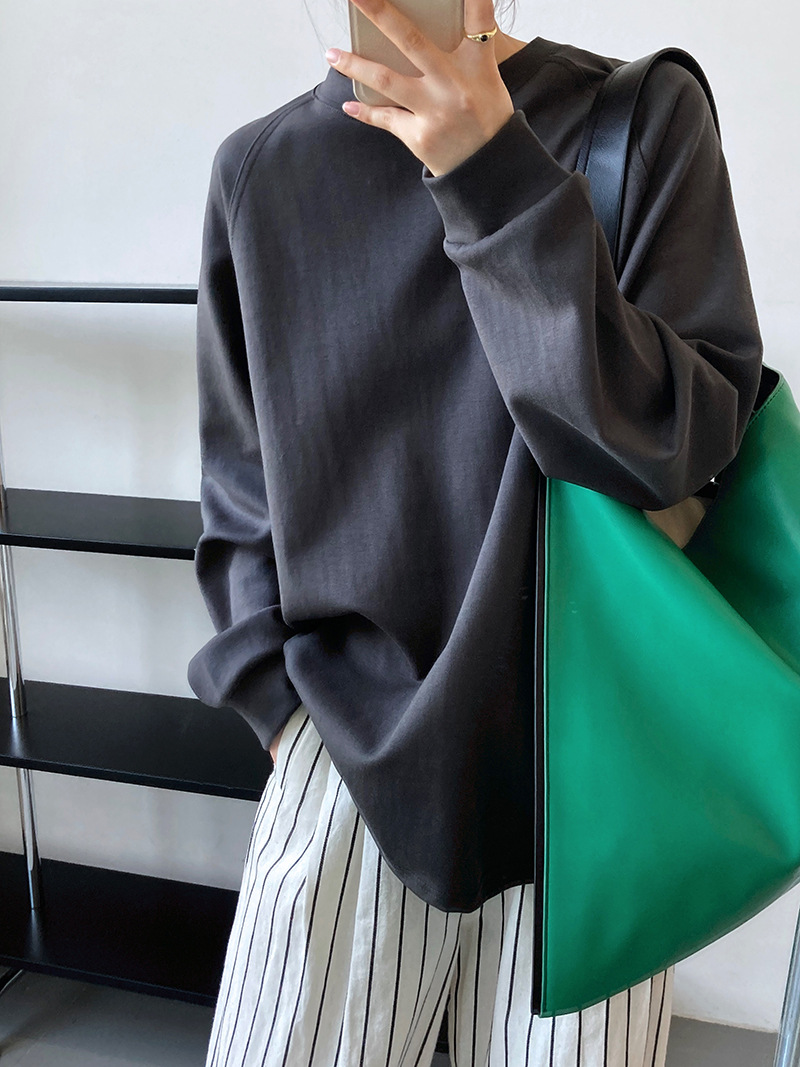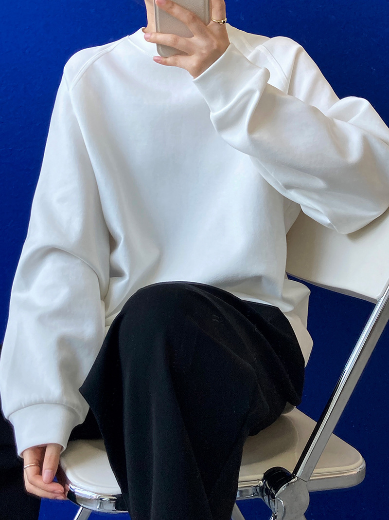 【トップス】春秋 無地 ラウンドネック ルーズ 薄手パーカー 長袖 Tシャツ【SNシリーズ】