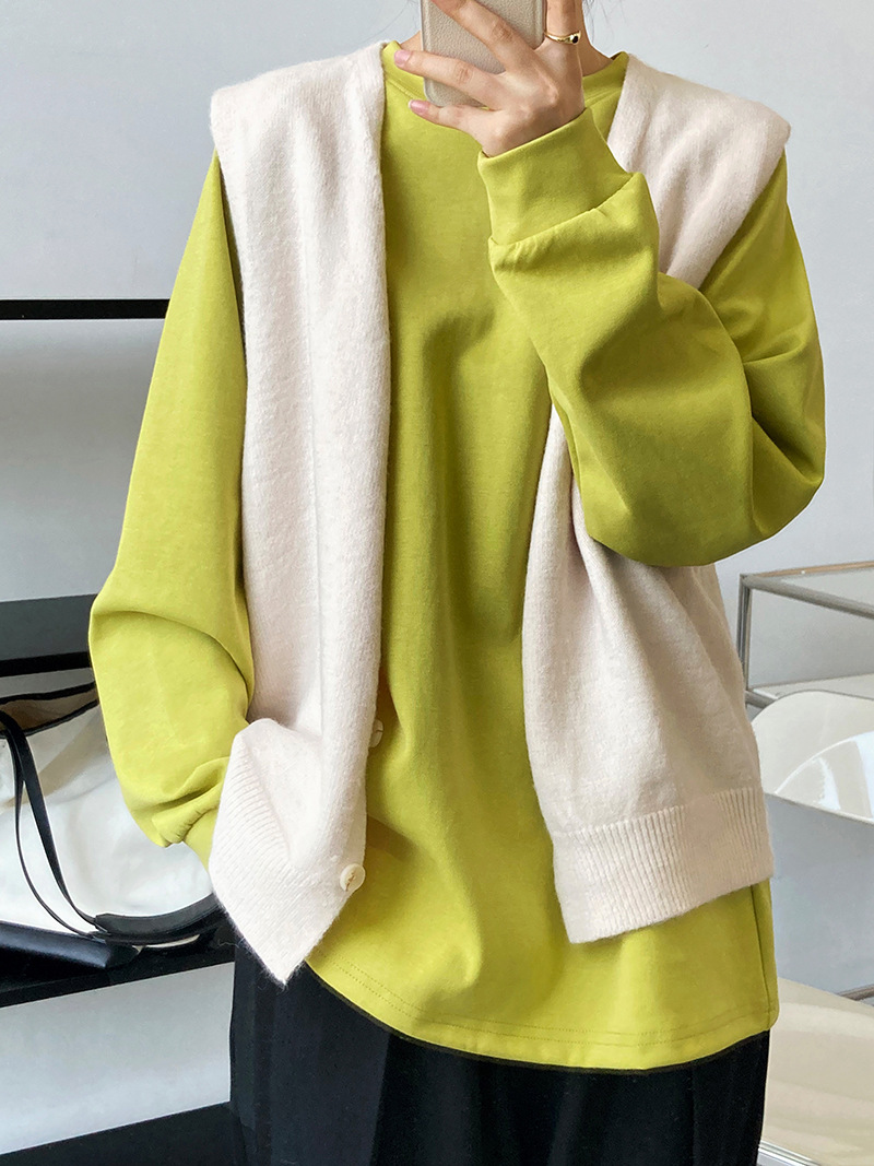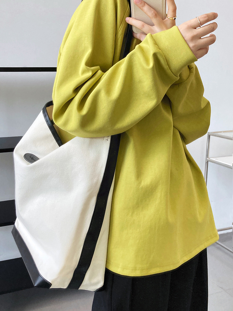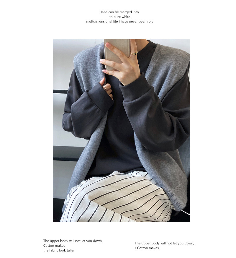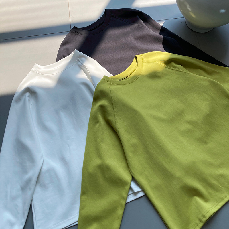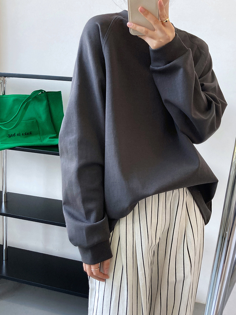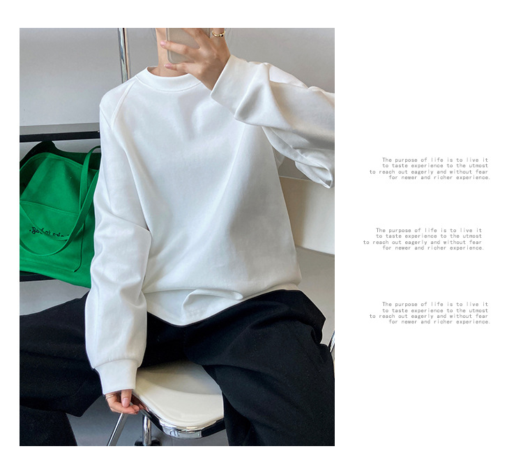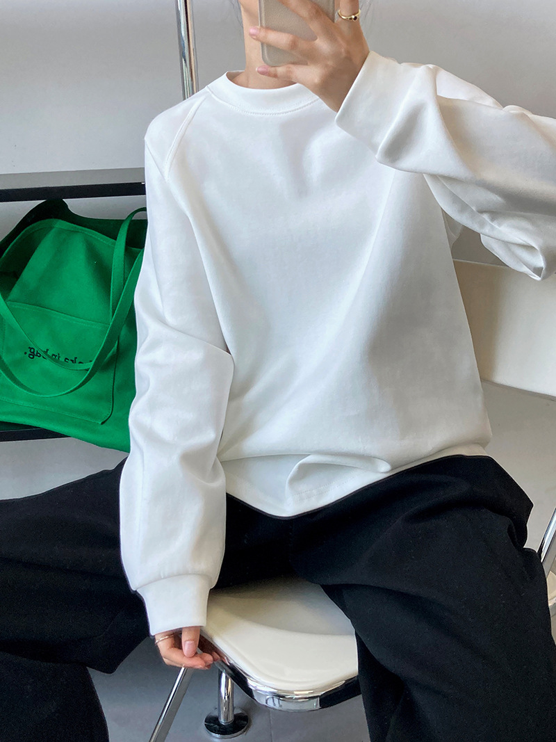 【トップス】春秋 無地 ラウンドネック ルーズ 薄手パーカー 長袖 Tシャツ【SNシリーズ】