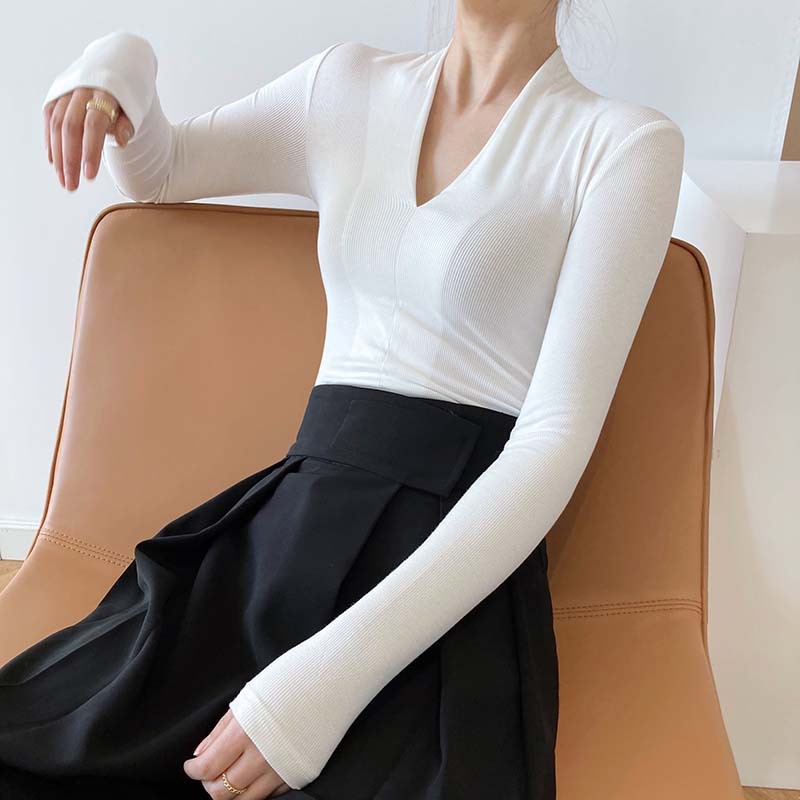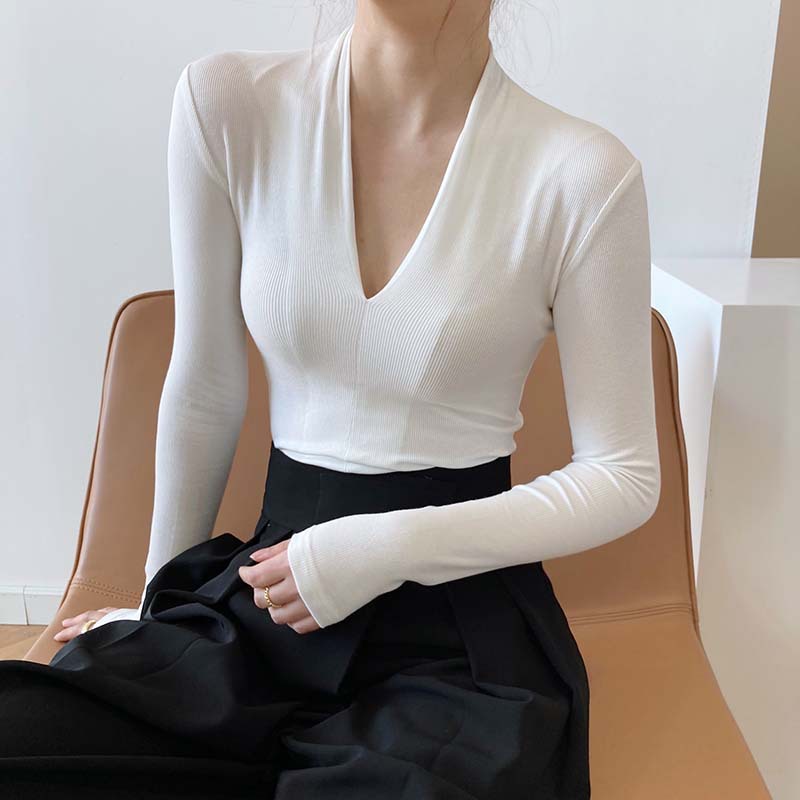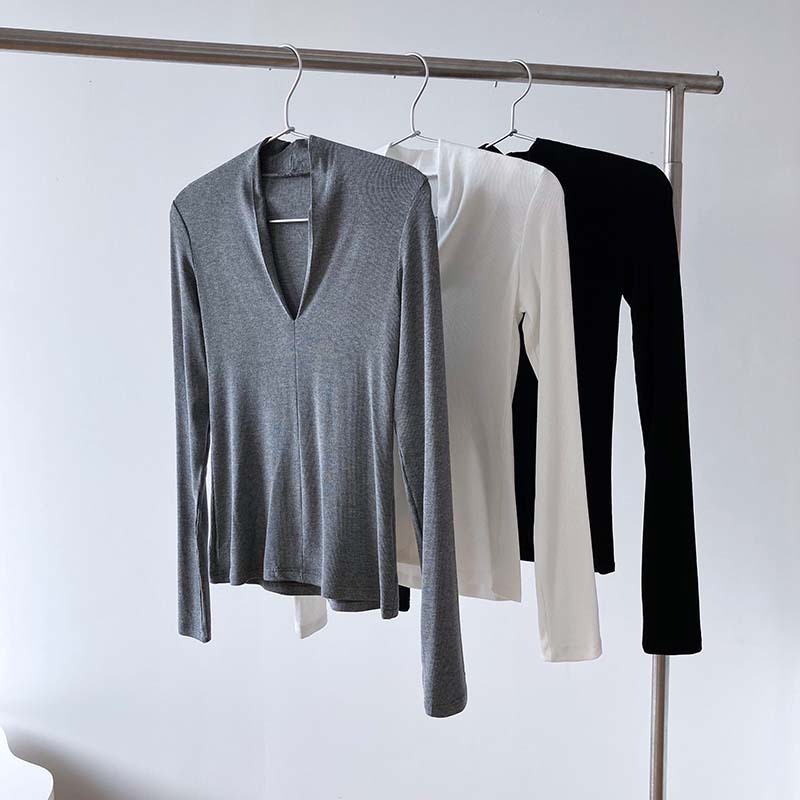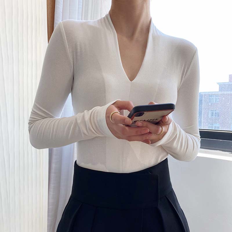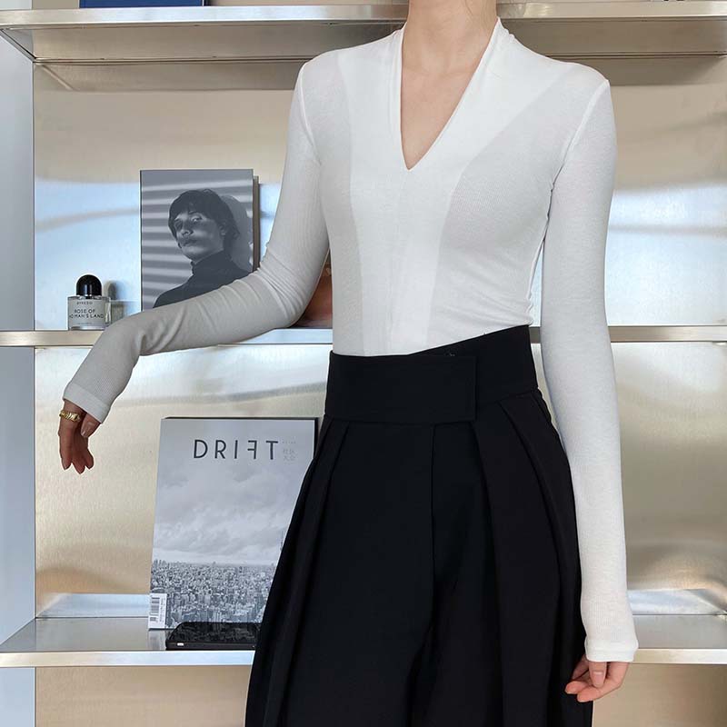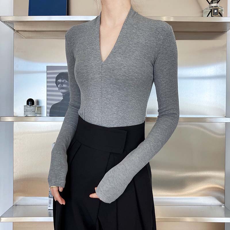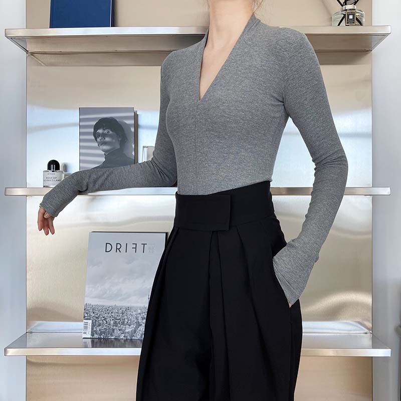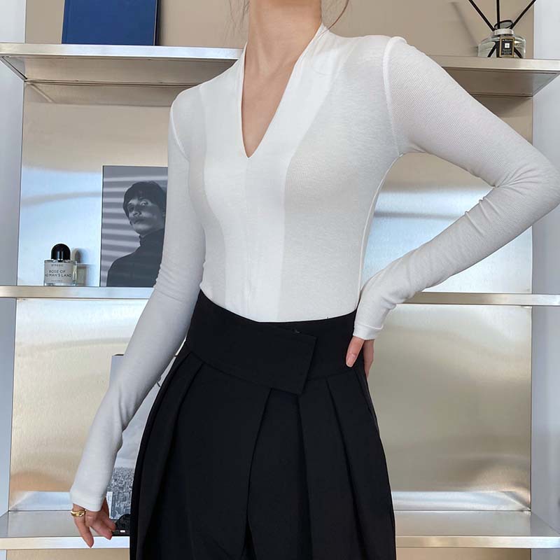 【トップス】春秋冬 スリム Vネック 女性らしい 高級のTシャツ【SNシリーズ】