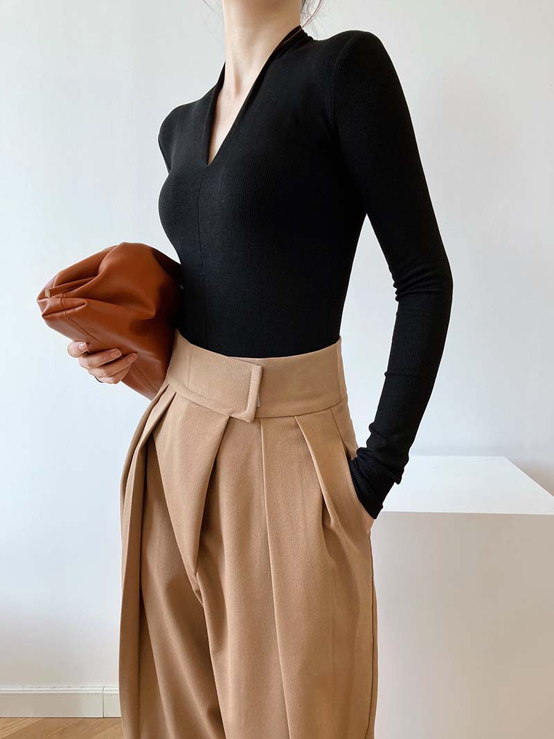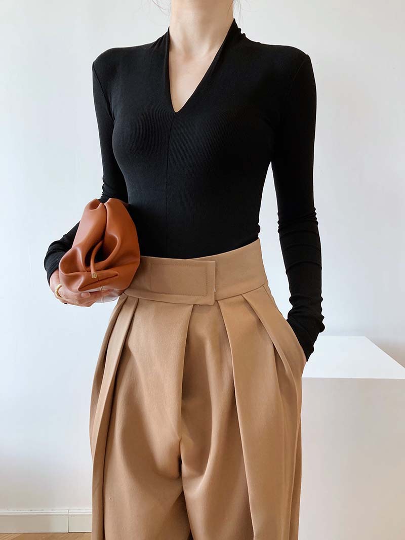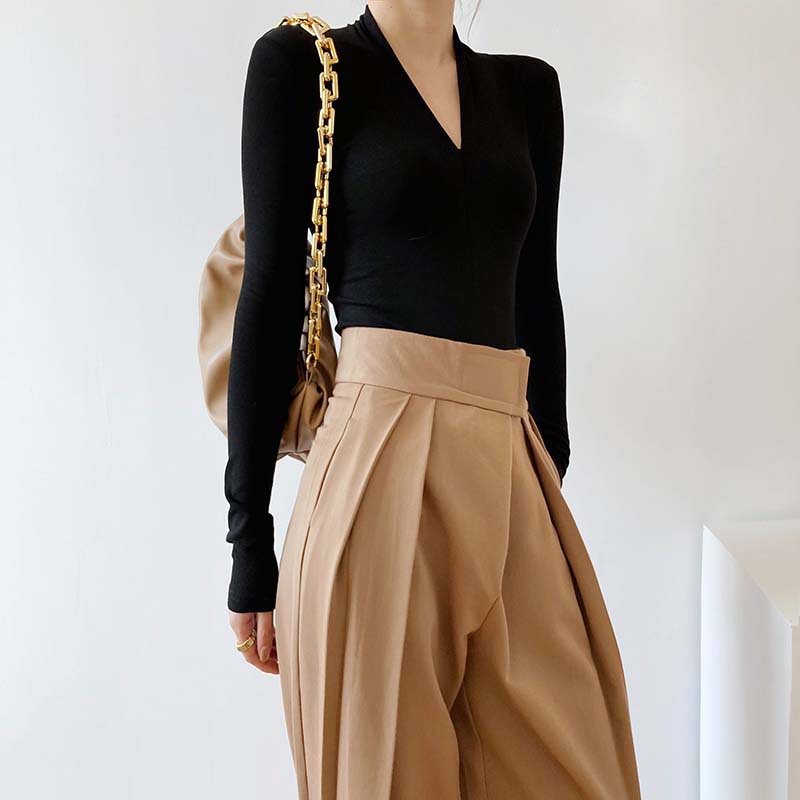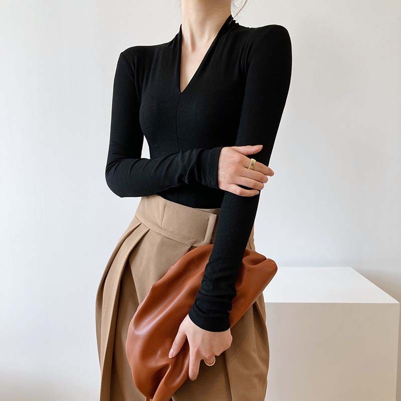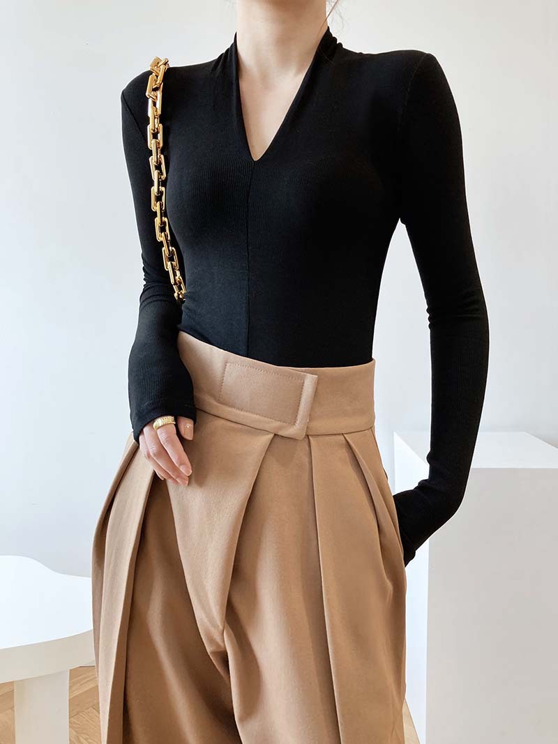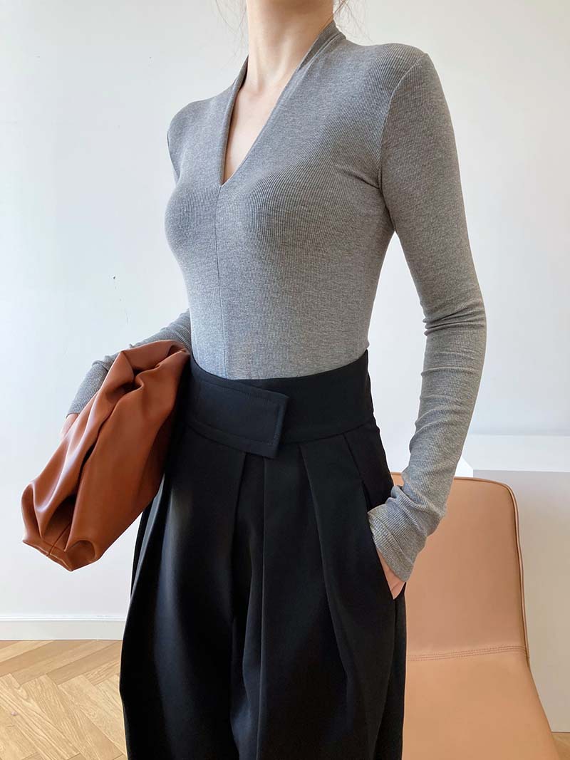 【トップス】春秋冬 スリム Vネック 女性らしい 高級のTシャツ【SNシリーズ】