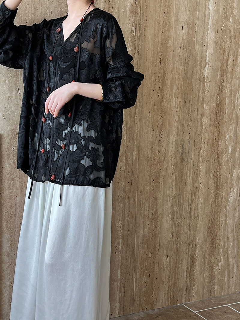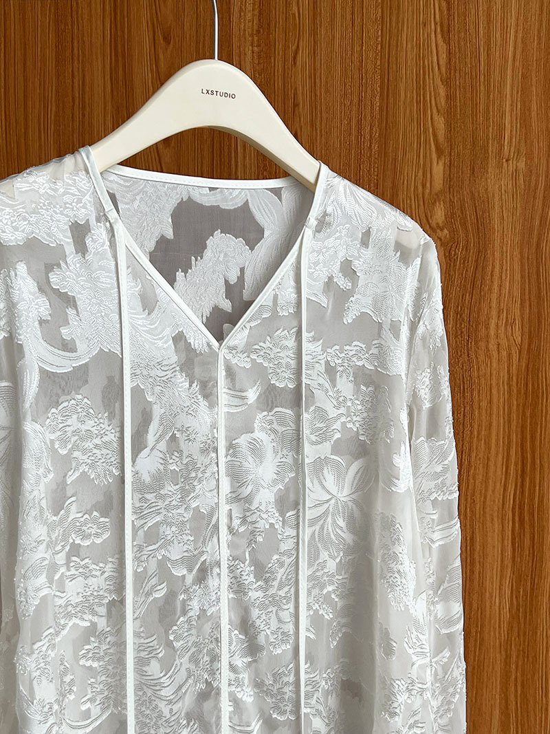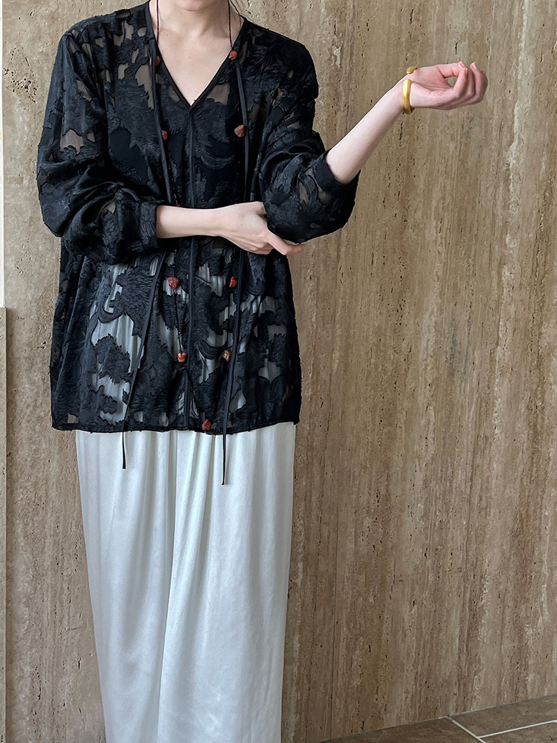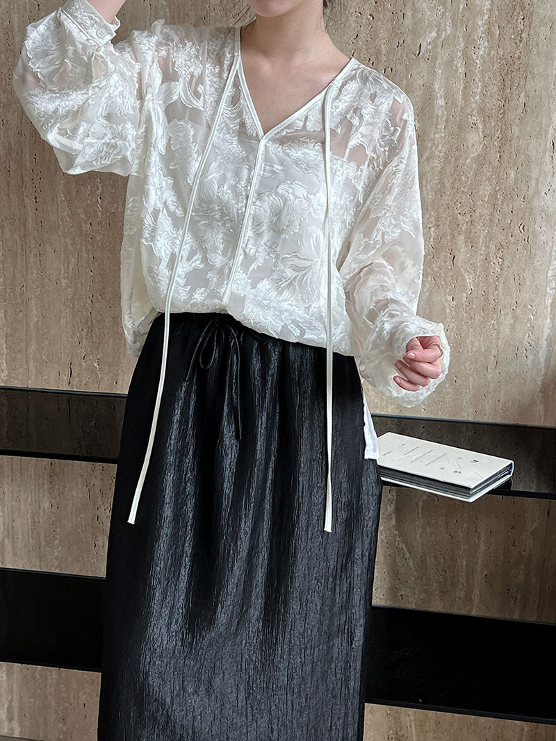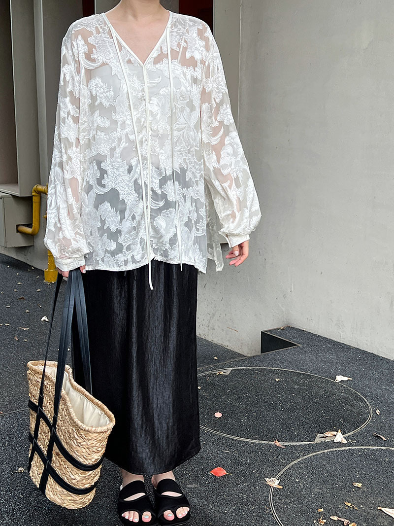 【トップス】春夏秋 透かし雕り Vネック 長袖 日焼け防止 シャツ【SNシリーズ】