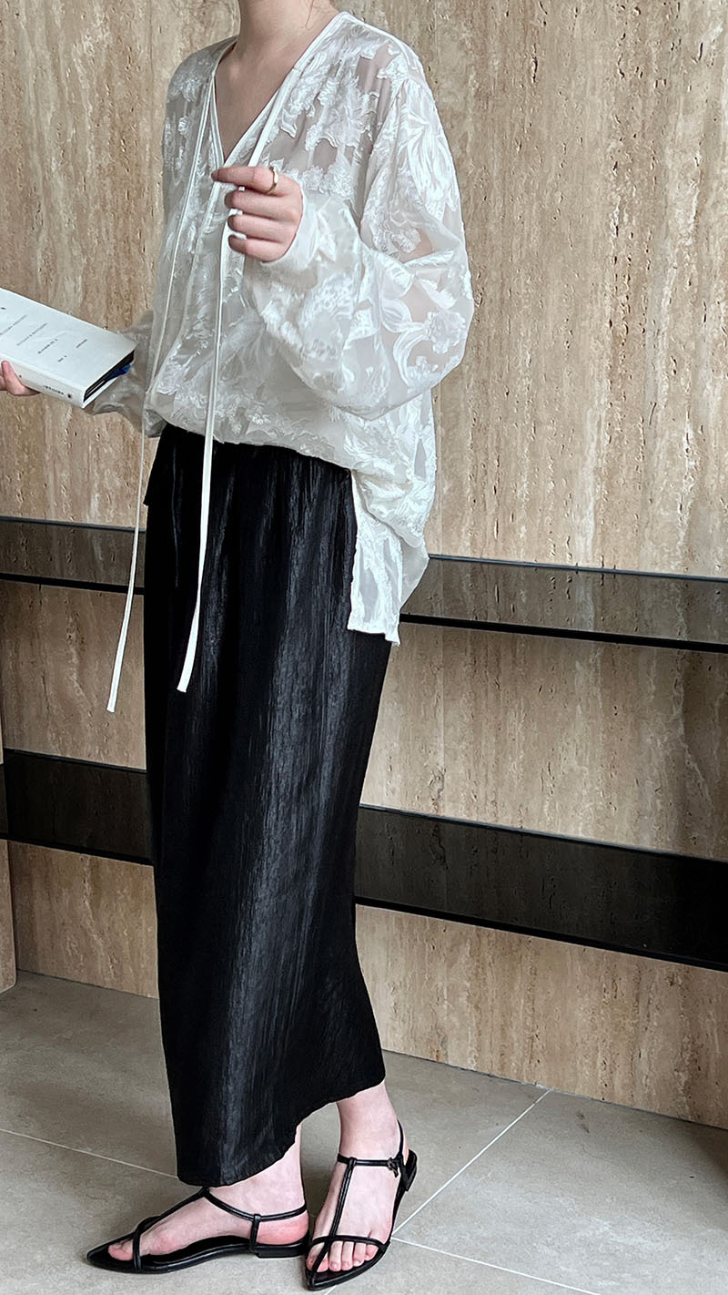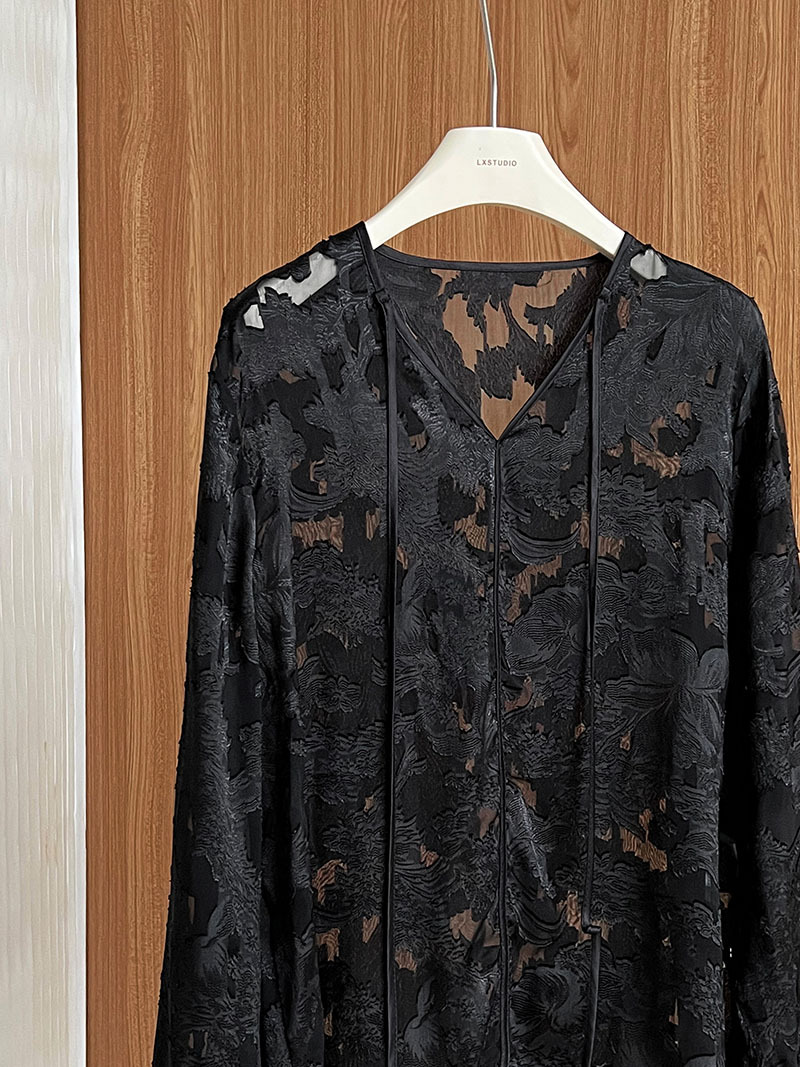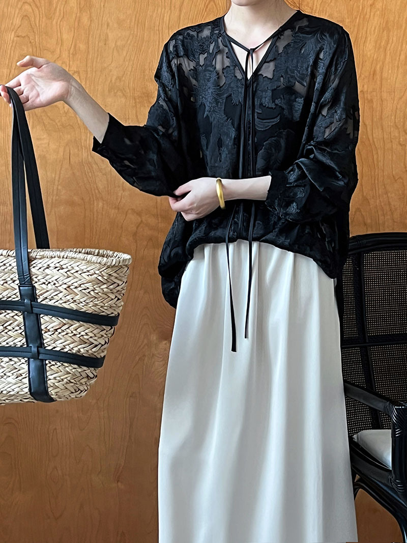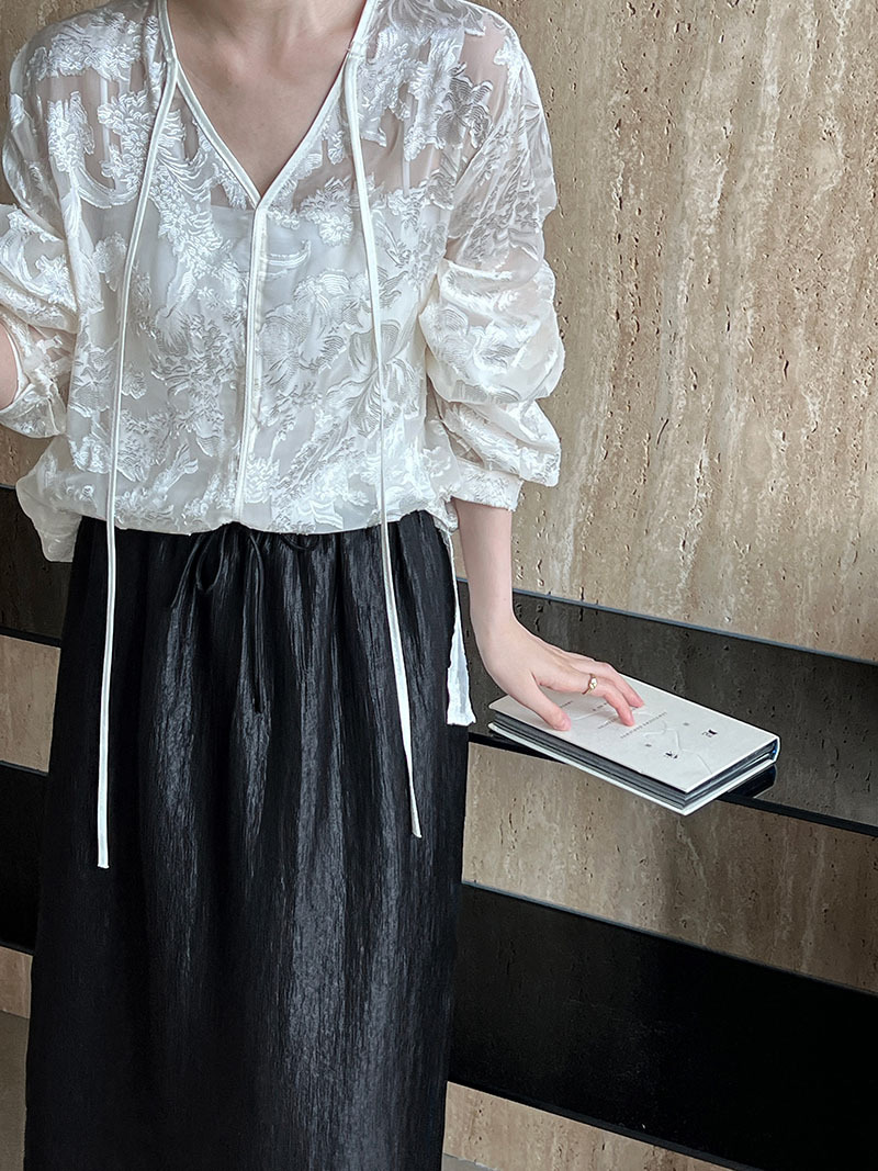 【トップス】春夏秋 透かし雕り Vネック 長袖 日焼け防止 シャツ【SNシリーズ】