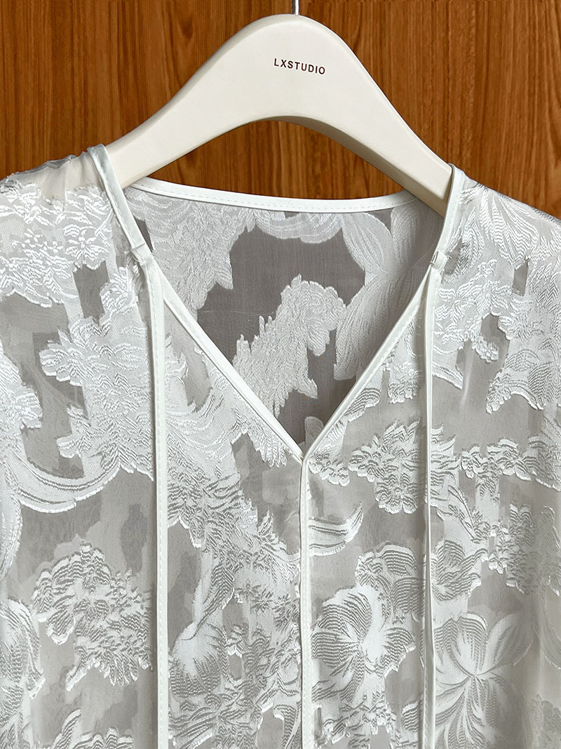 【商品名】【トップス】 透かし雕り Vネック 長袖 日焼け防止 シャツ