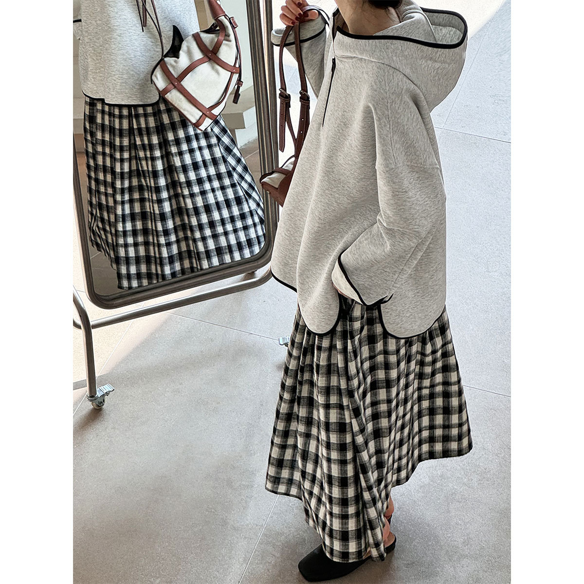 【60%OFF⭐️先行スタート!】【ワンピース】韓国風 チェック柄 中綿入り ノースリーブワンピース 花びらシルエット レディース 秋冬新作【JZシリーズ】
