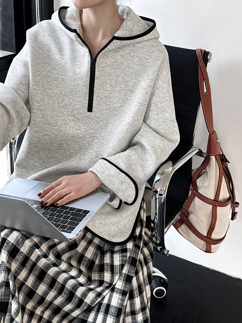 【トップス】ジップデザイン 春 秋 冬 フード付き パーカー 【FCシリーズ】