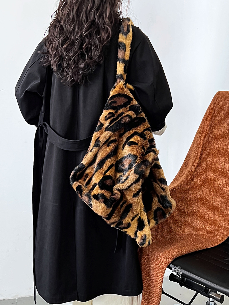 【トップス】レトロ 豹柄 猫 ゆったり ラウンドネック ニットセーター【FCシリーズ】