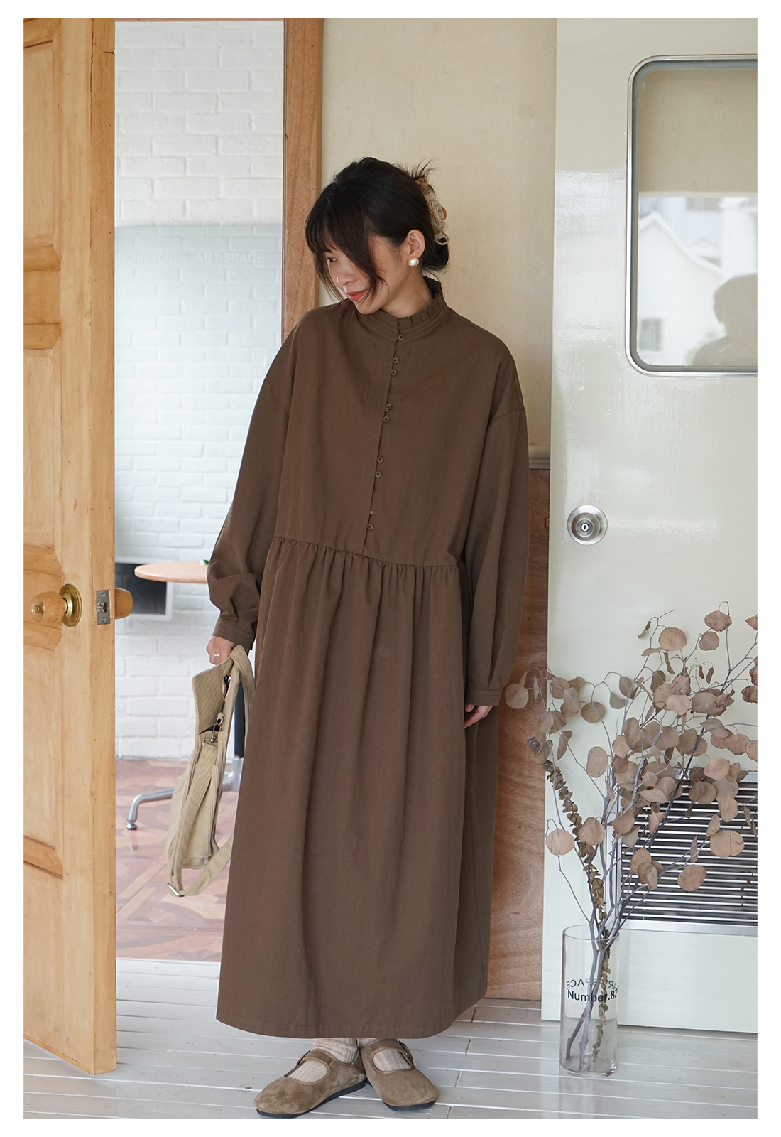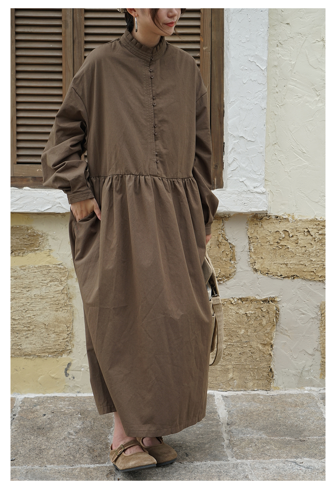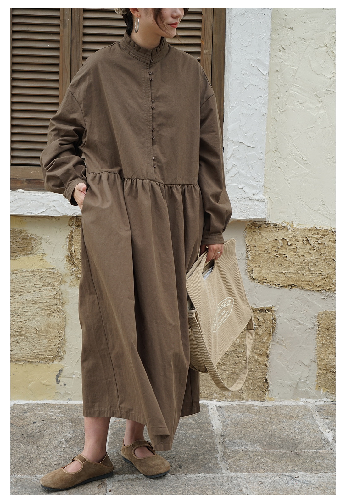 【商品名】【ワンピース】レトロ ゆったり 合わせやすい 長袖ワンピース