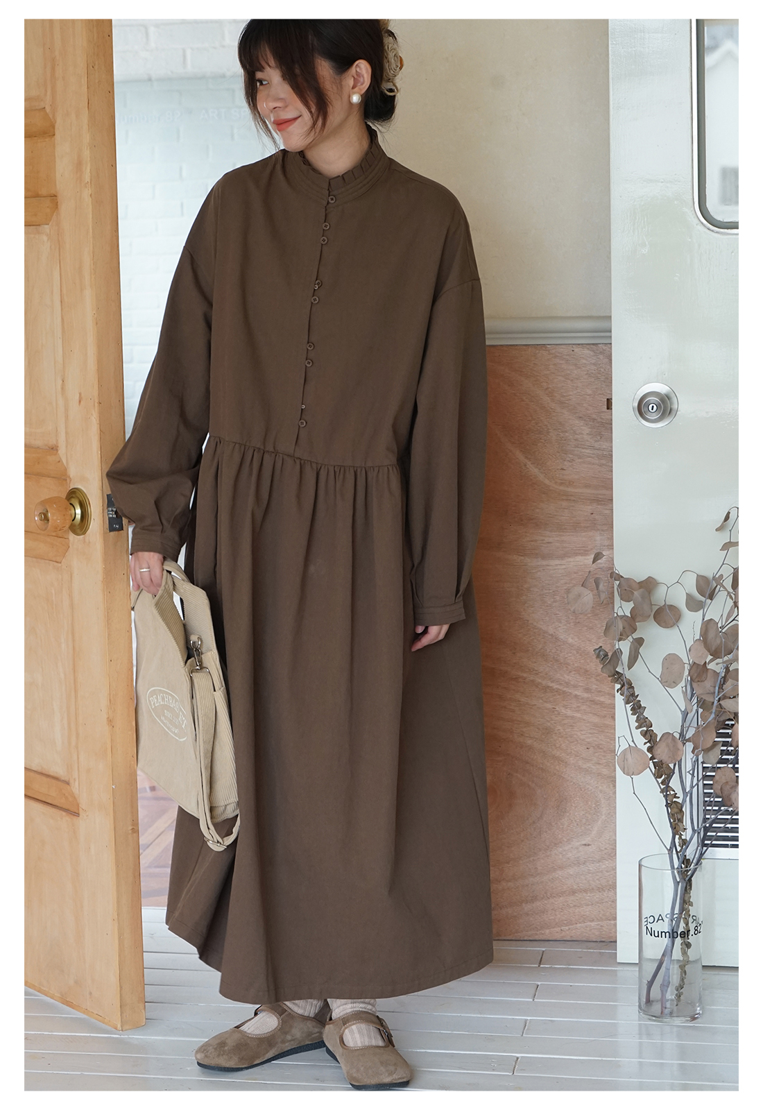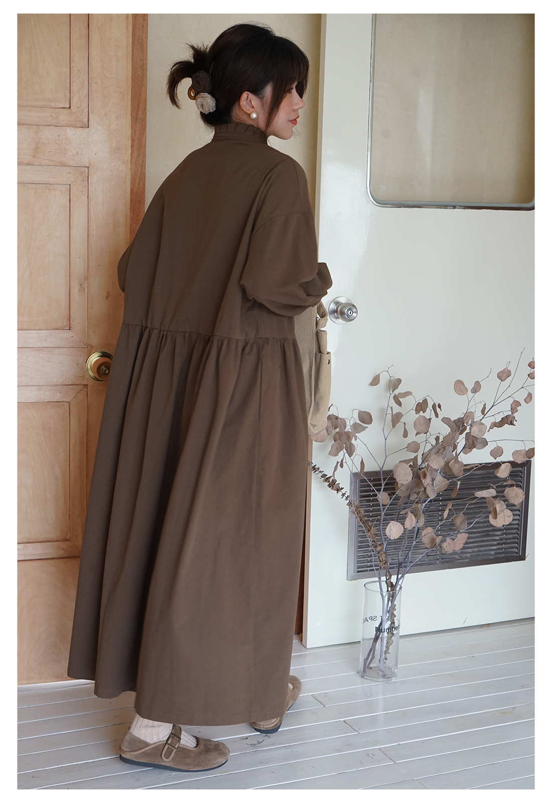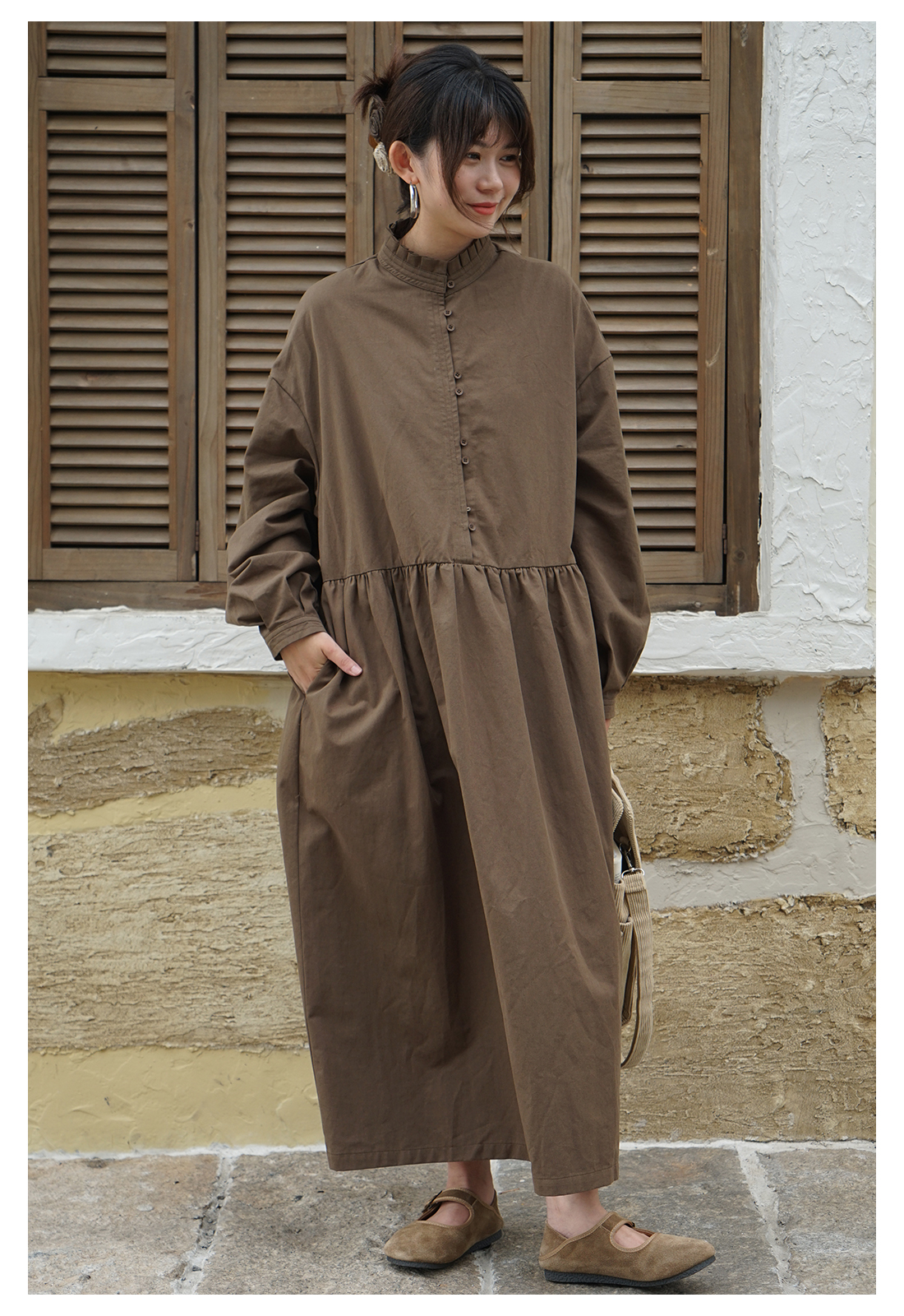 【商品名】【ワンピース】レトロ ゆったり 合わせやすい 長袖ワンピース