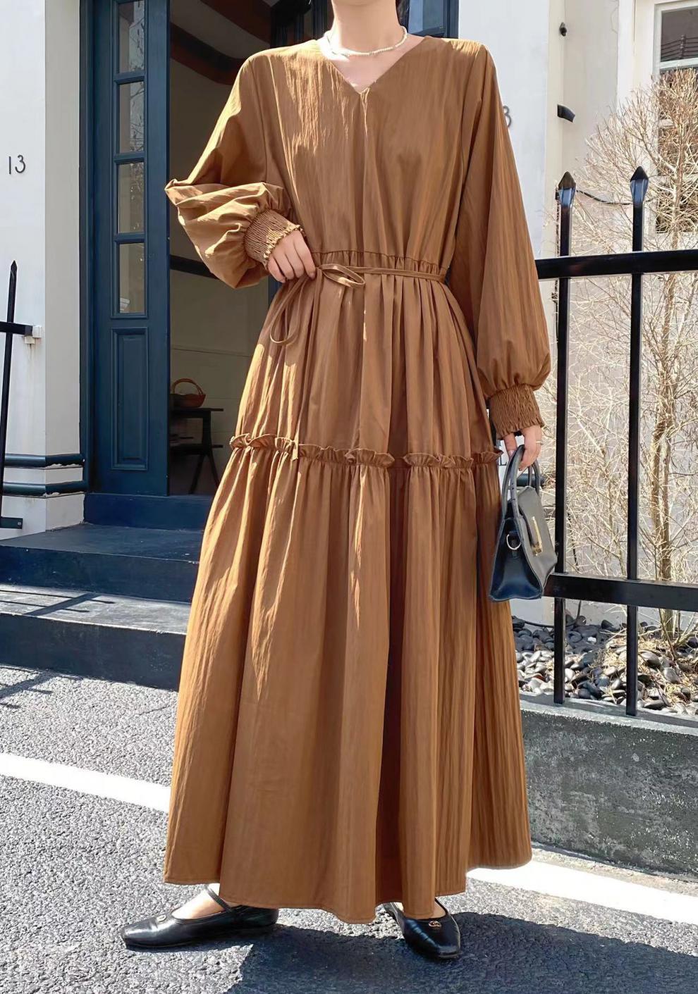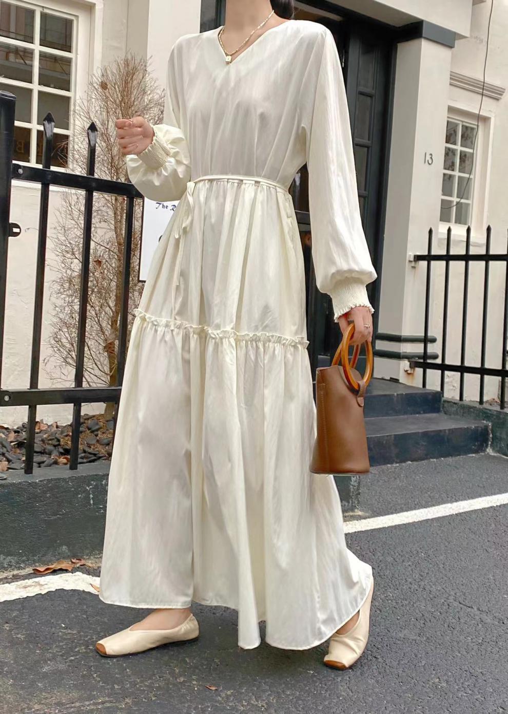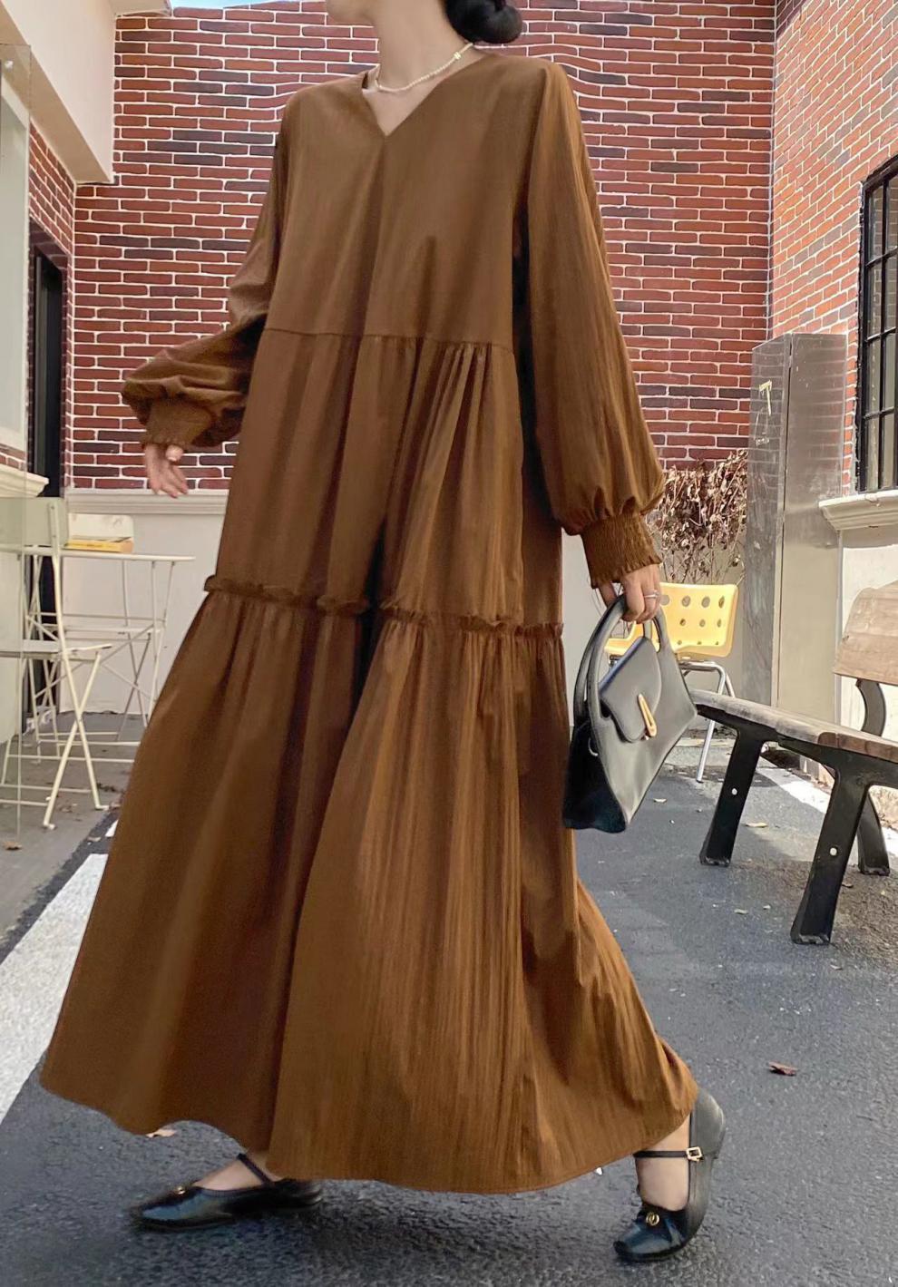 【商品名】【ワンピース】秋 プラスサイズ ゆったり 着痩せ 長袖ワンピース