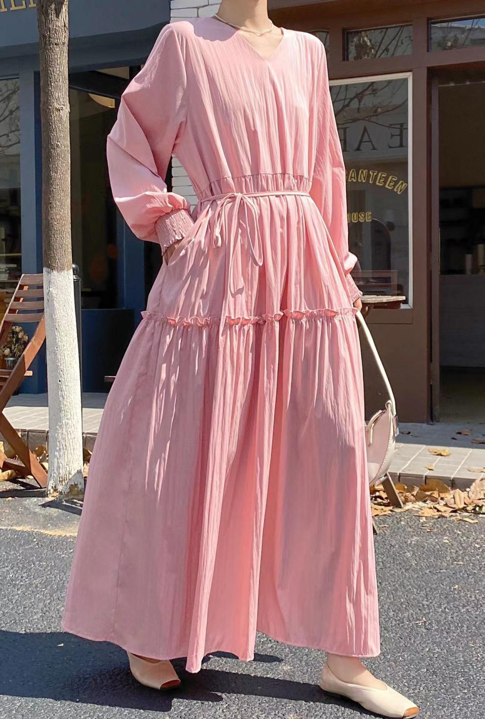 【ワンピース】春秋夏 プラスサイズ ゆったり 着痩せ 長袖ワンピース