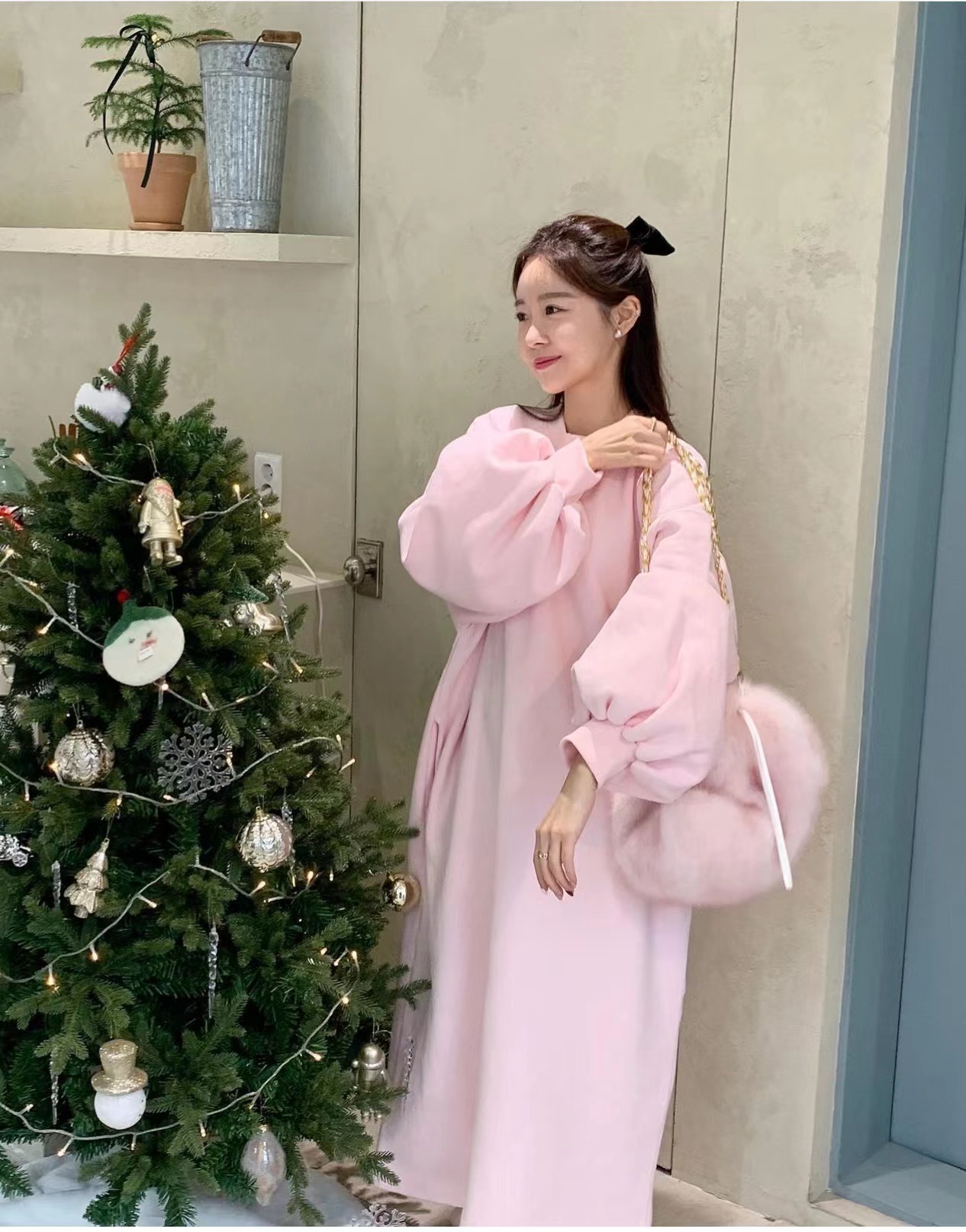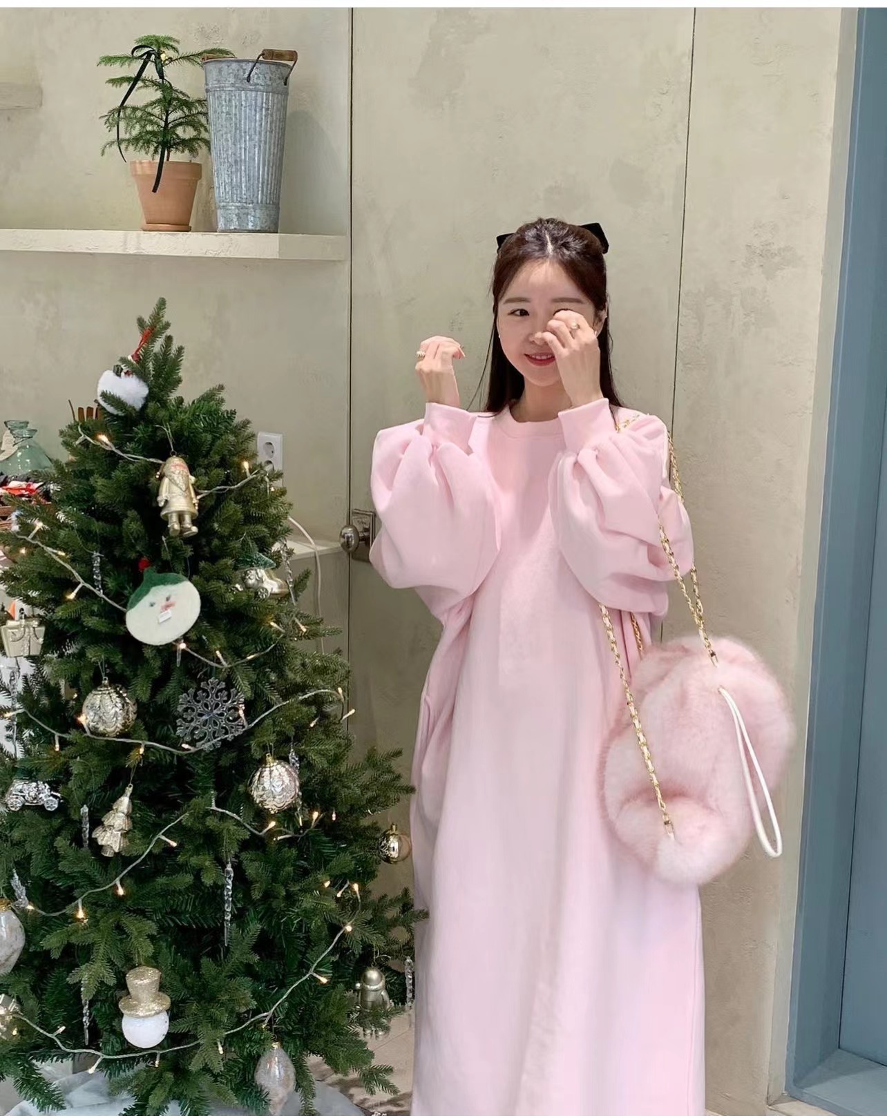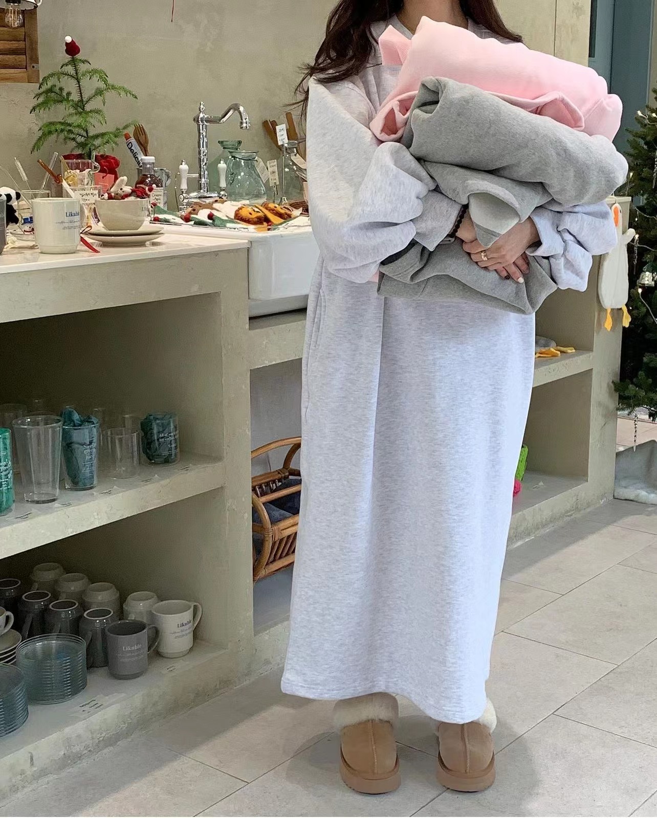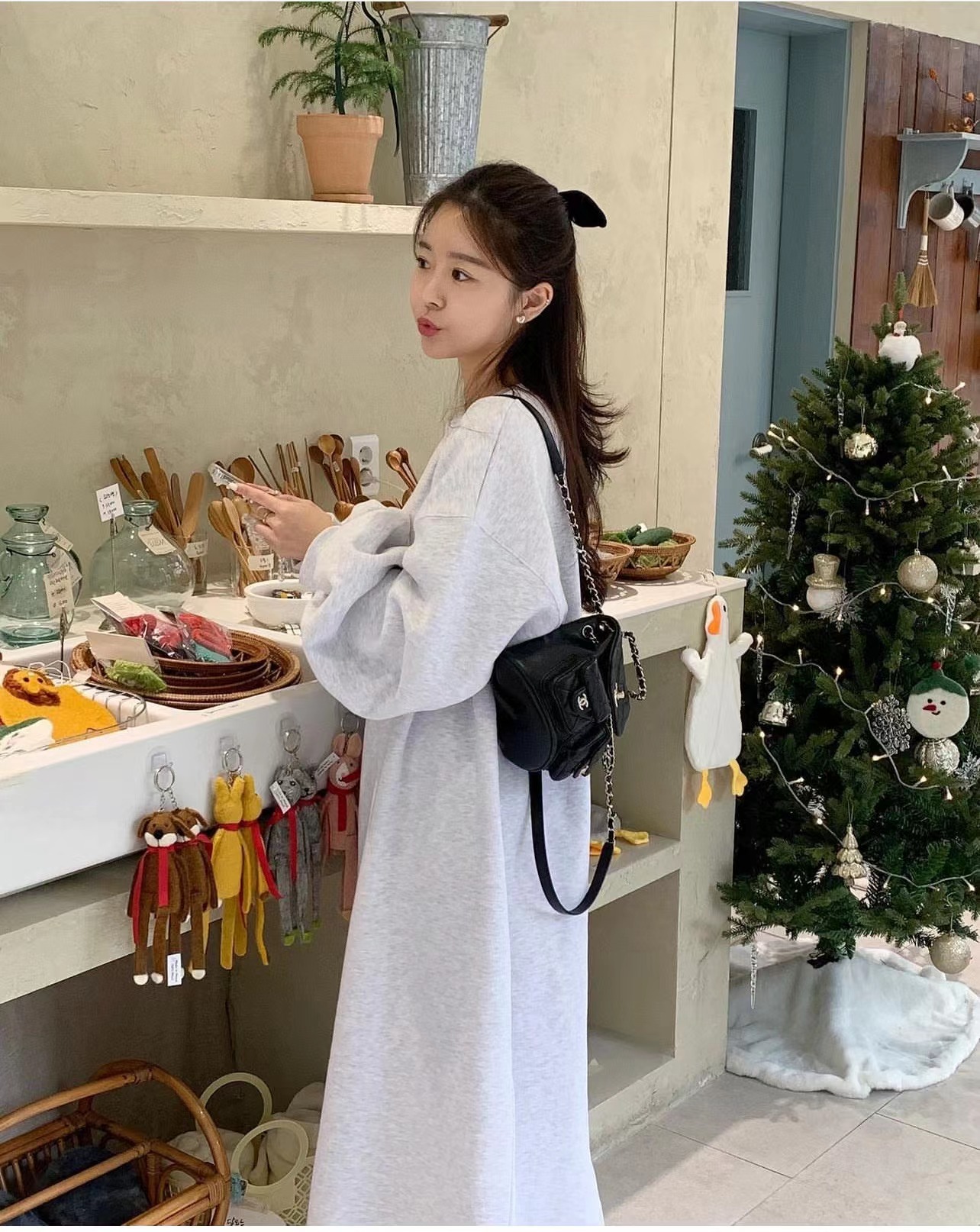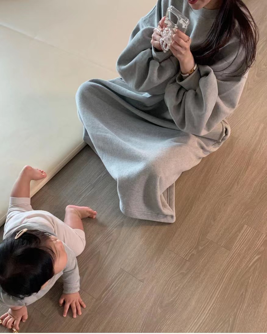 【ワンピース】春秋冬 ラウンドネック ルーズ カジュアル 裏起毛 長袖ワンピース