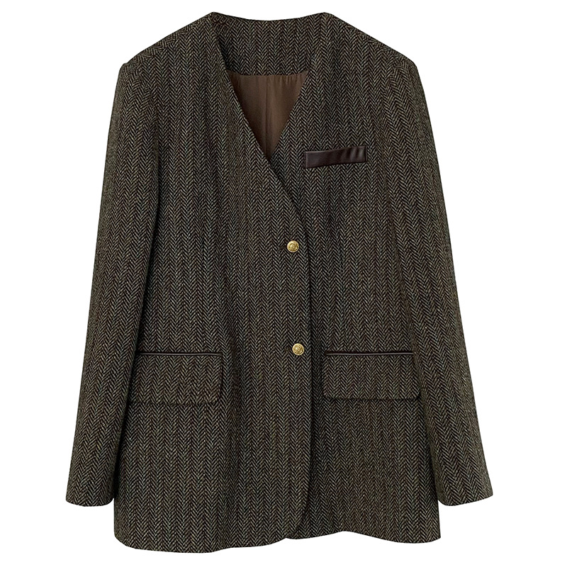 【商品名】【アウター】高級感 PU切り替えし特別なデザイン スーツジャケット