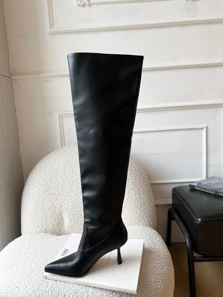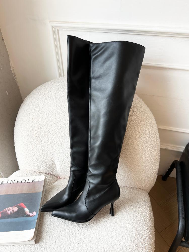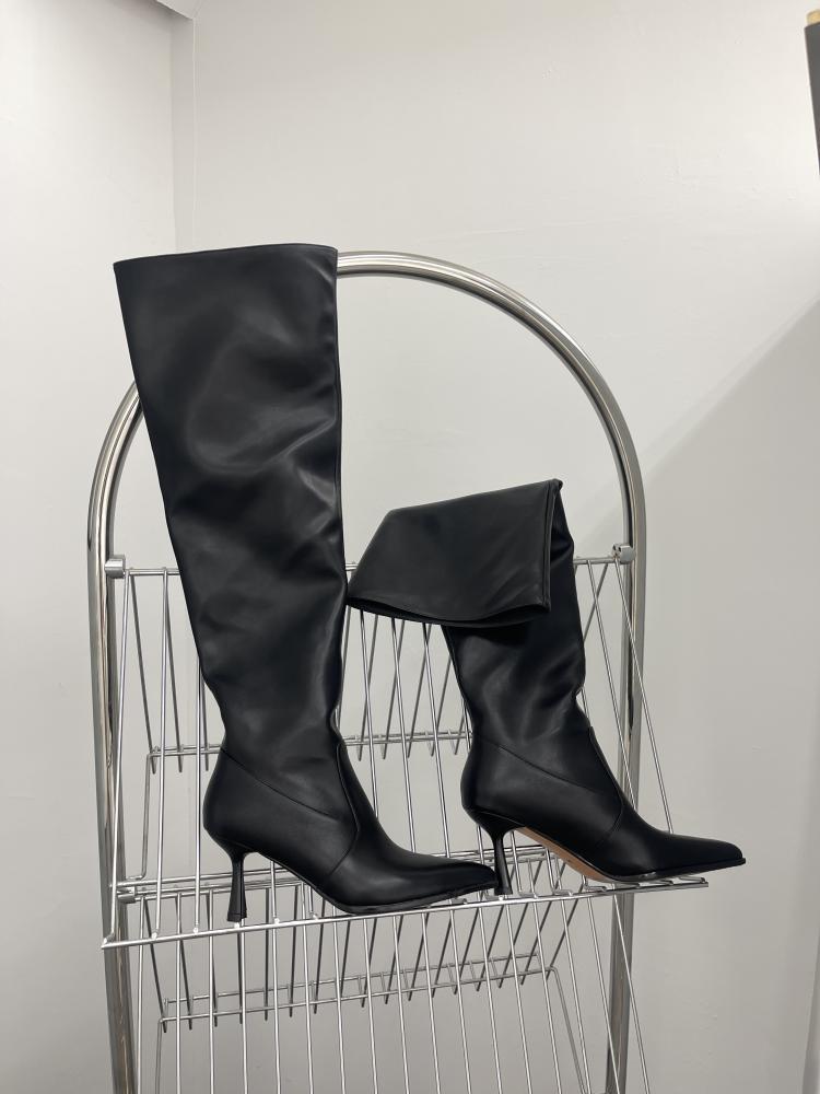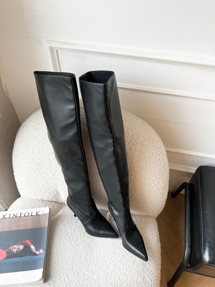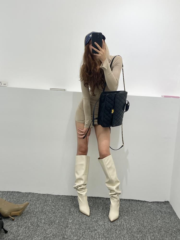 【商品名】【24AW】【シューズ】脚長効果 着痩せ ニーハイ ハイバレルブーツ