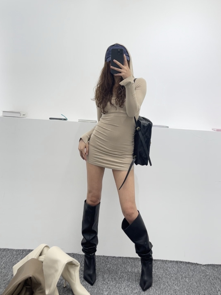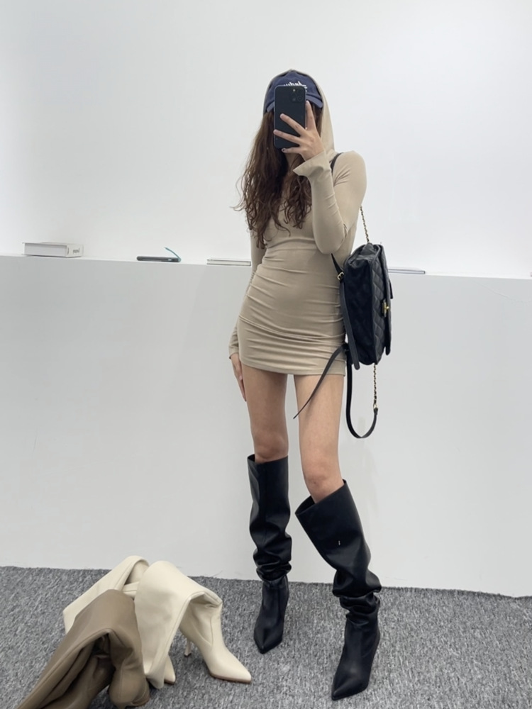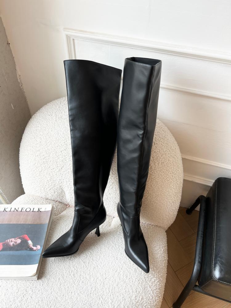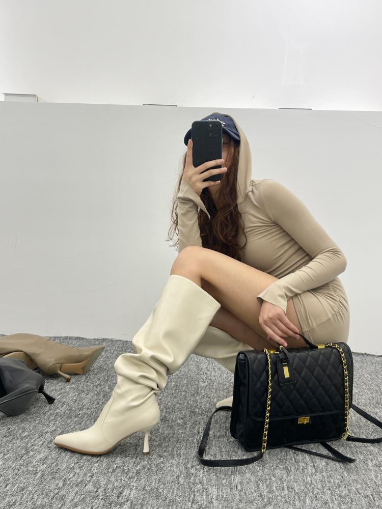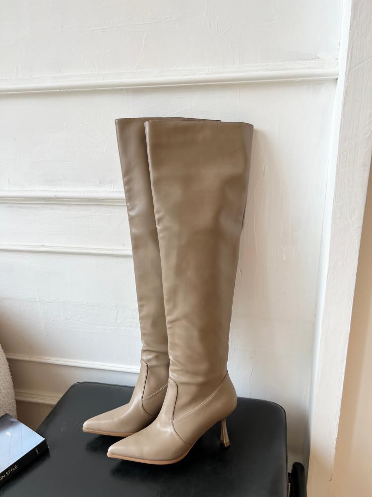 【商品名】【24AW】【シューズ】脚長効果 着痩せ ニーハイ ハイバレルブーツ