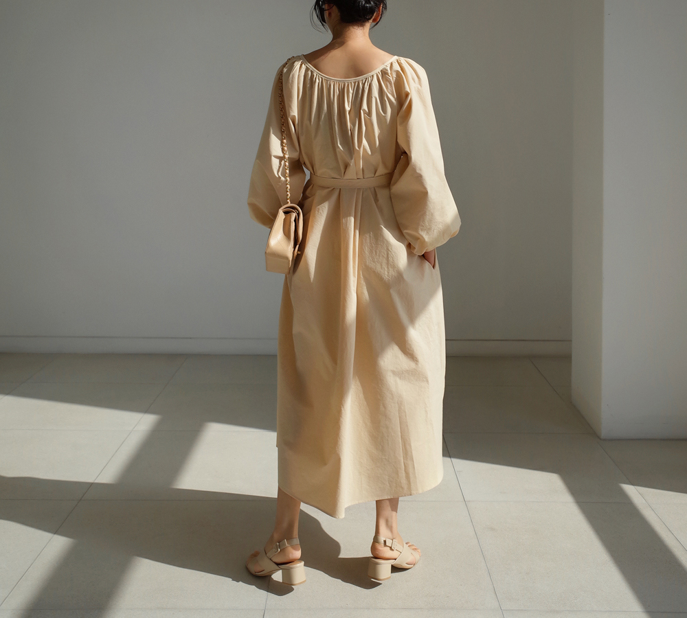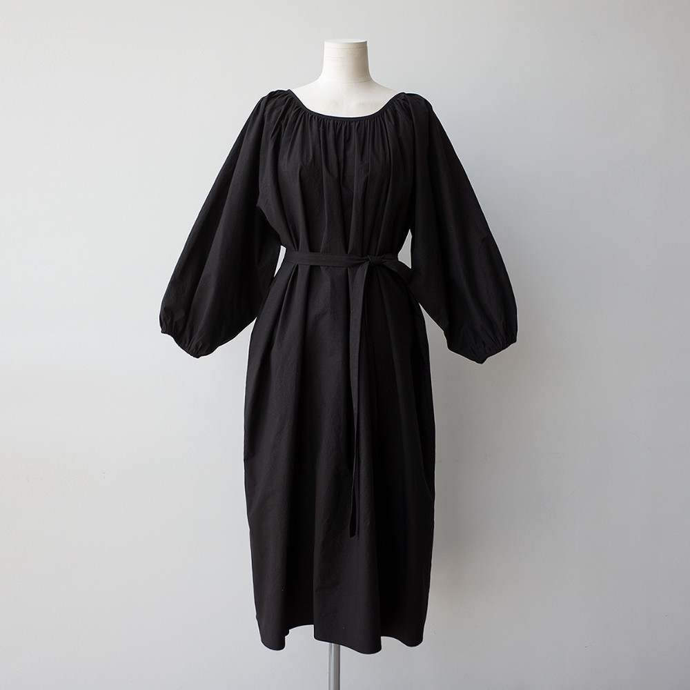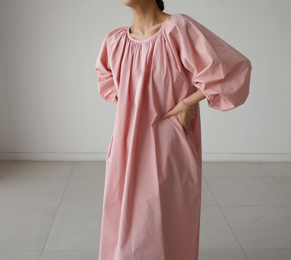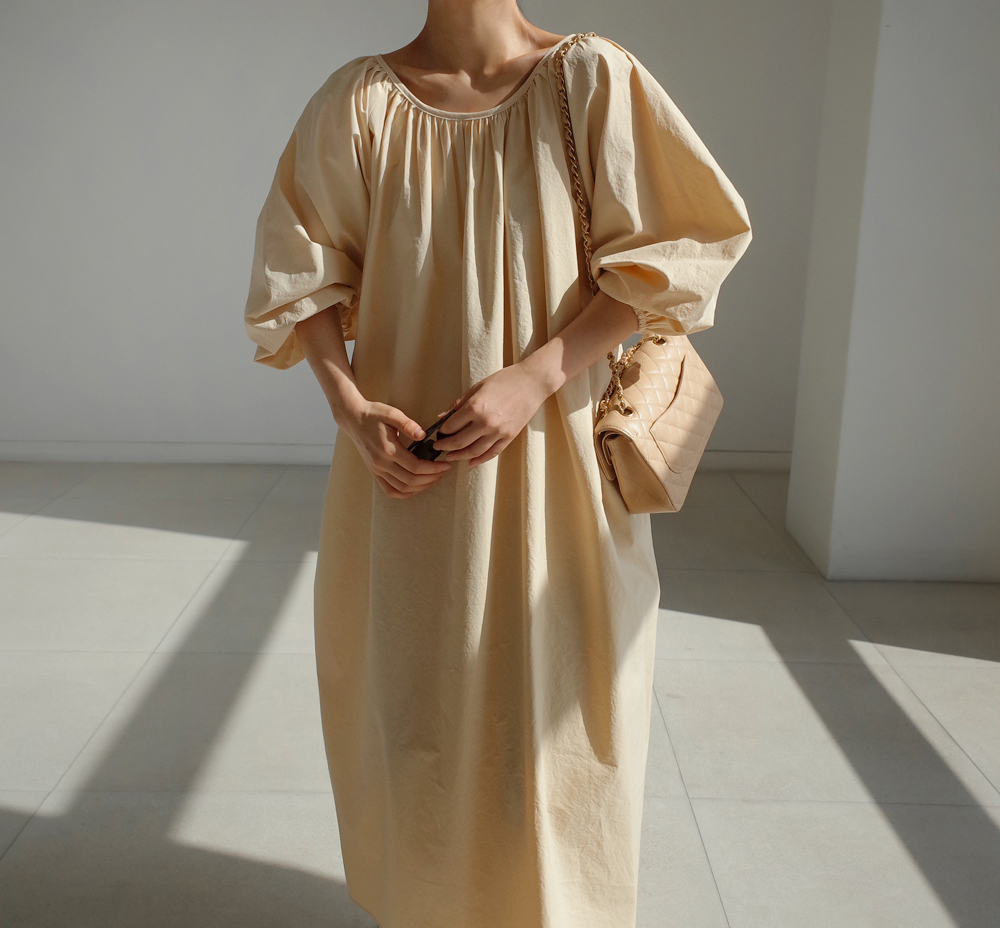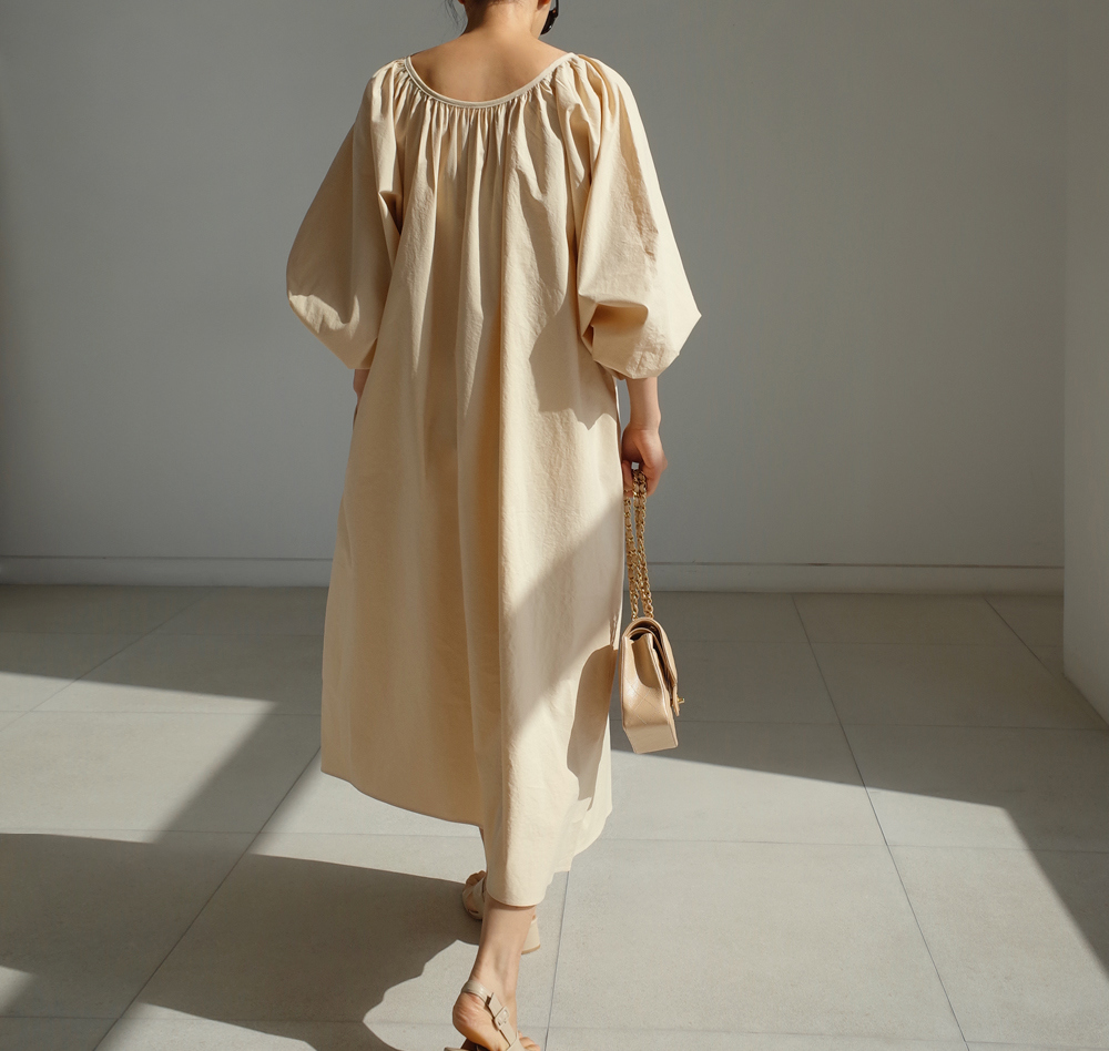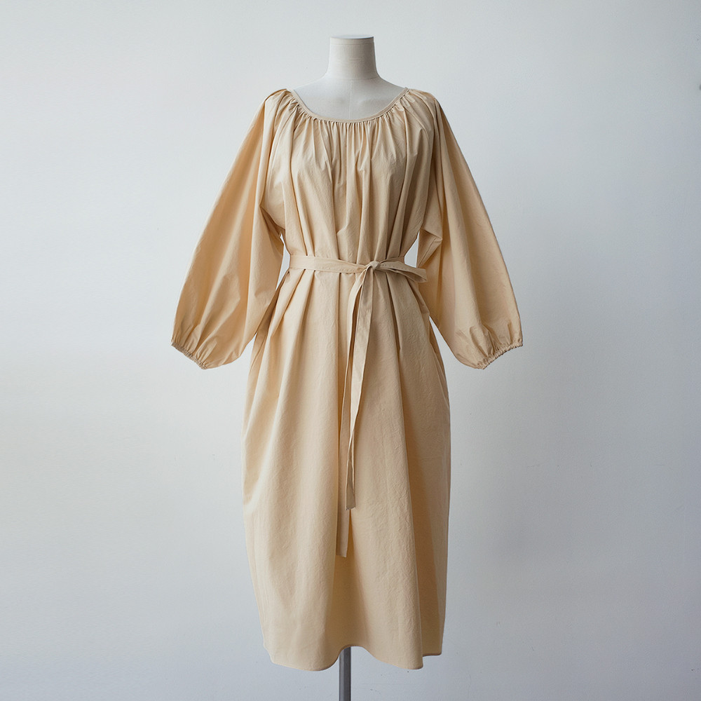 【ワンピース】春秋 ゆったり 大きいサイズ リボン ランタンスリーブ 長袖ワンピース