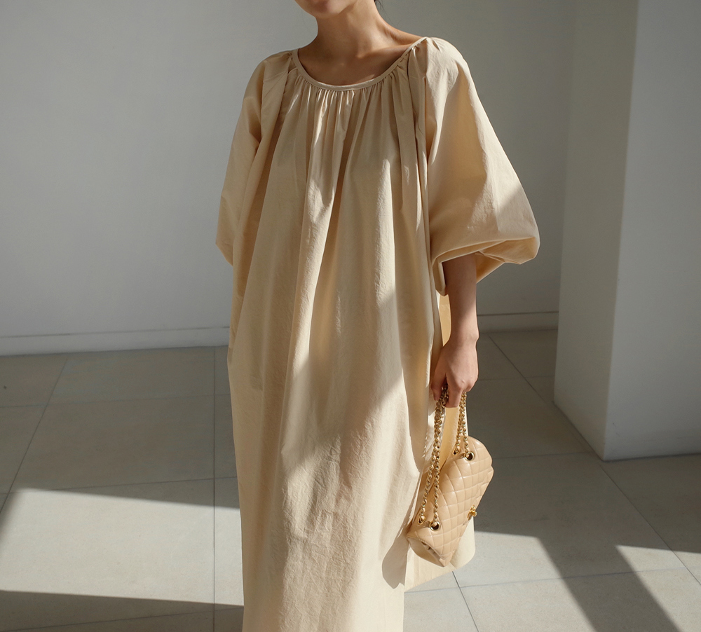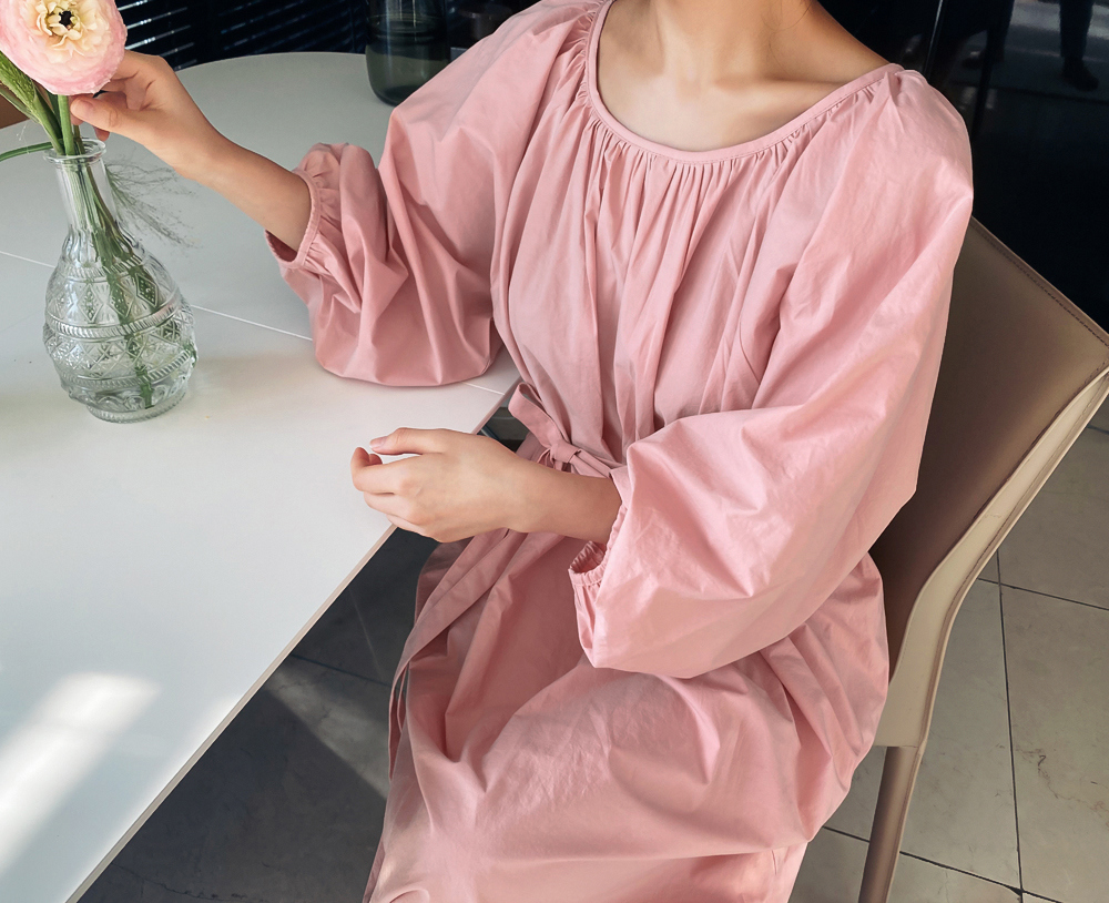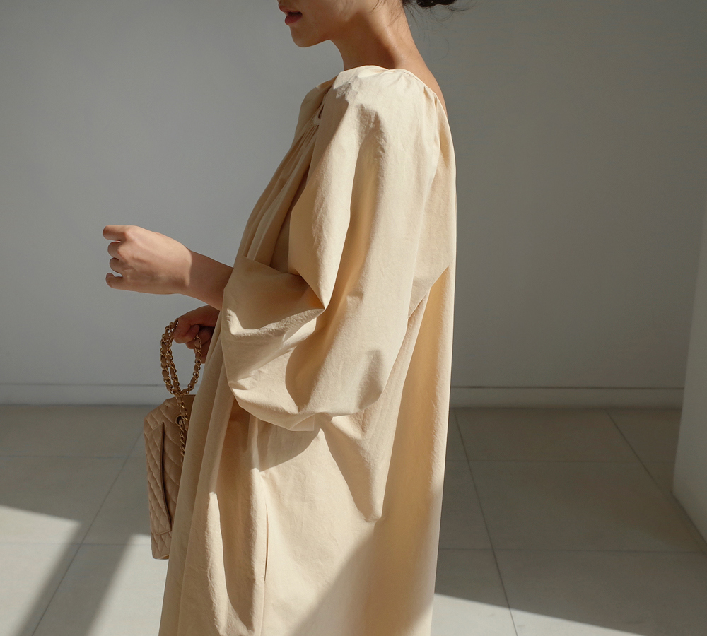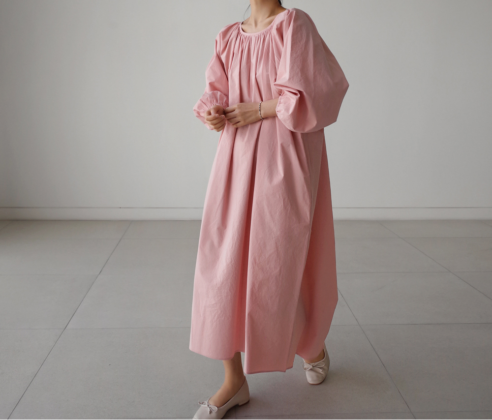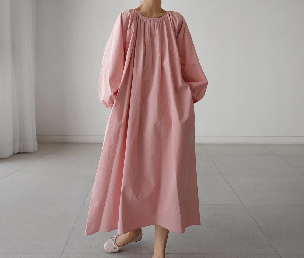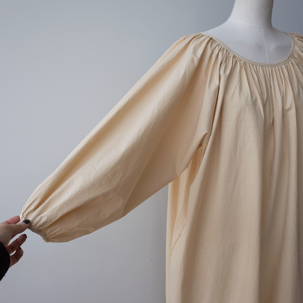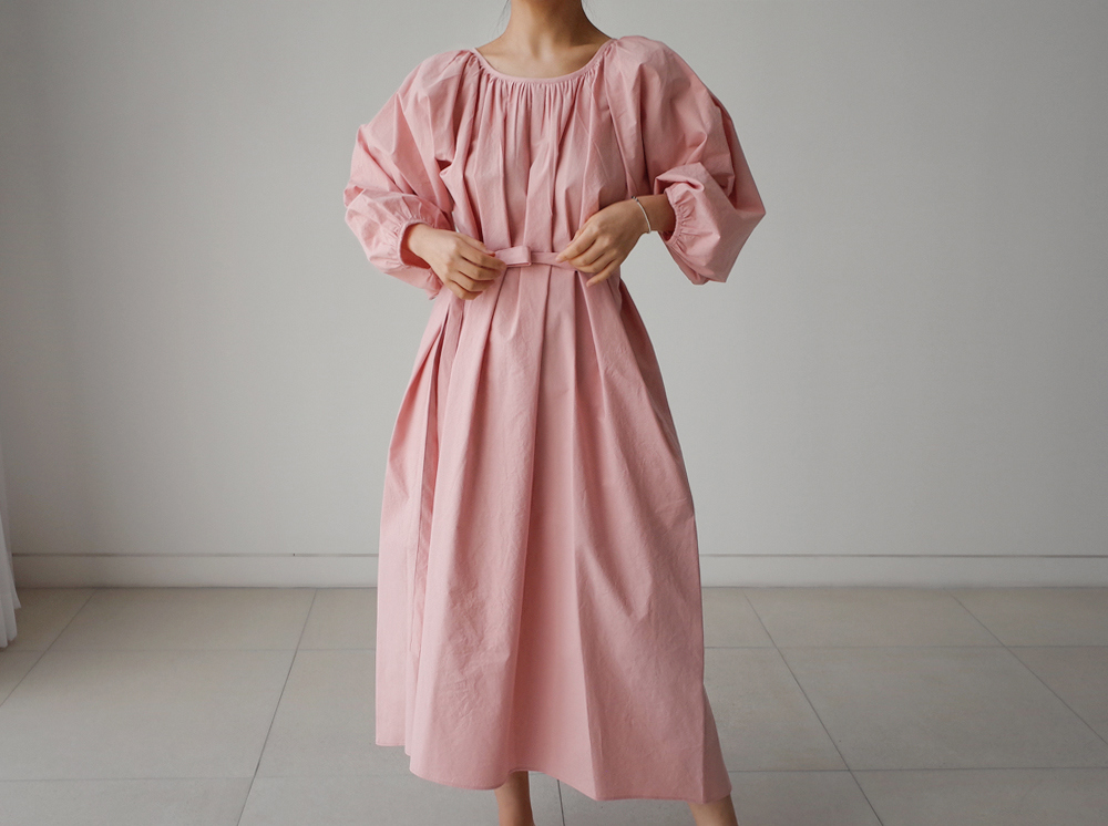 【ワンピース】春秋 ゆったり 大きいサイズ リボン ランタンスリーブ 長袖ワンピース