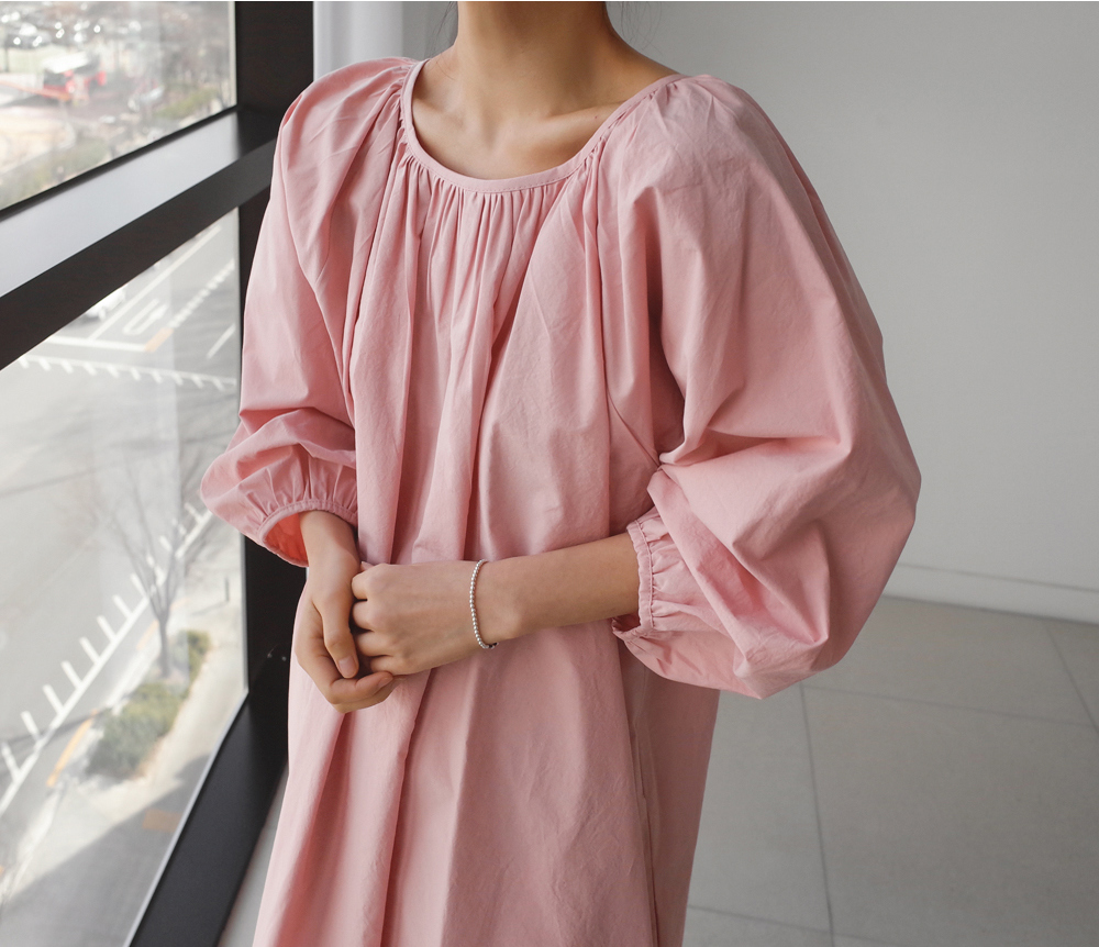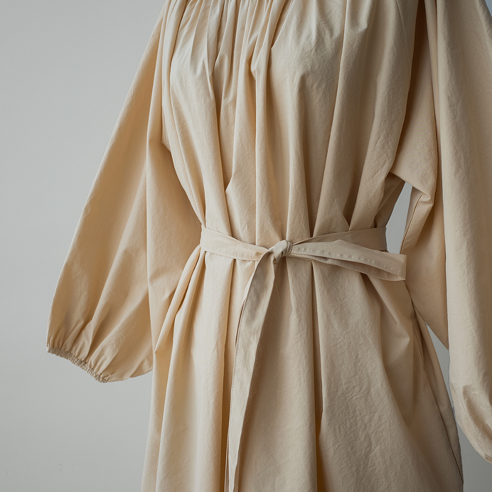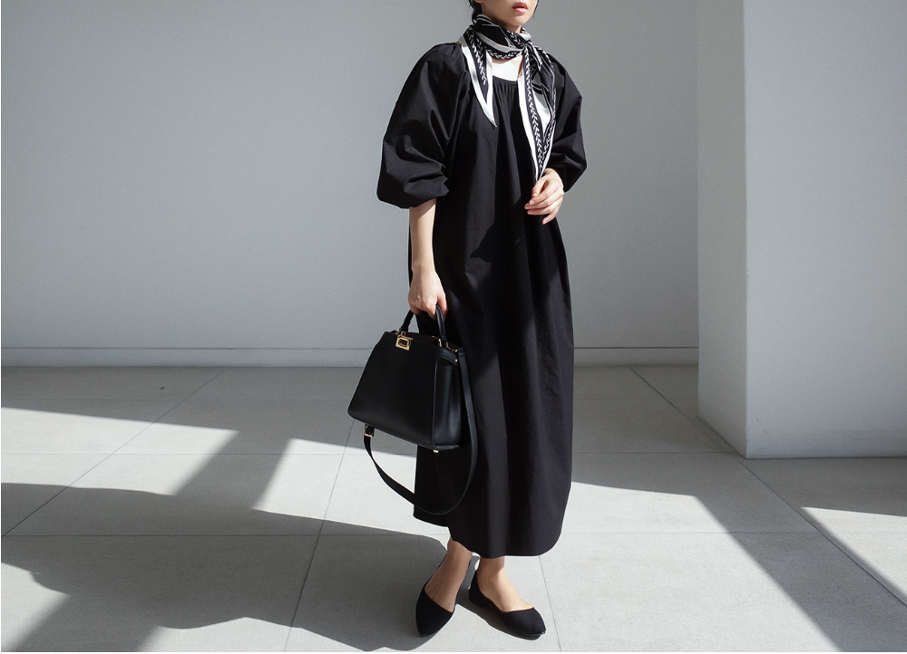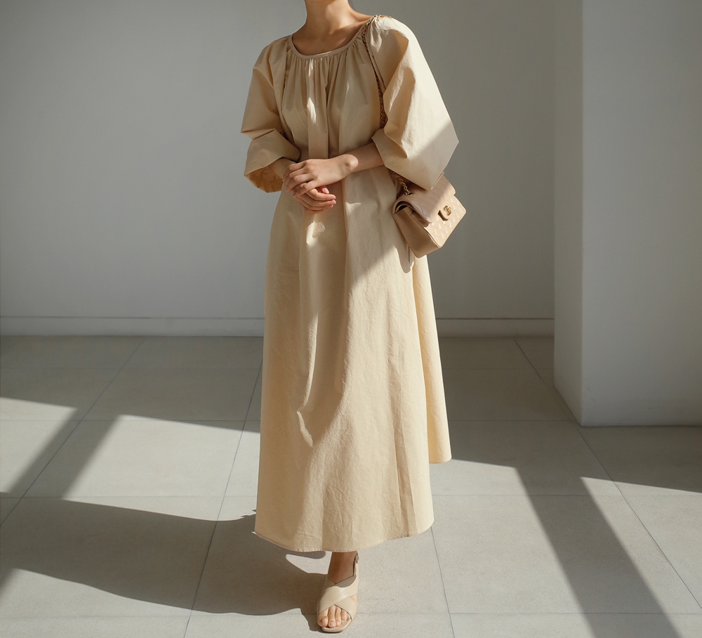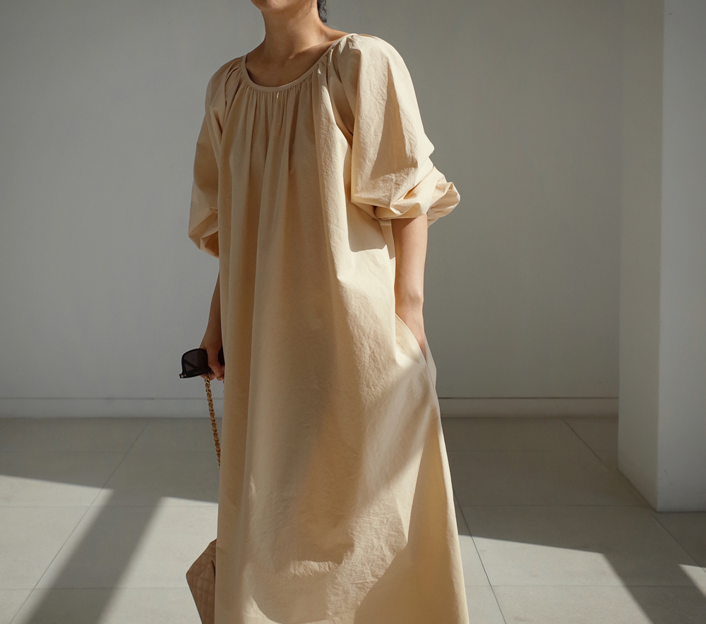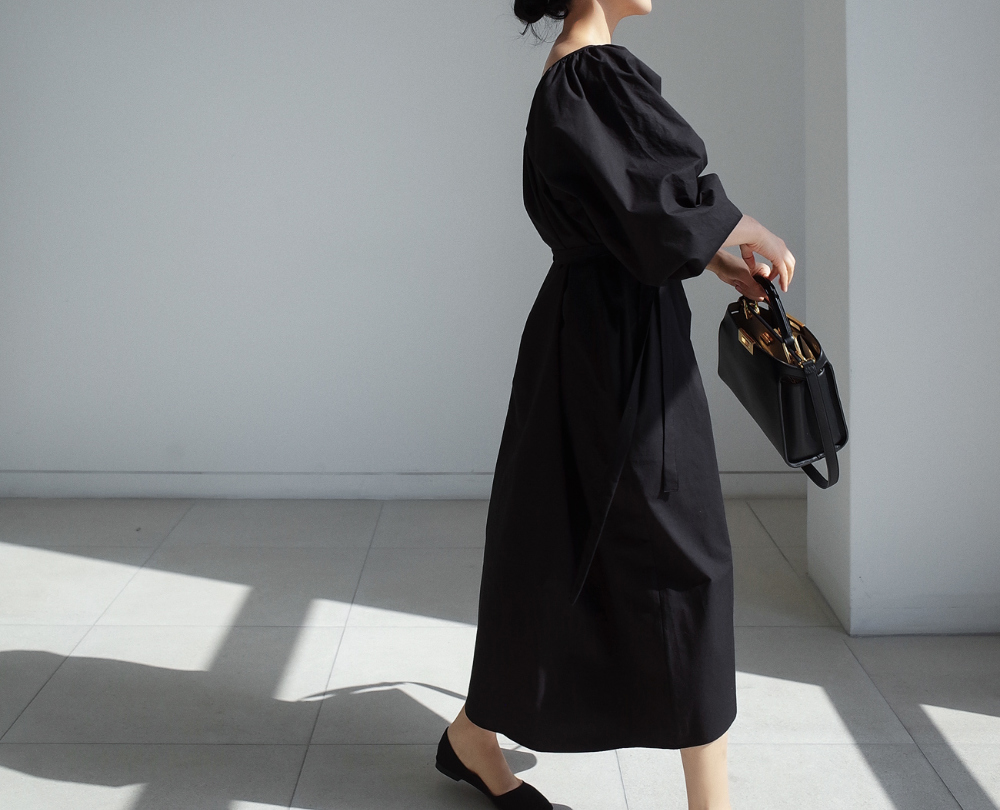 【ワンピース】春秋 ゆったり 大きいサイズ リボン ランタンスリーブ 長袖ワンピース