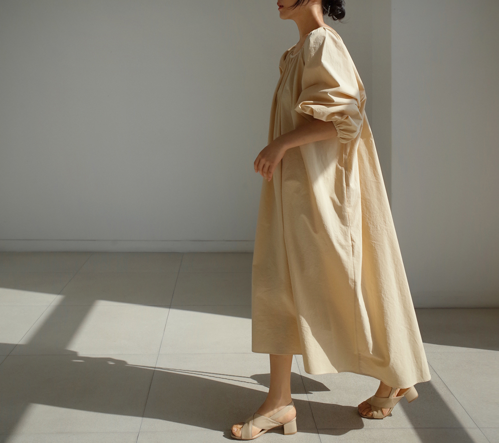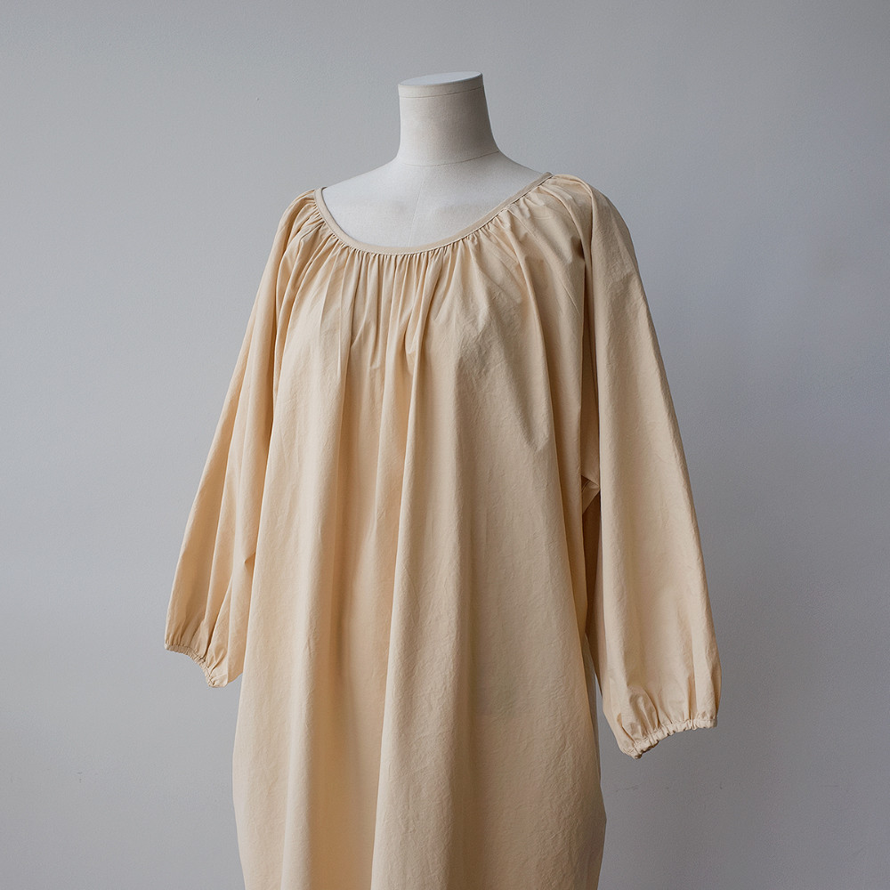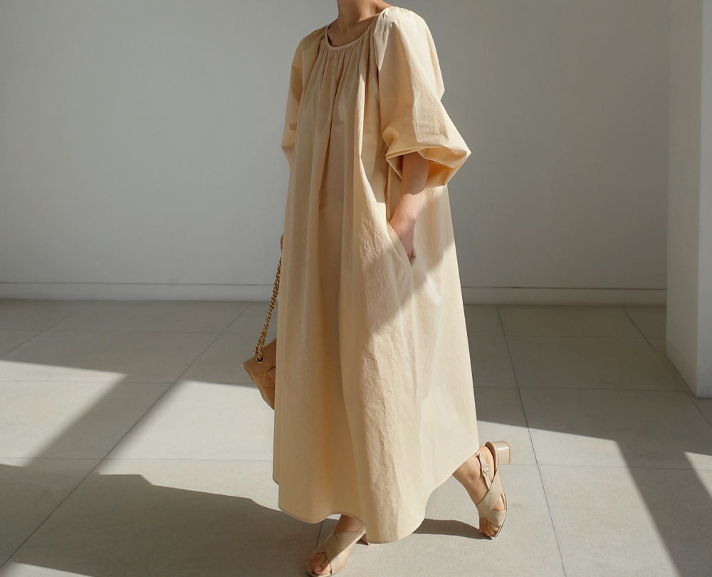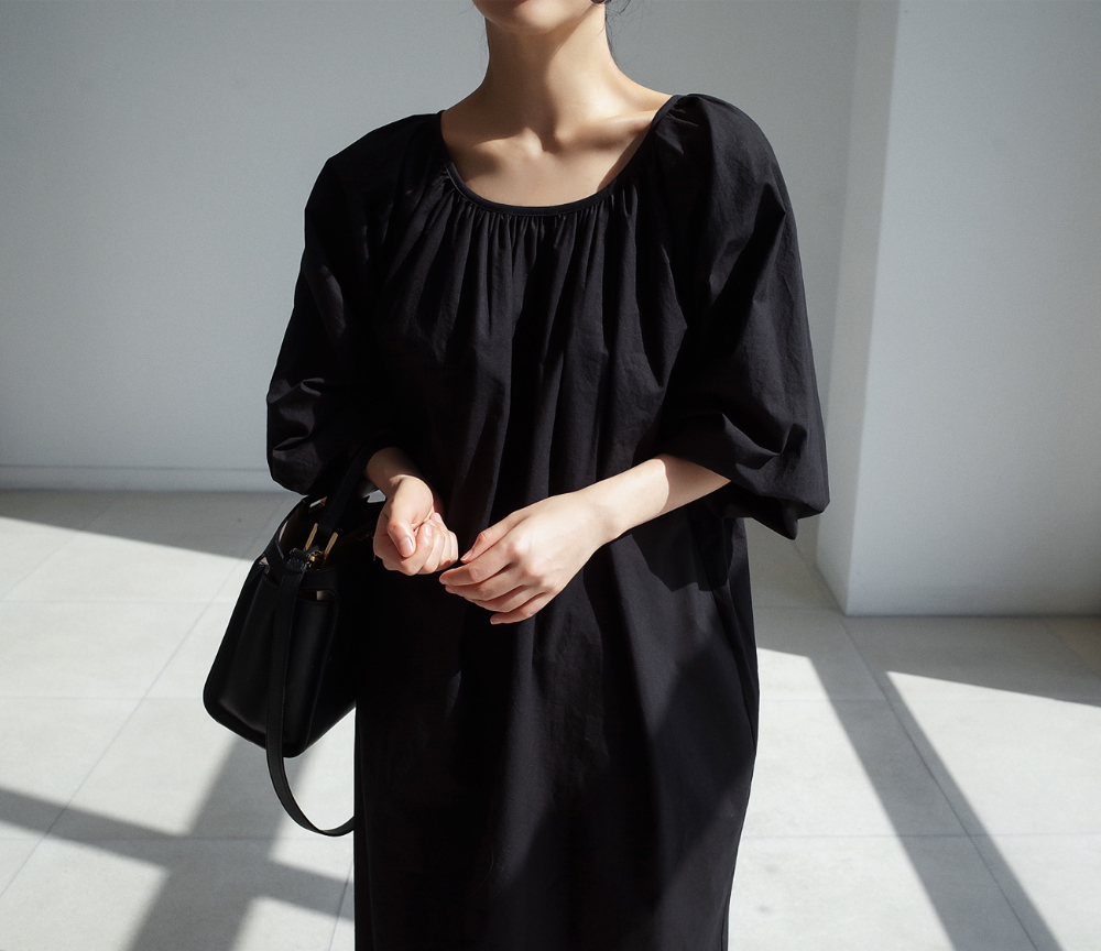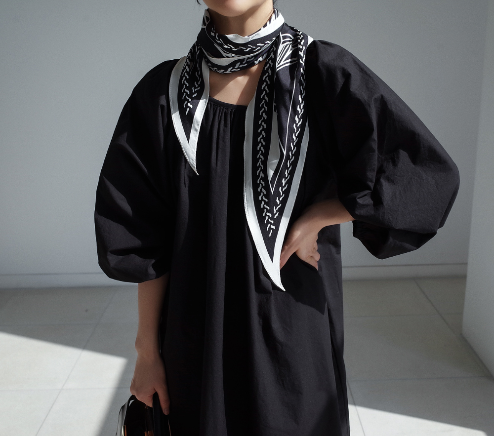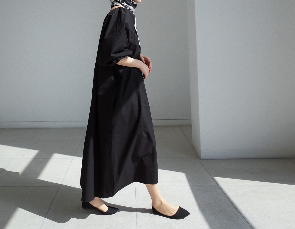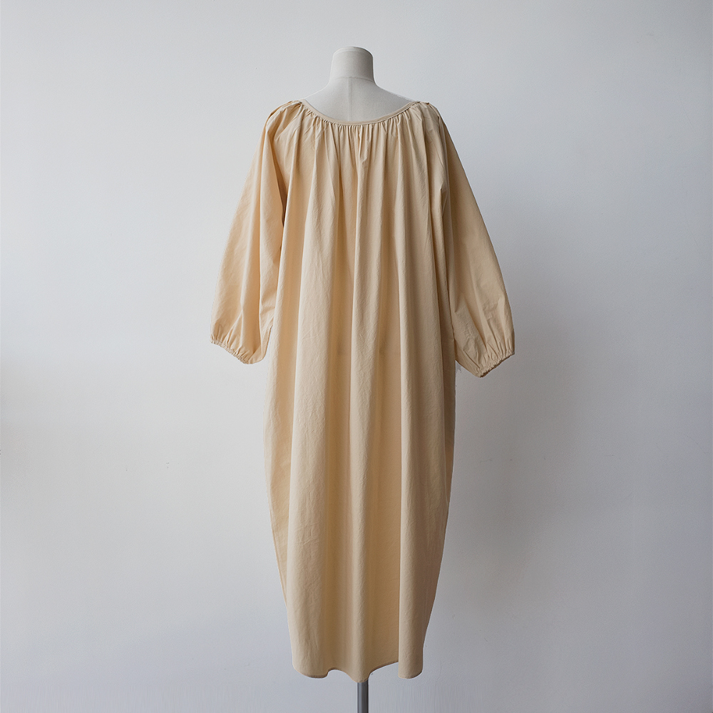 【ワンピース】春秋 ゆったり 大きいサイズ リボン ランタンスリーブ 長袖ワンピース