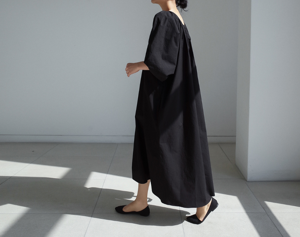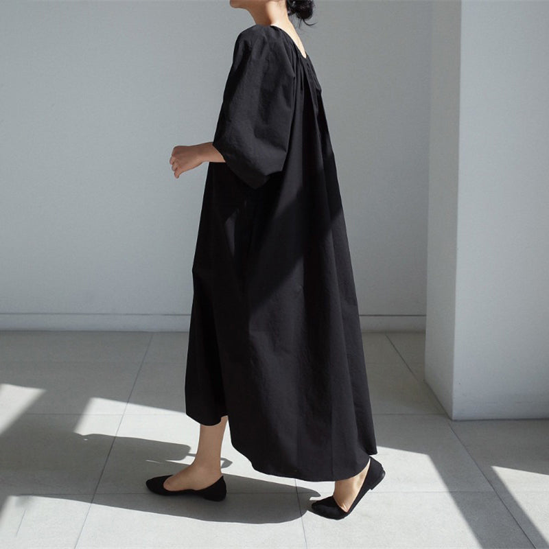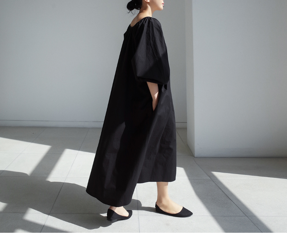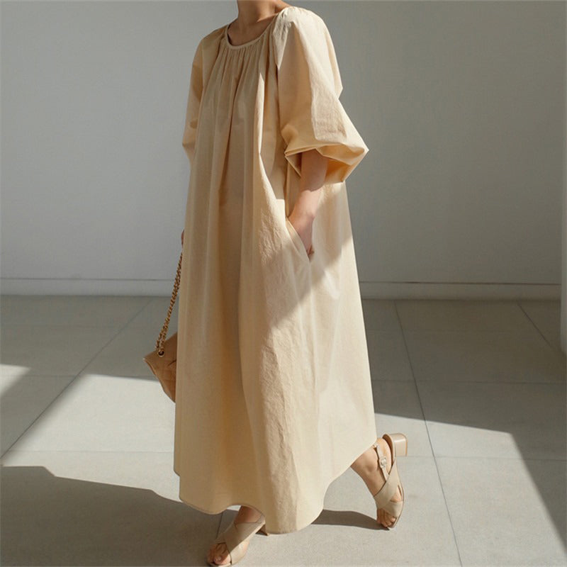 【商品名】【ワンピース】ゆったり 大きいサイズ  リボン ランタンスリーブ 長袖ワンピース
