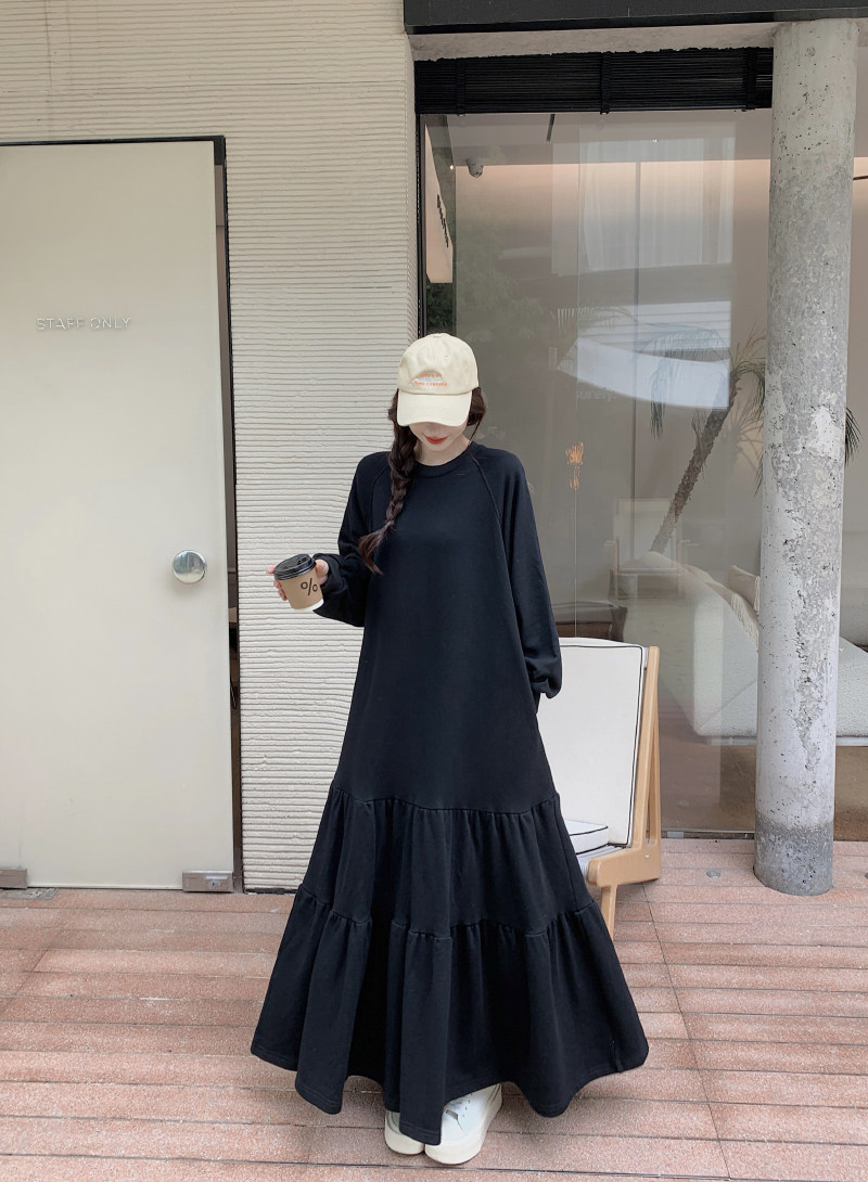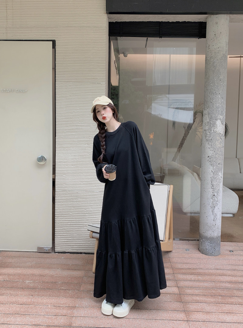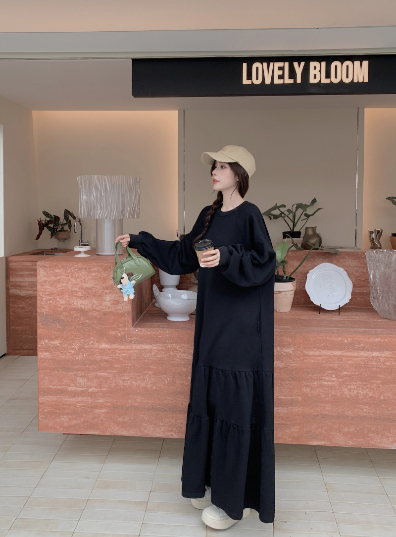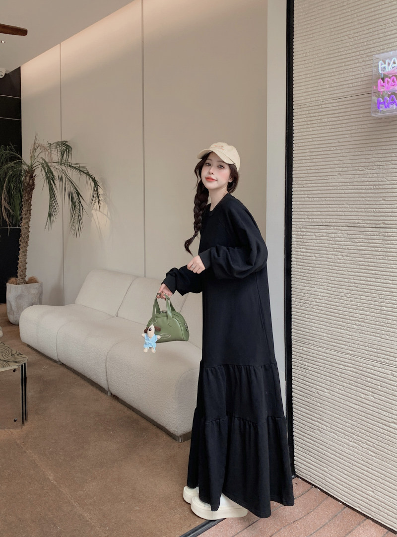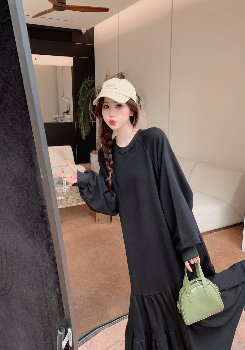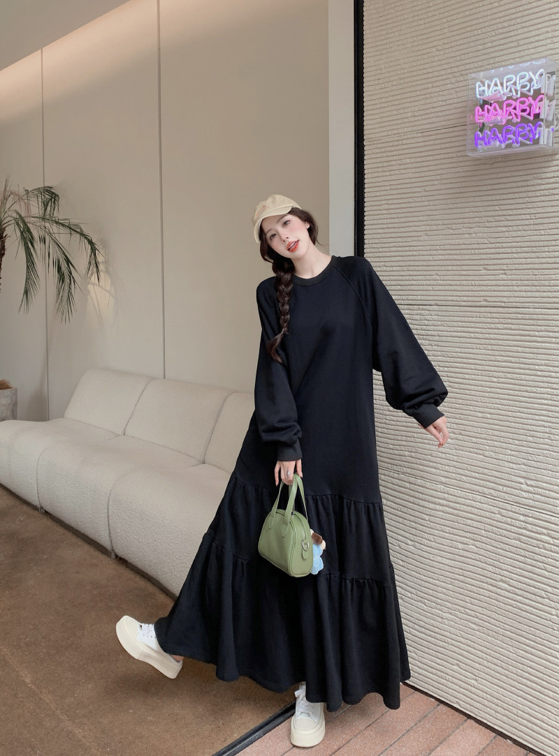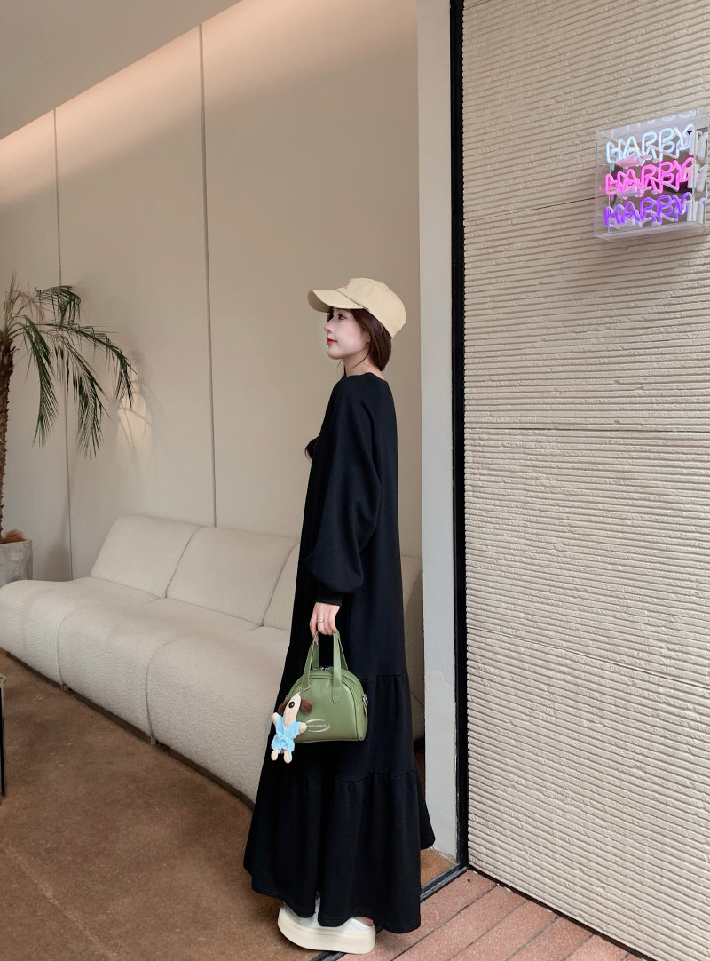 【ワンピース】春秋冬 大きいサイズ ゆったり 着痩せ 体型カバー 長袖ワンピース