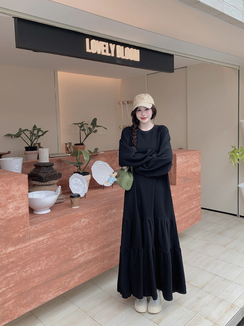【商品名】【ワンピース】大きいサイズ ゆったり 着痩せ 体型カバー 長袖ワンピース