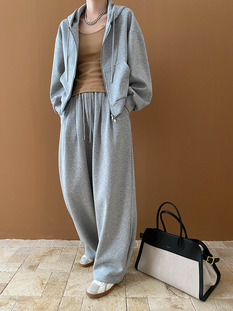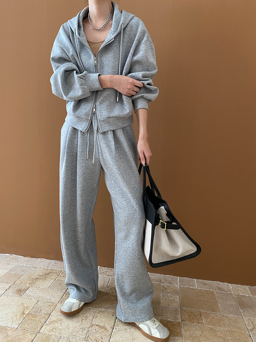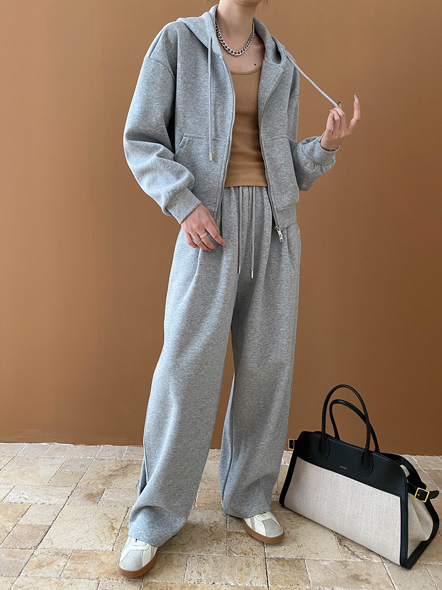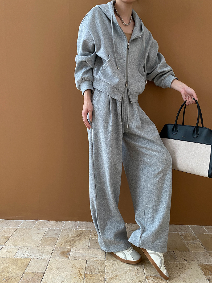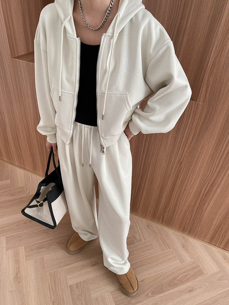 【セットアップ】【単品注文】ゆるめシンプル 裏起毛フードジャケット&パンツセット レディース【FCシリーズ】