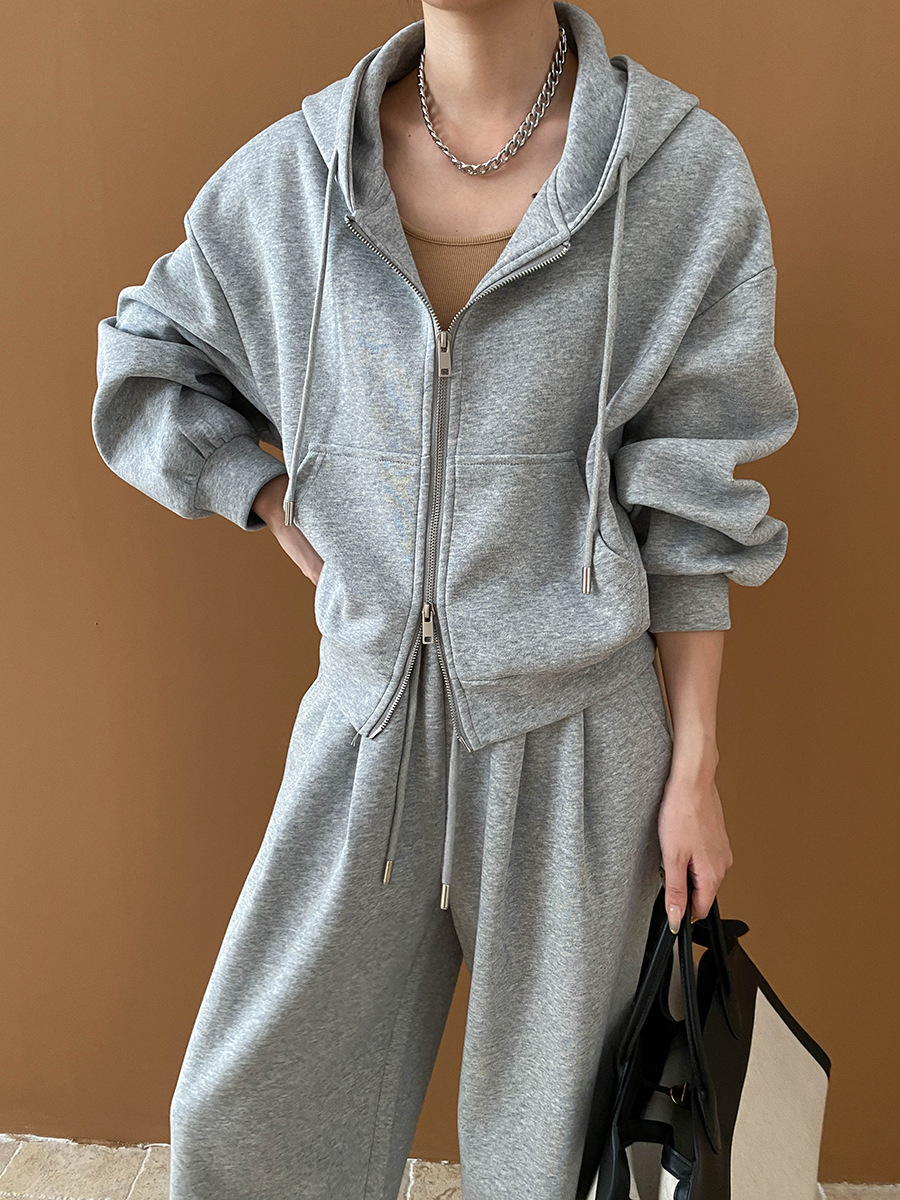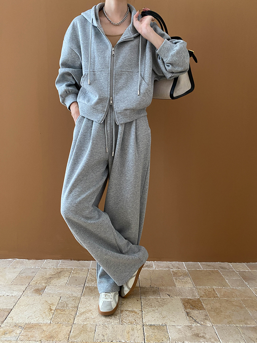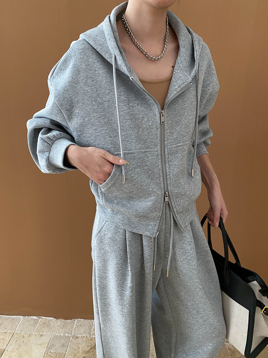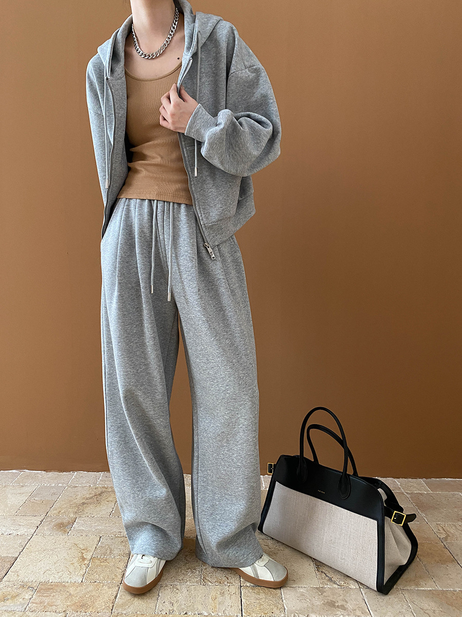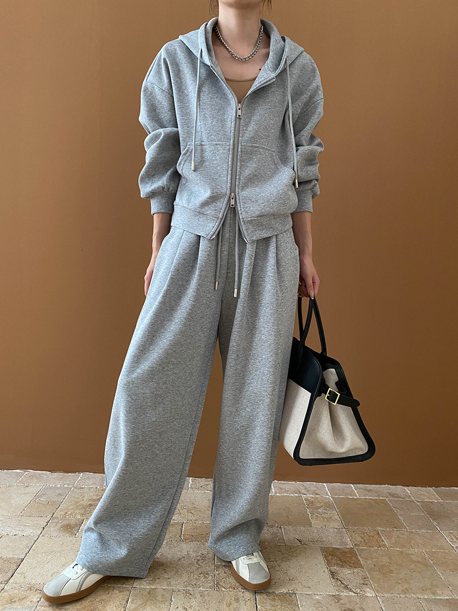 【セットアップ】【単品注文】ゆるめシンプル 裏起毛フードジャケット&パンツセット レディース【FCシリーズ】