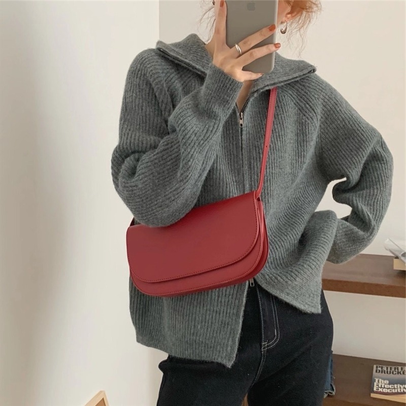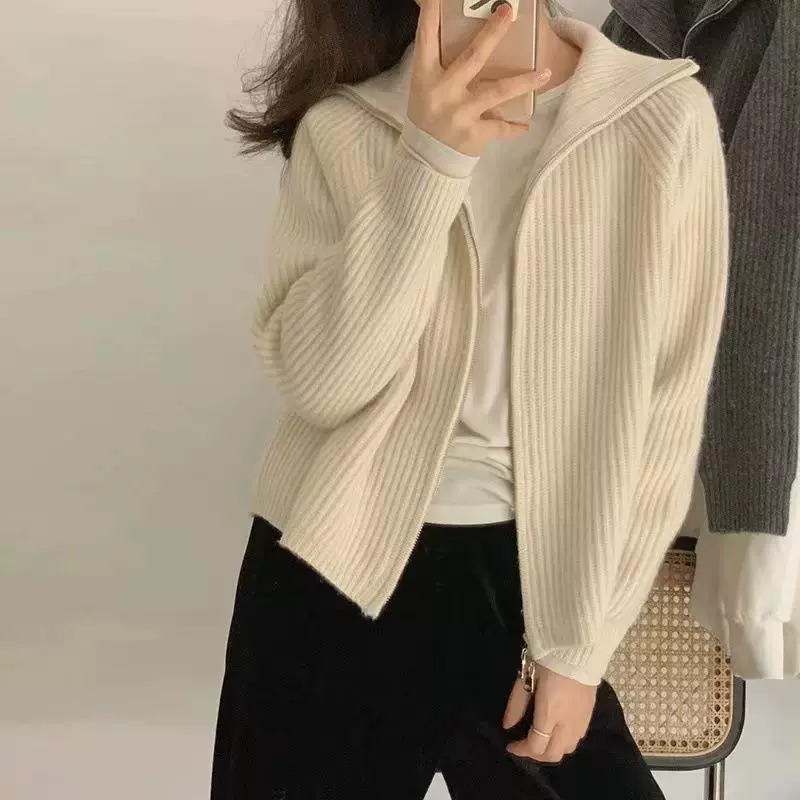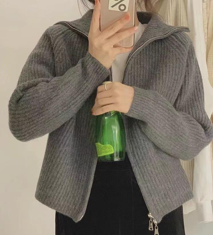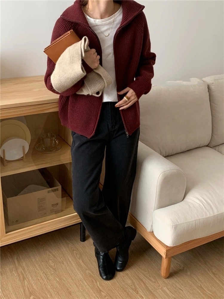【トップス】ルーズ ファスナー付き 立襟 春 秋 冬 プルオーバー ニット セーター 【FCシリーズ】