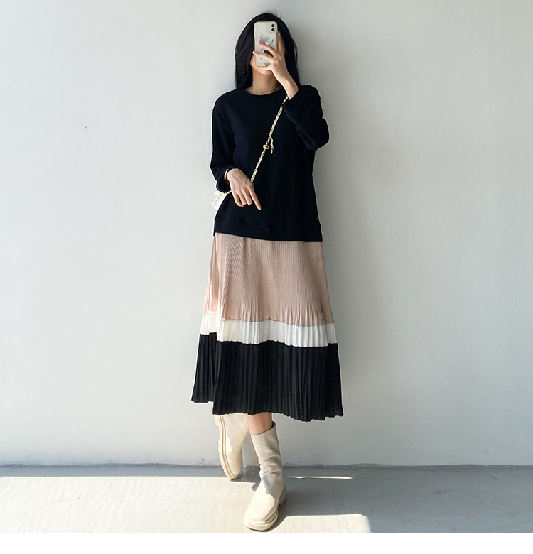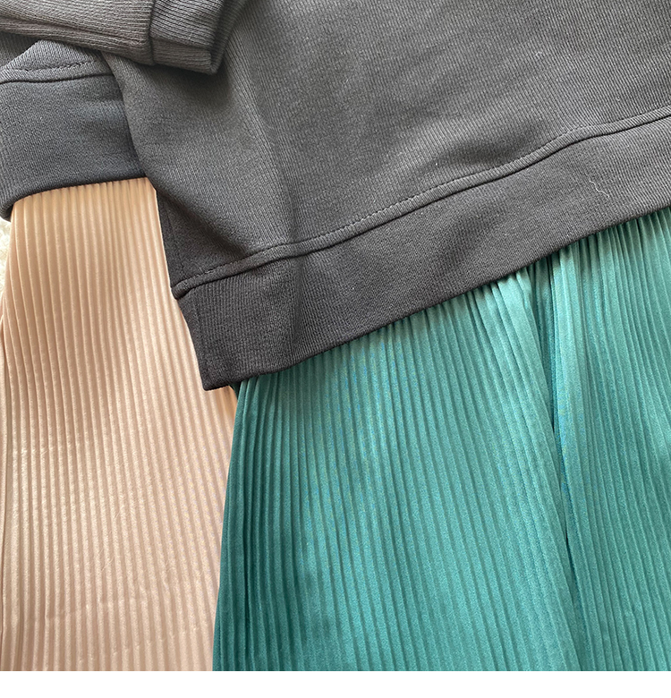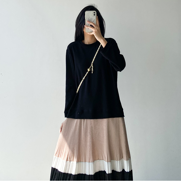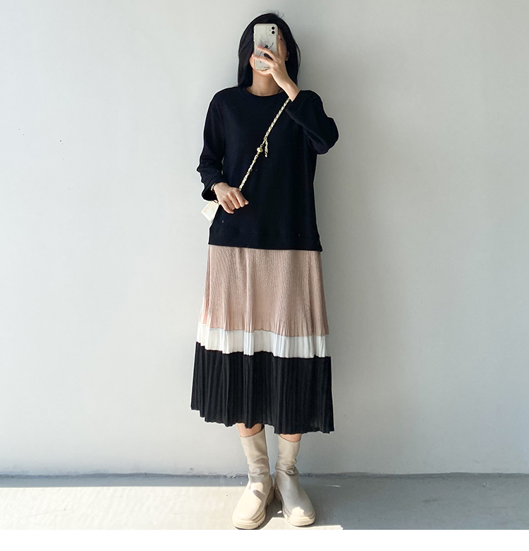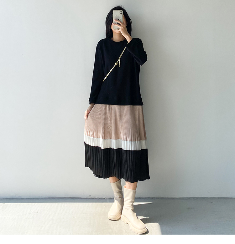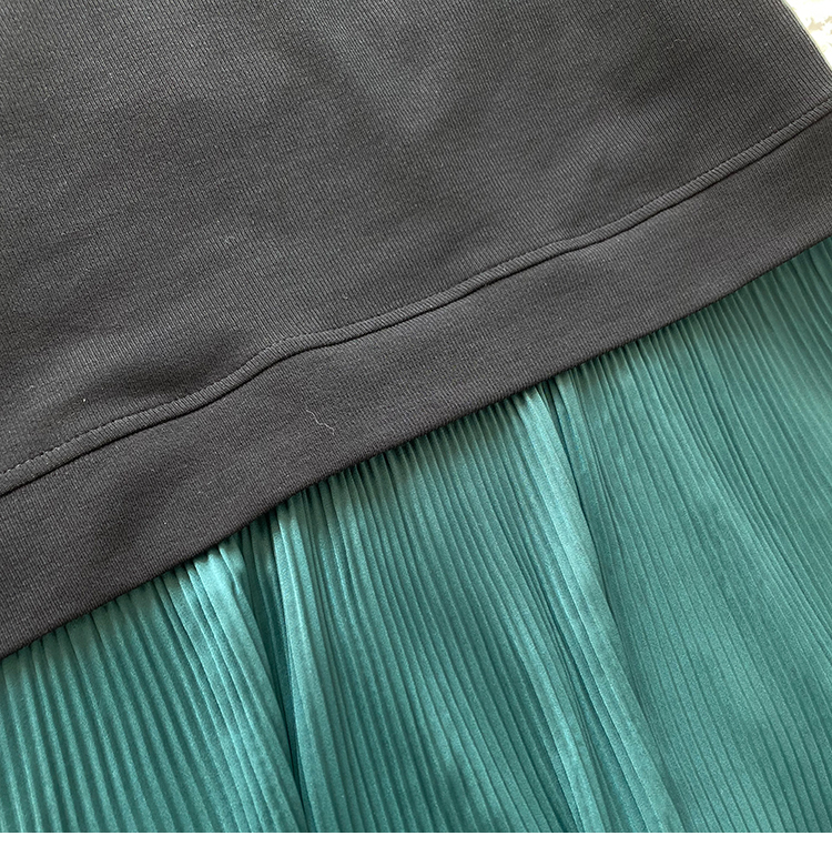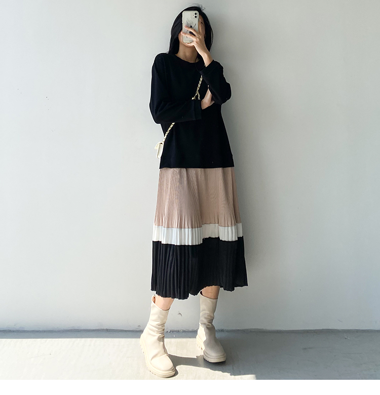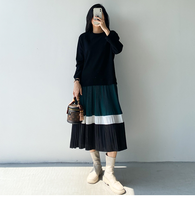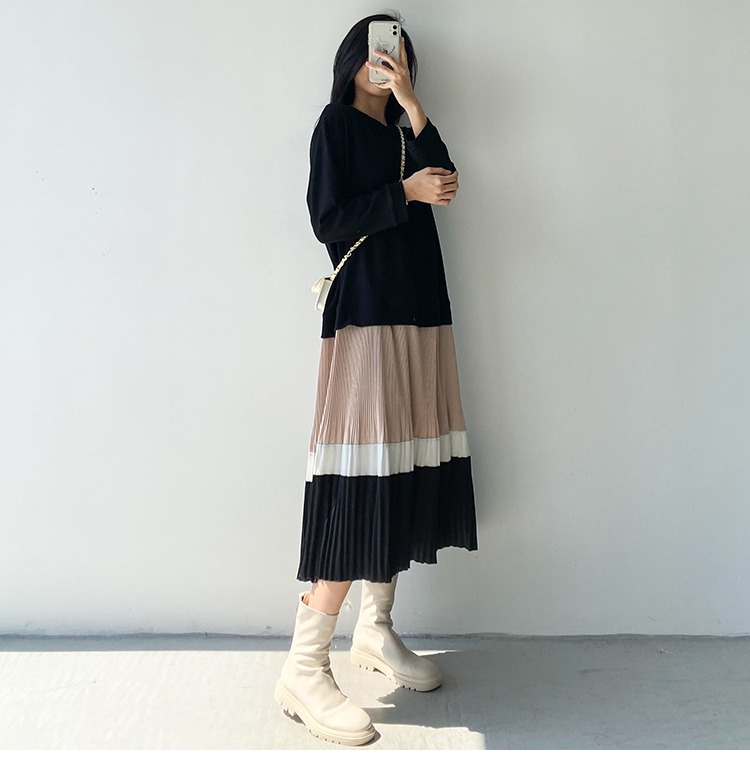 【ワンピース】春秋冬 フェイクツーピース 大きいサイズ プリーツ 長袖ワンピース