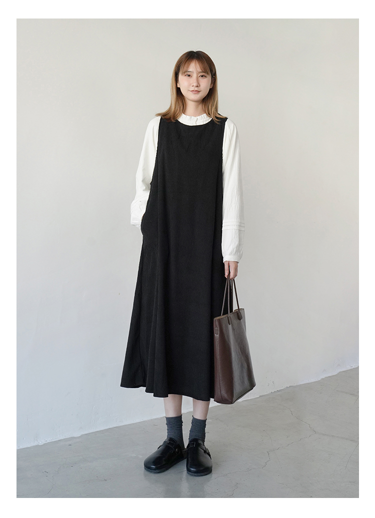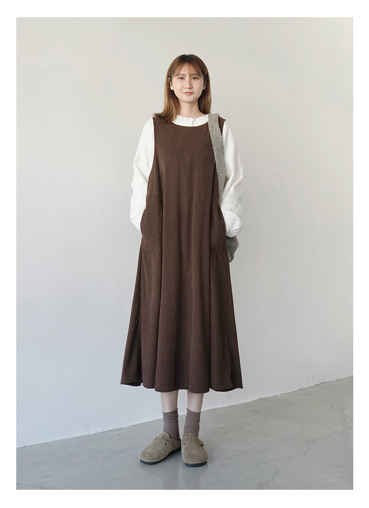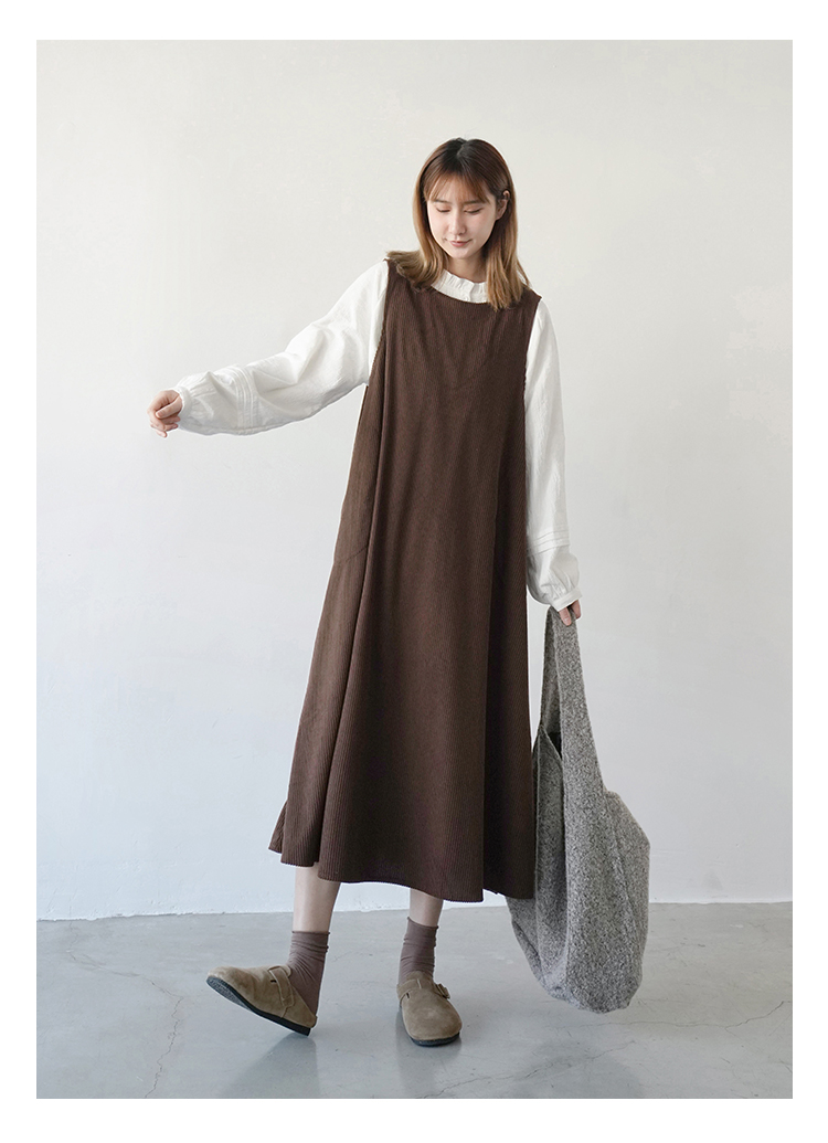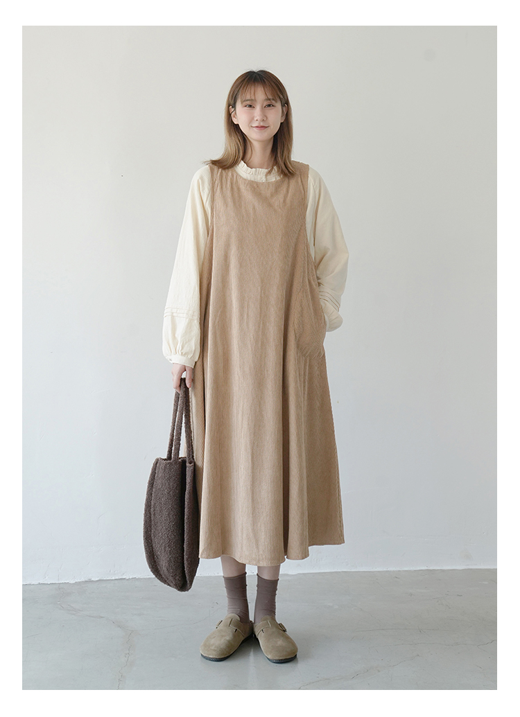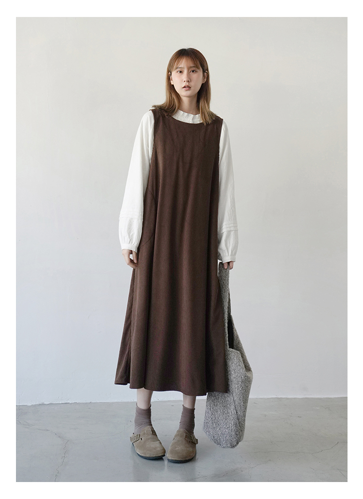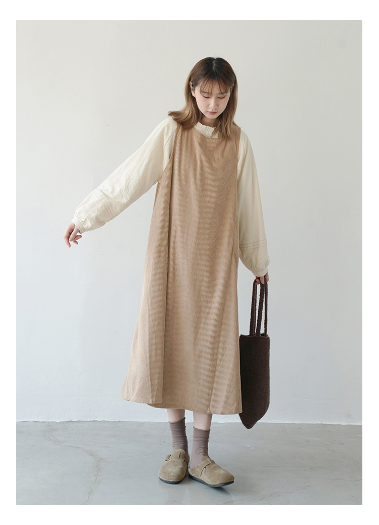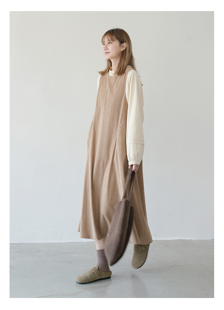 【ワンピース】春秋冬 ヴィンテージ コーデュロイ ゆったり 重ね着でおしゃれ ノースリーブワンピース