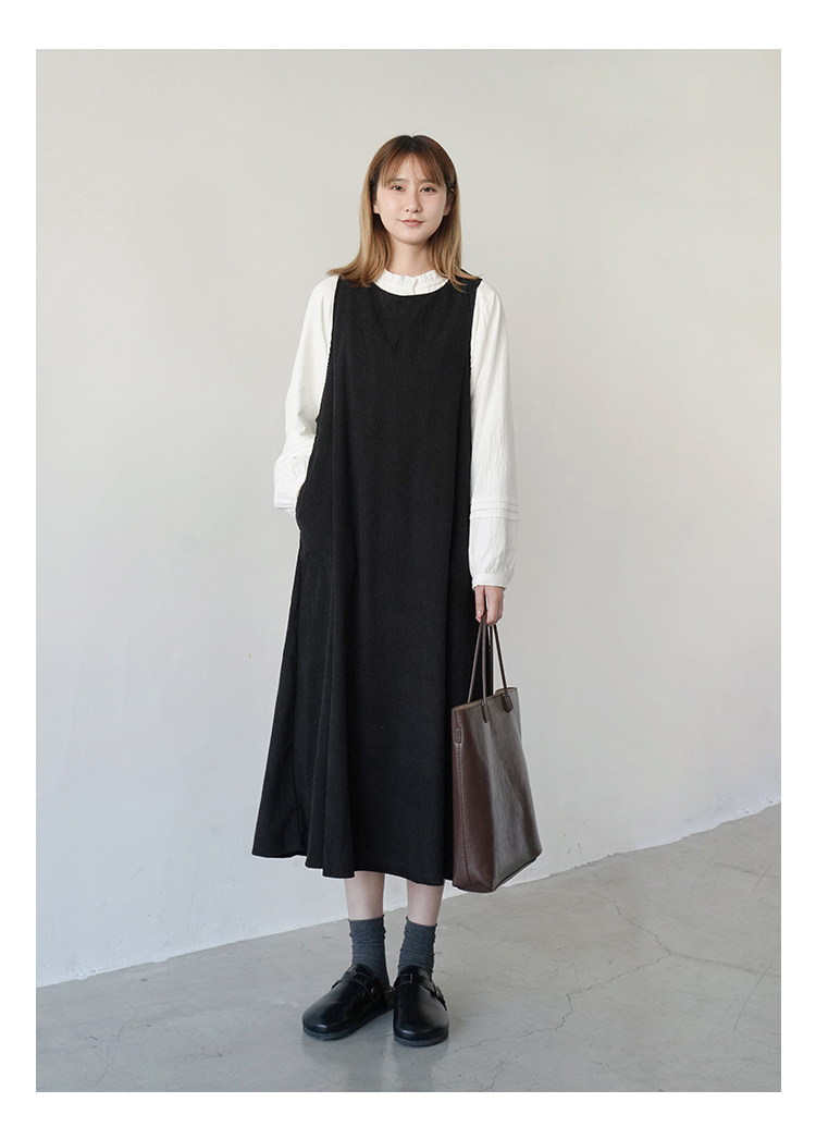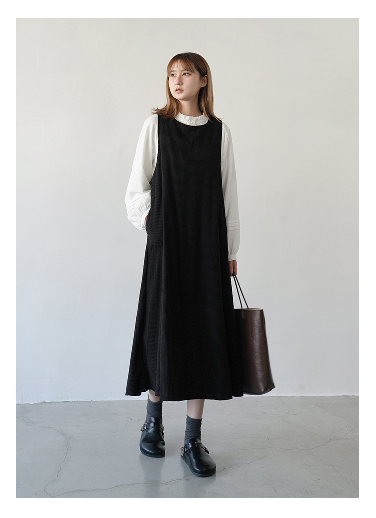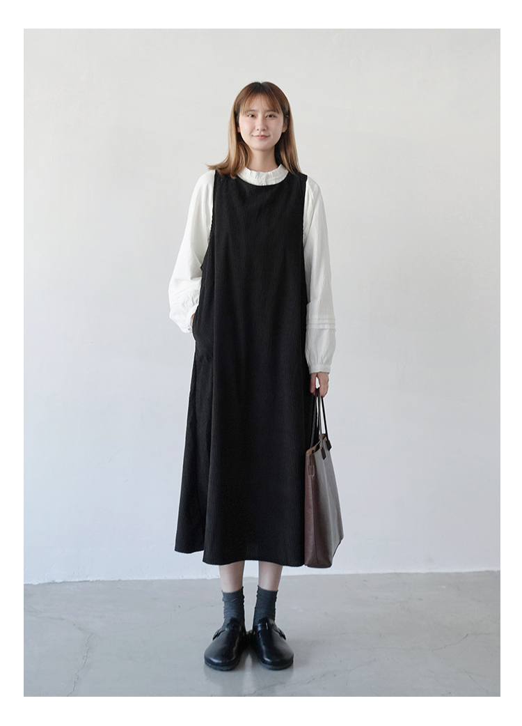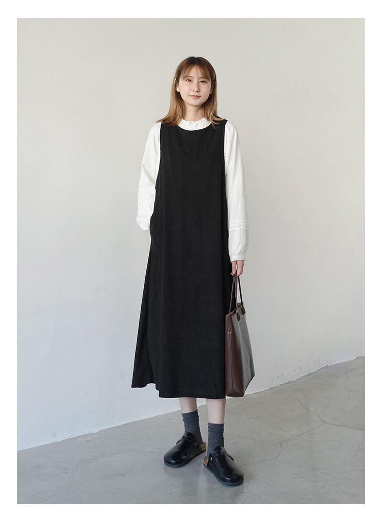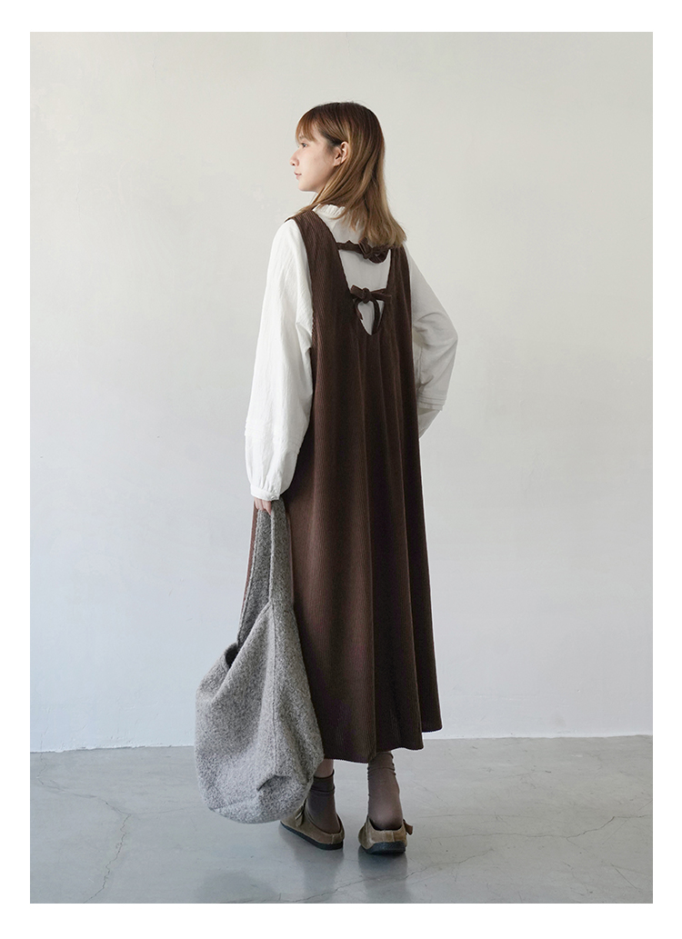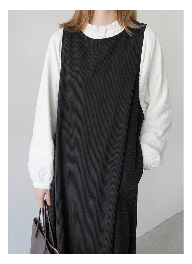 【ワンピース】春秋冬 ヴィンテージ コーデュロイ ゆったり 重ね着でおしゃれ ノースリーブワンピース