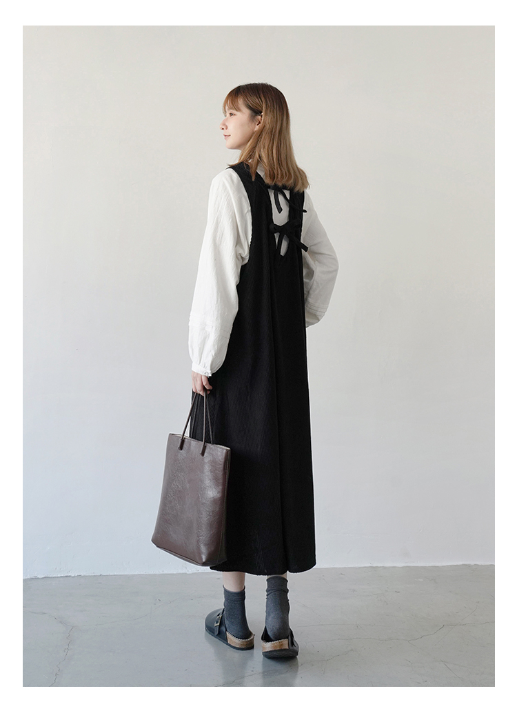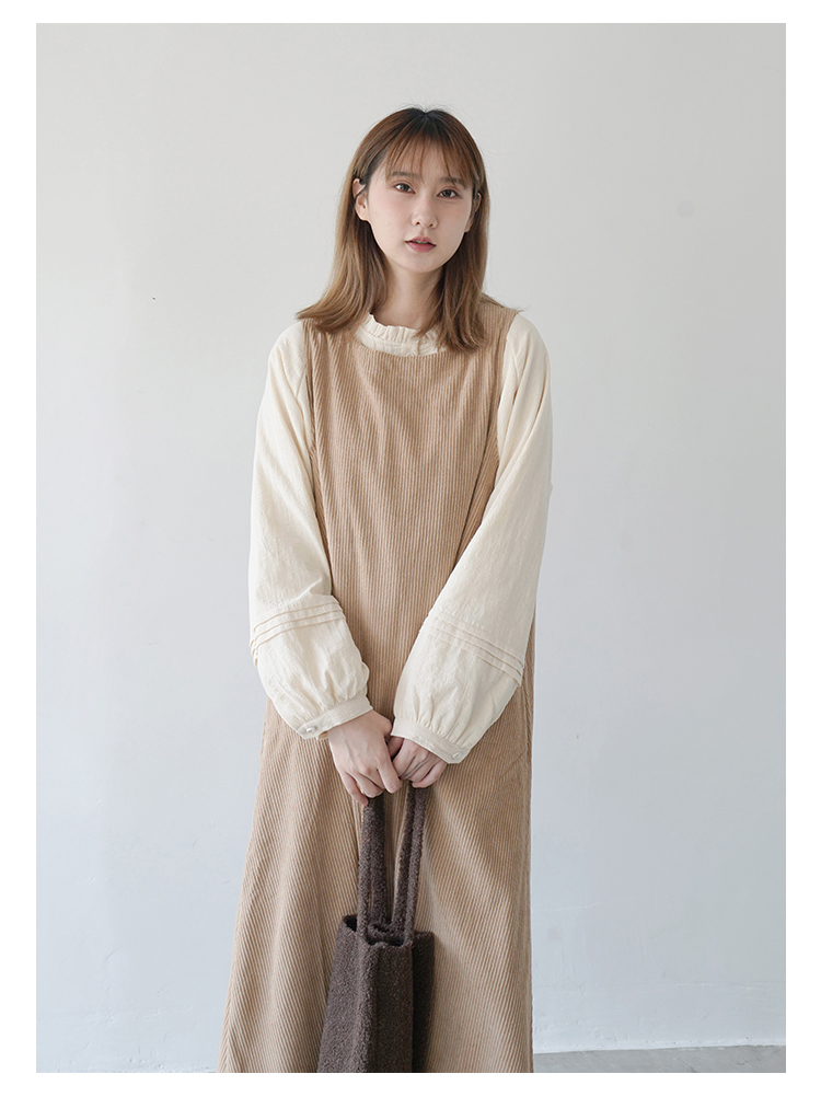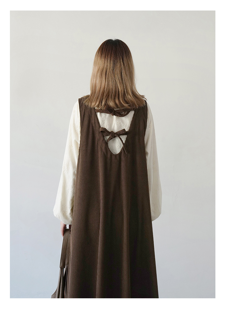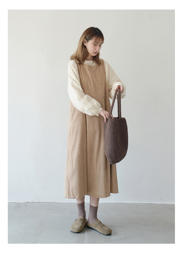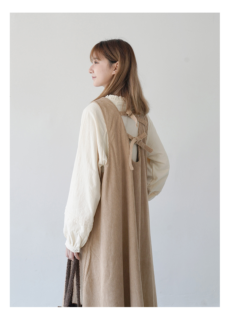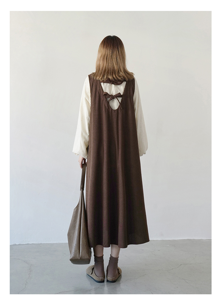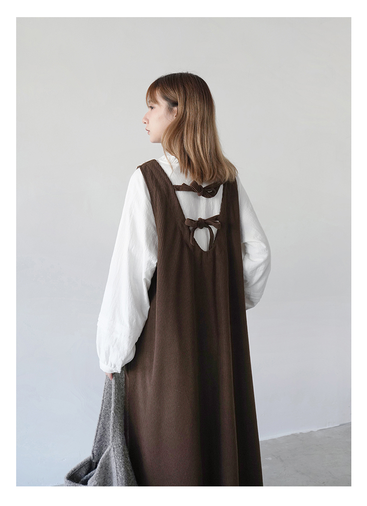 【ワンピース】春秋冬 ヴィンテージ コーデュロイ ゆったり 重ね着でおしゃれ ノースリーブワンピース