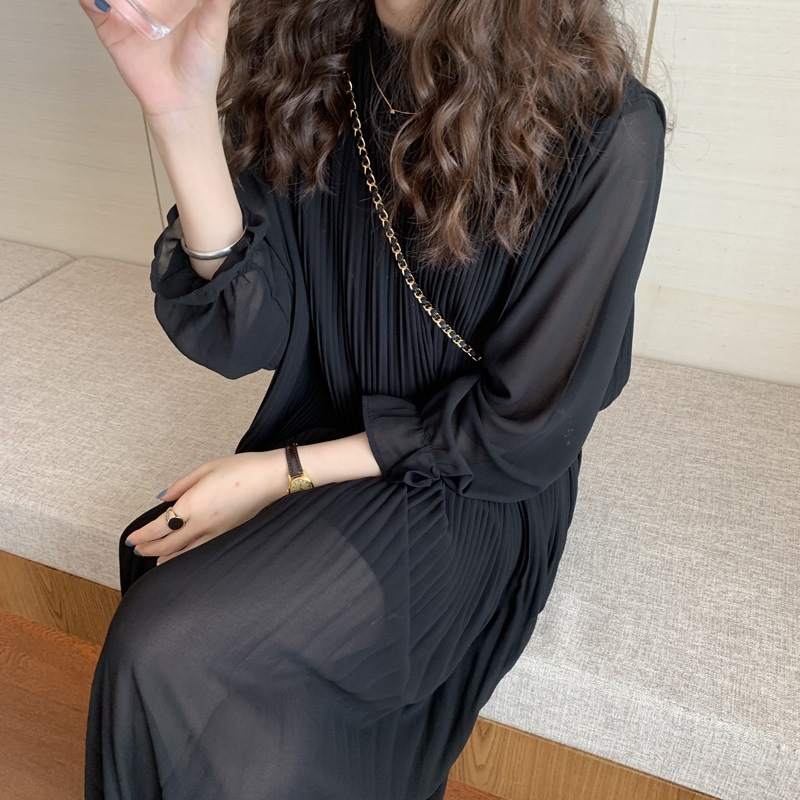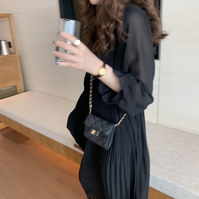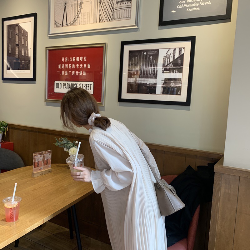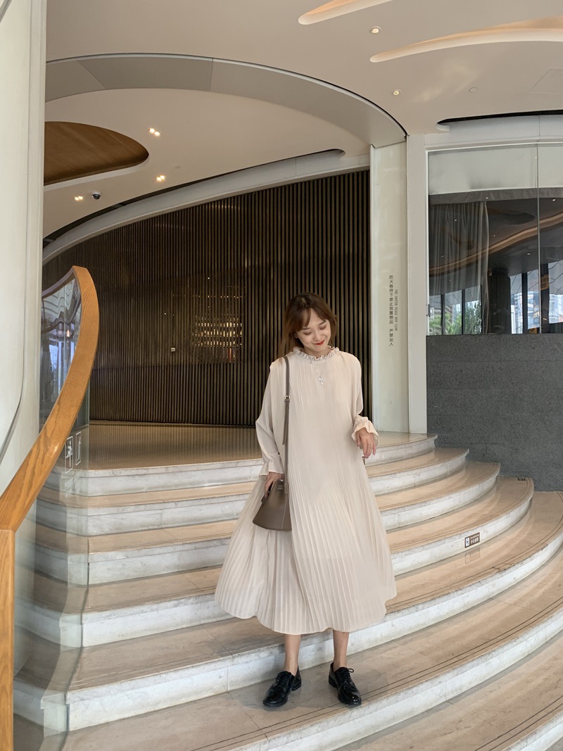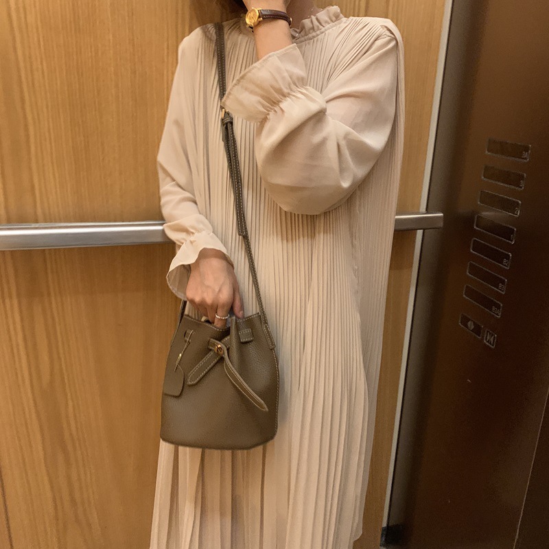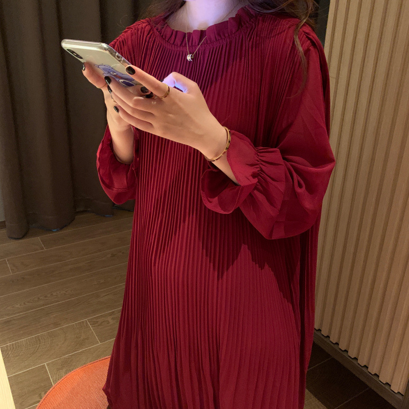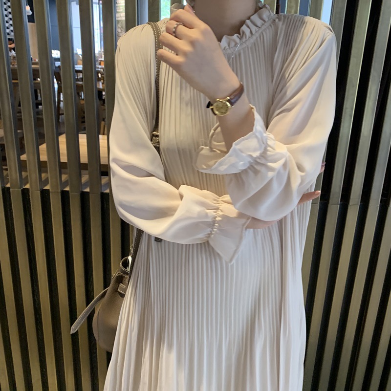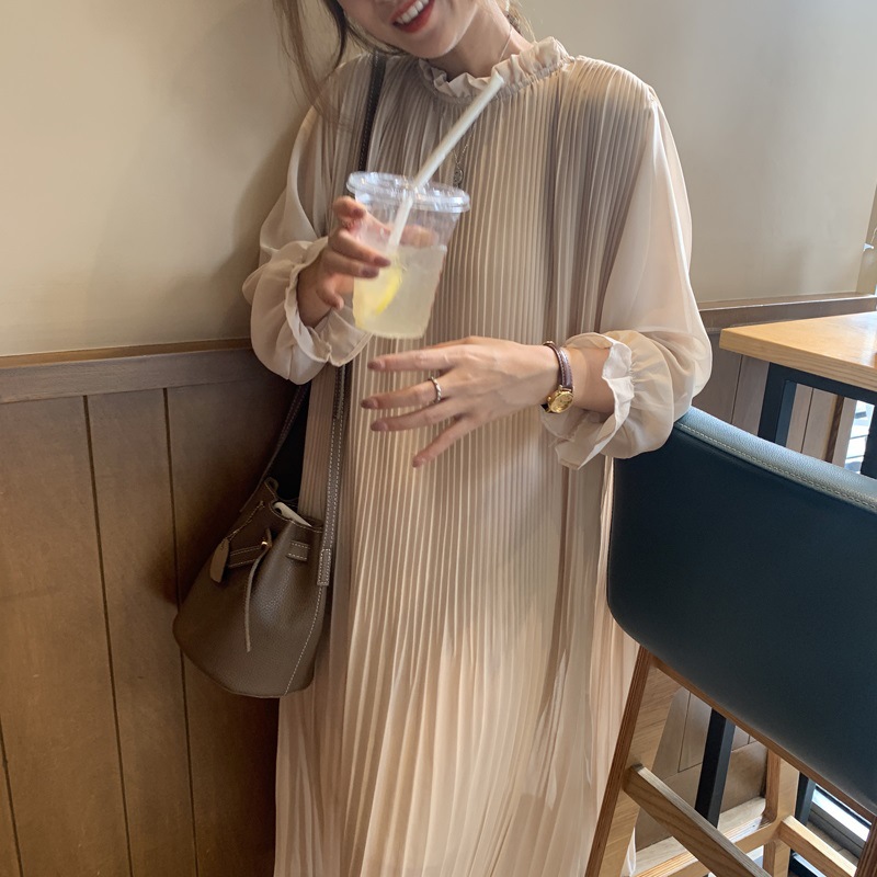 【ワンピース】春秋夏 無地 フリルギャザー エレガント 長袖 ワンピース