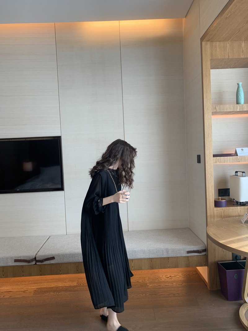 【商品名】【ワンピース】無地 フリルギャザー エレガント 長袖 ワンピース