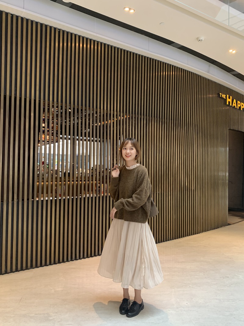 【ワンピース】韓国風 春秋新作 ゆったり大きめサイズ 体型カバー 花柄長袖ミディアムワンピース【SHシリーズ】