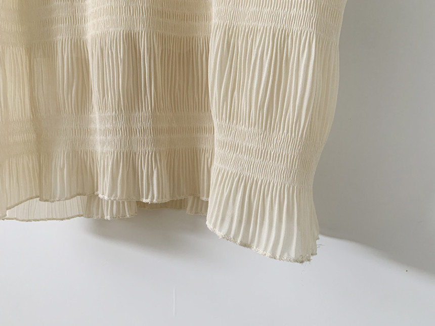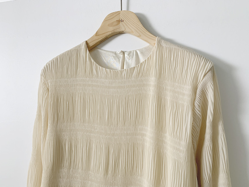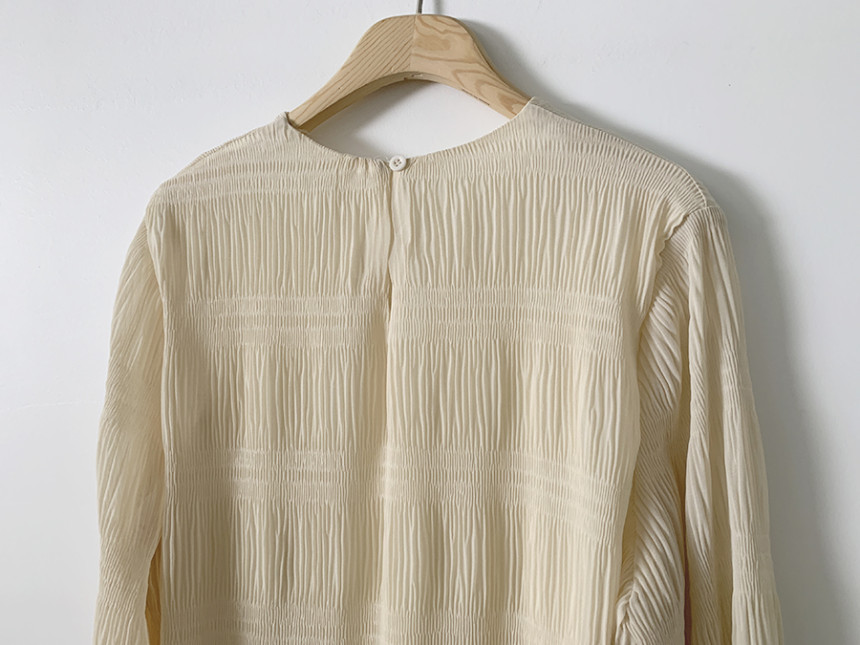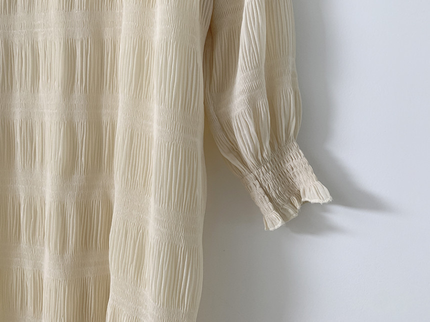 【商品名】【ワンピース】プリーツ ランタン袖 シフォン ラウンドネック 気質 ドレス 長袖ワンピース