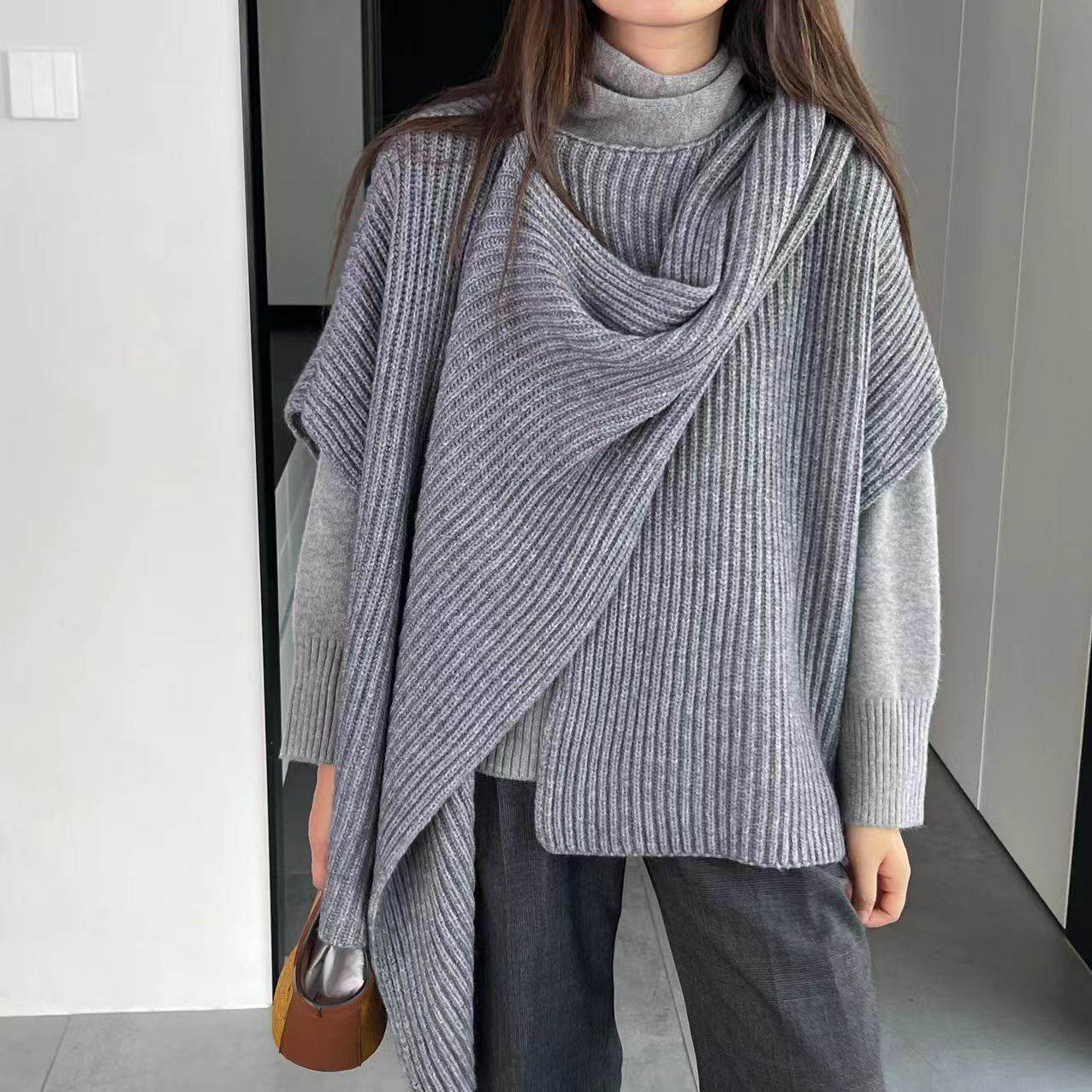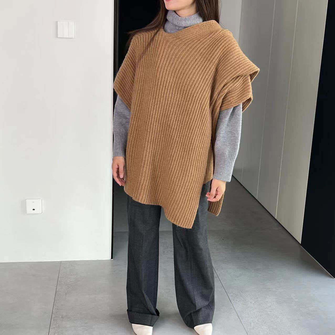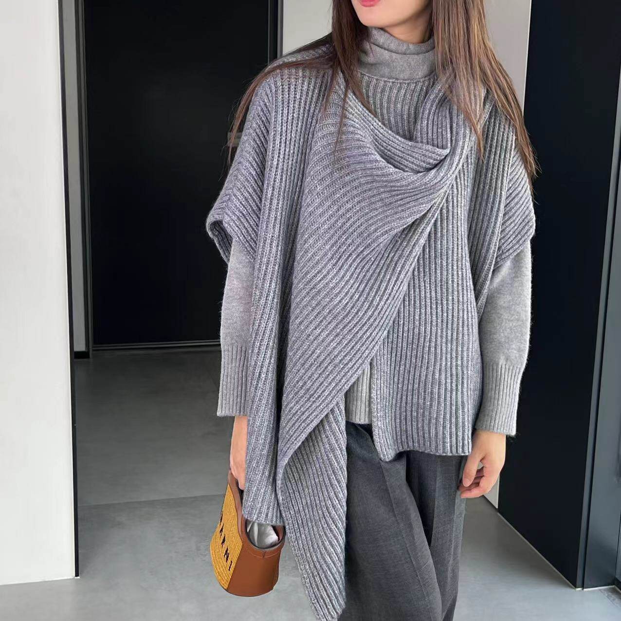 【トップス】秋冬 ニット エレガント ストール ベスト