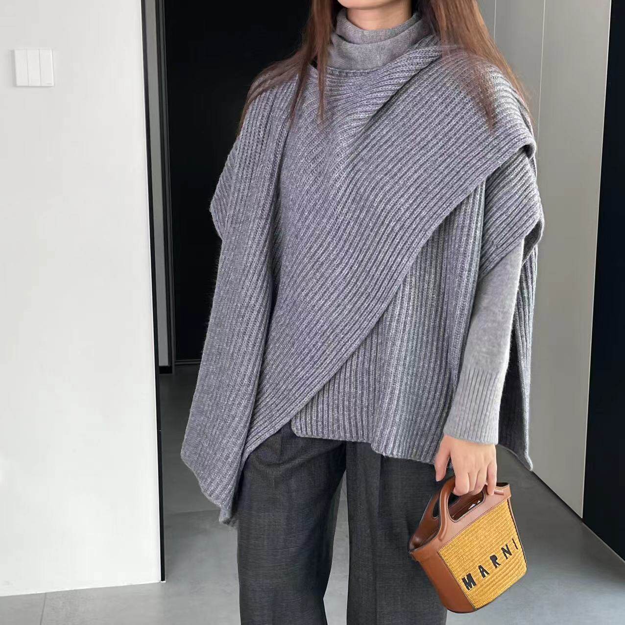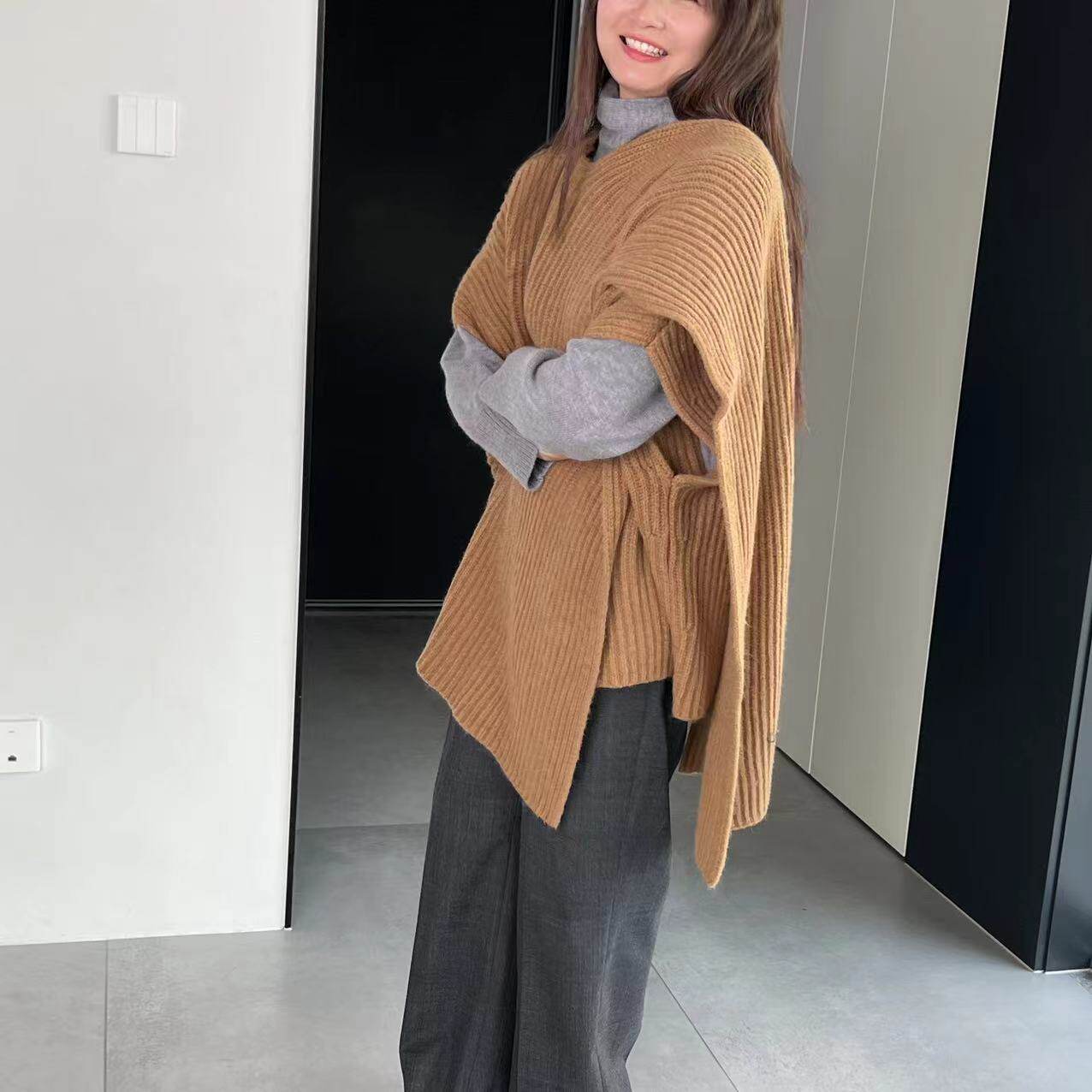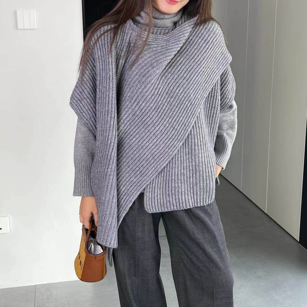 【トップス】秋冬 ニット エレガント ストール ベスト