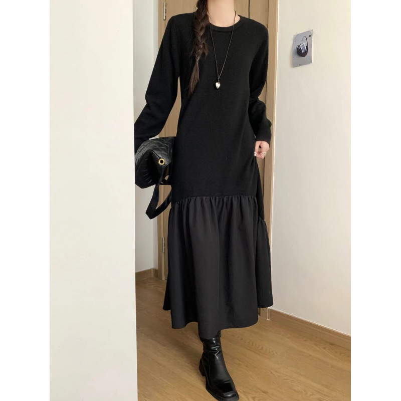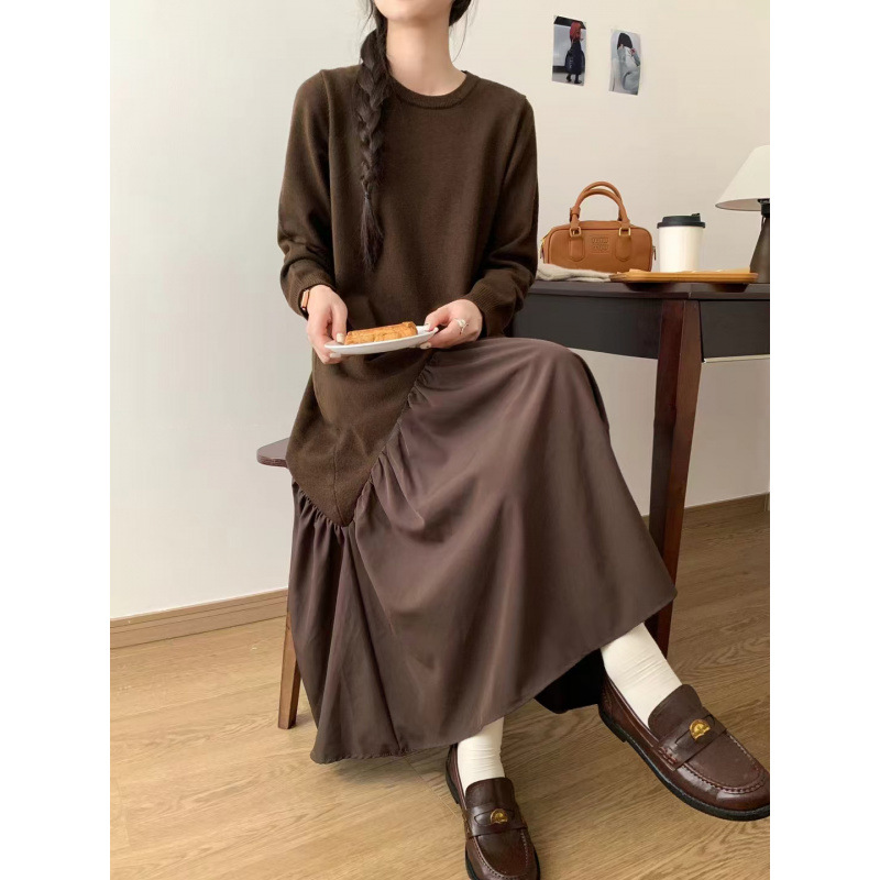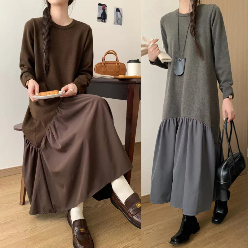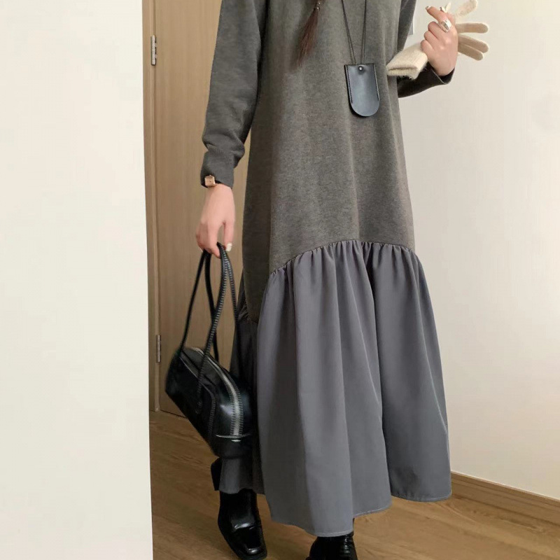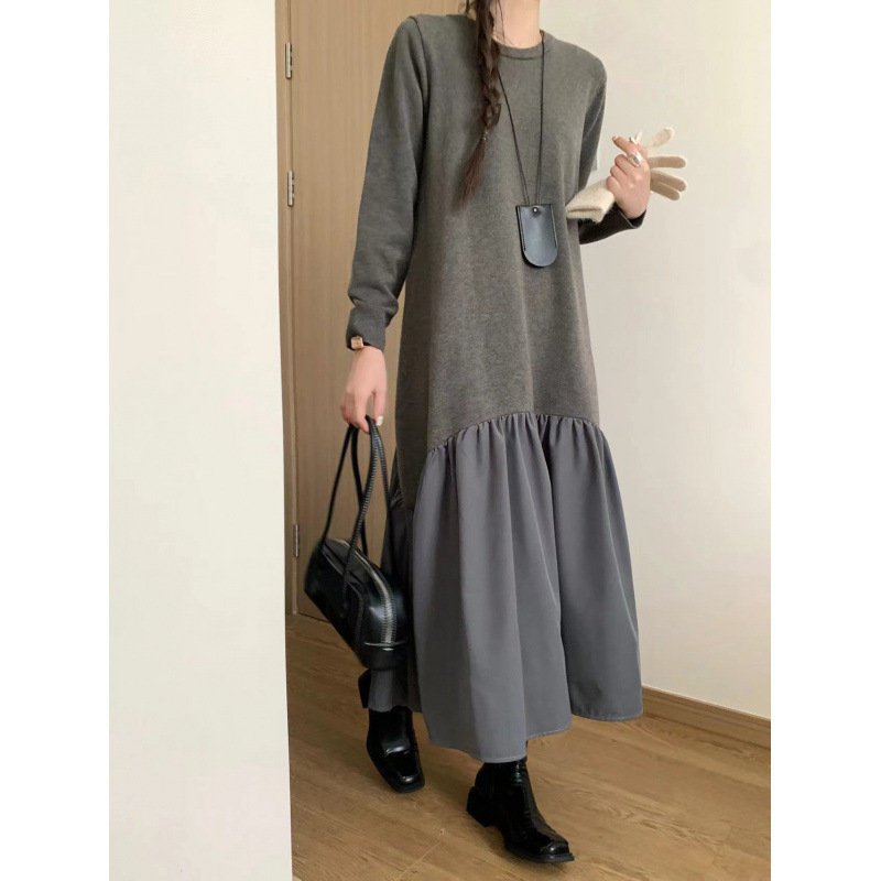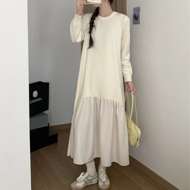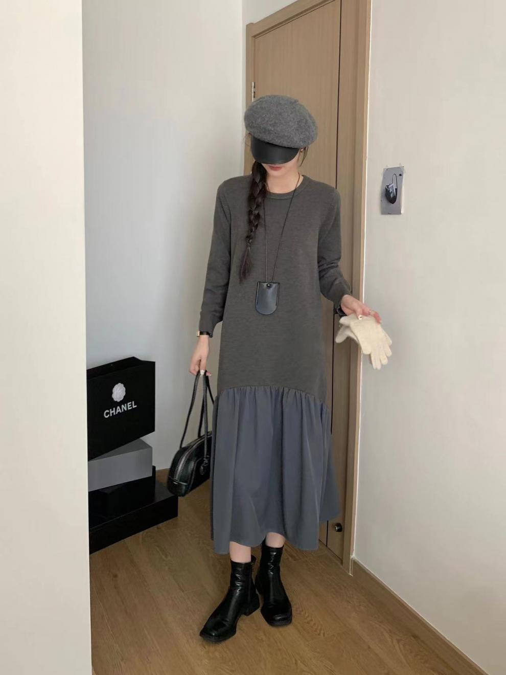 【ワンピース】春秋冬 日系 ゆったり 合わせやすい 切り替えし 長袖ワンピース