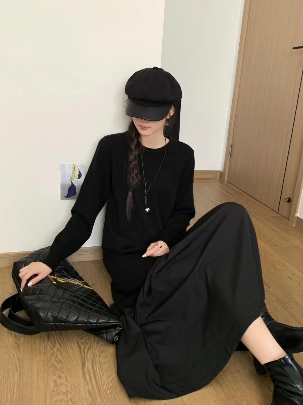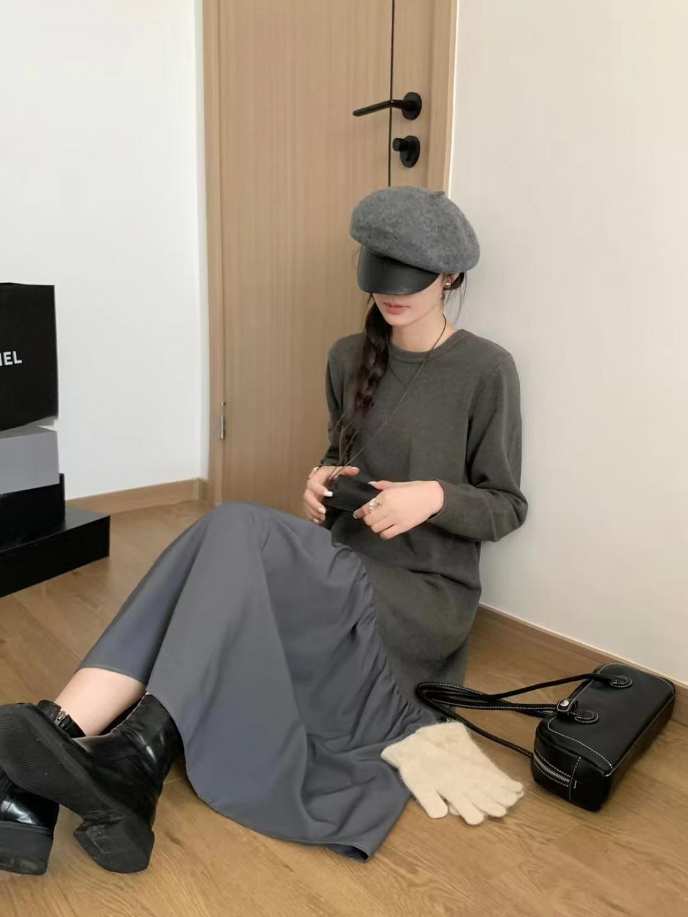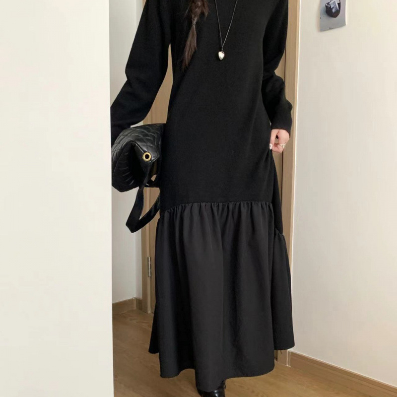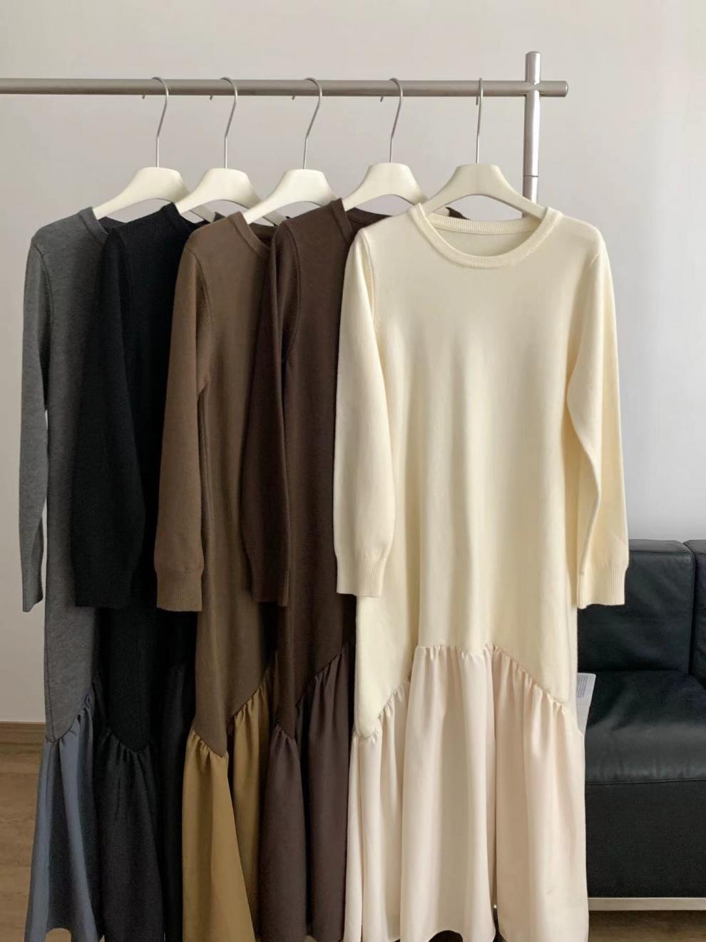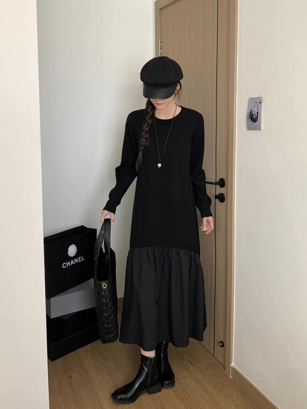 【ワンピース】春秋冬 日系 ゆったり 合わせやすい 切り替えし 長袖ワンピース